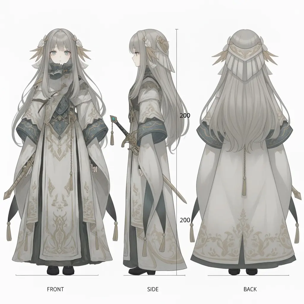 見た目は10歳程度の少女であり、くすんだグレーの長い髪と青の瞳を持っている。