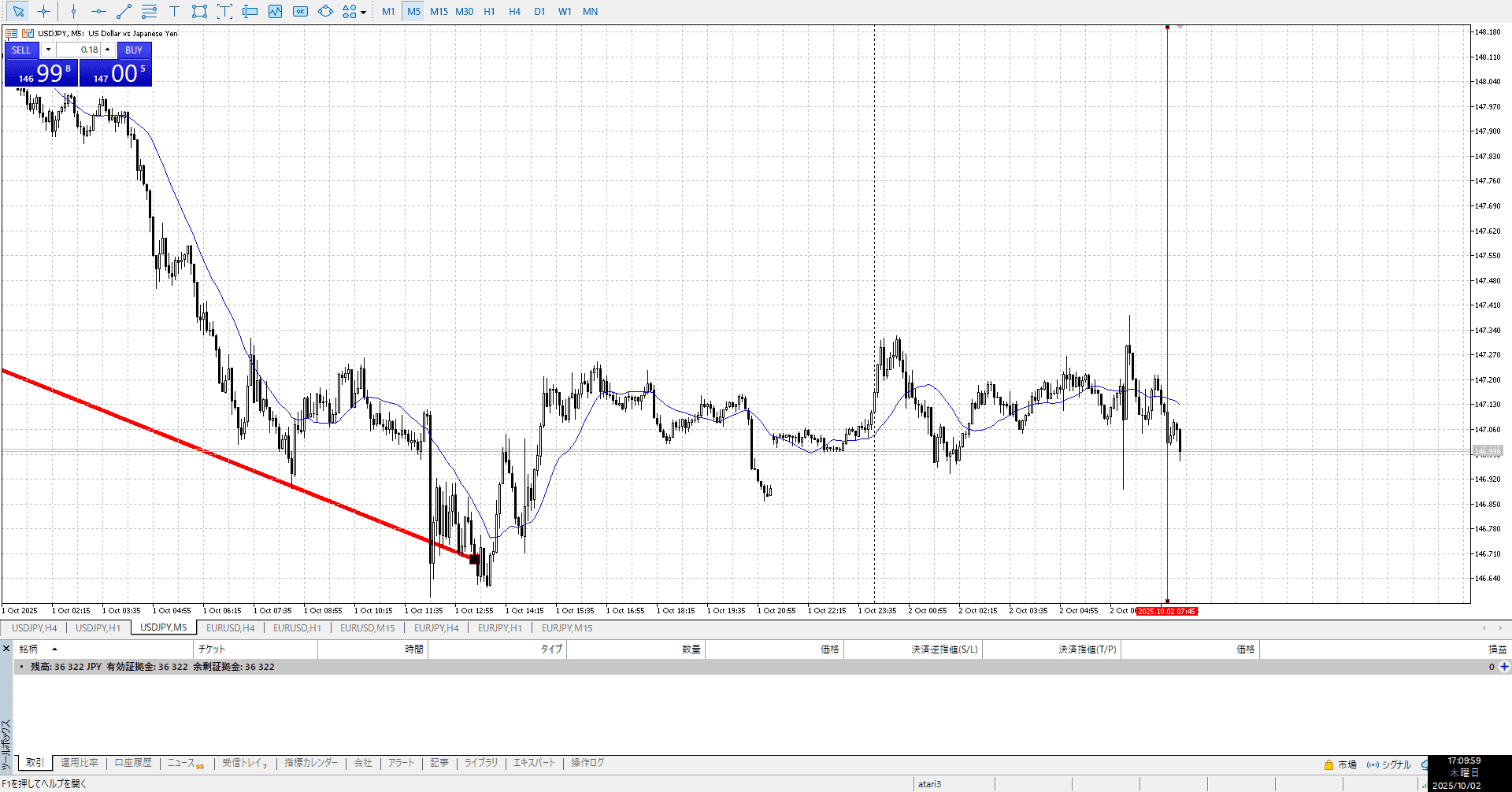 5m抜け程度なので入るのは早い、損切は戻りポイントよりもっと上になるので大きい、RRとしても一番近いとⓡころとの兼ね合いが1以下になる