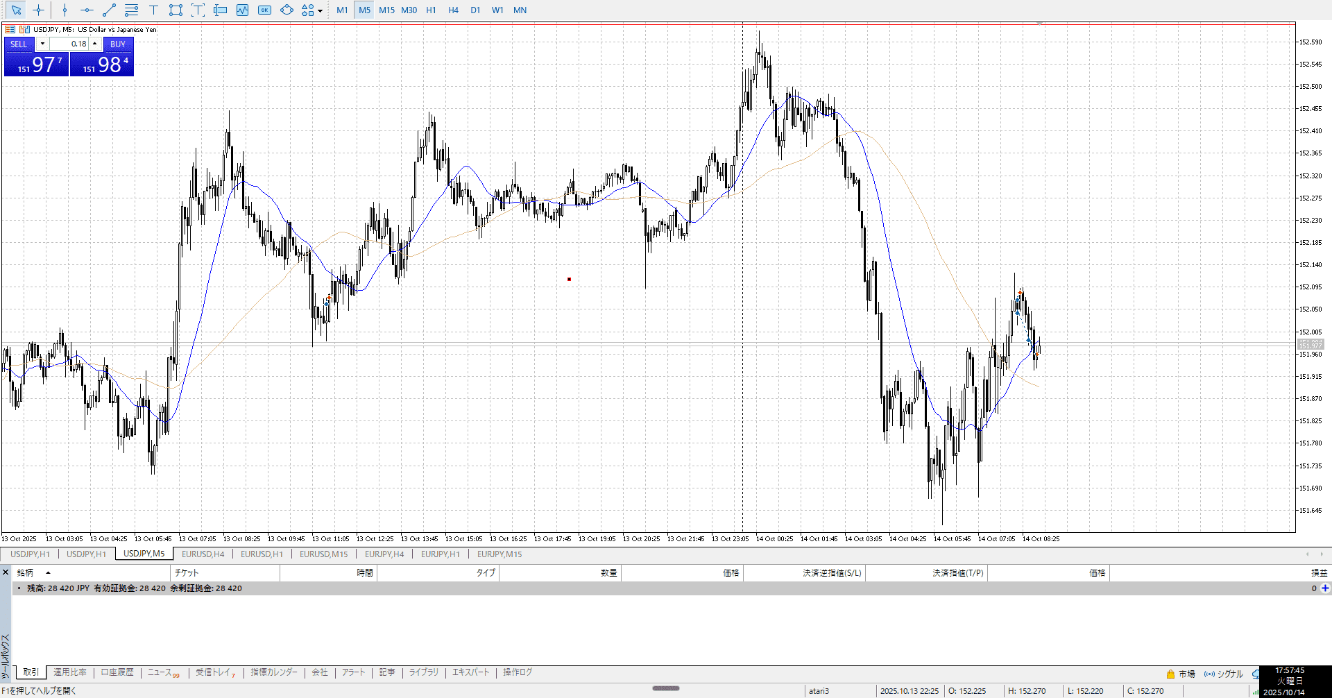 しかし、前回の1時間のレンジの中腹ぐらい、よく止められていた場所で止められています。