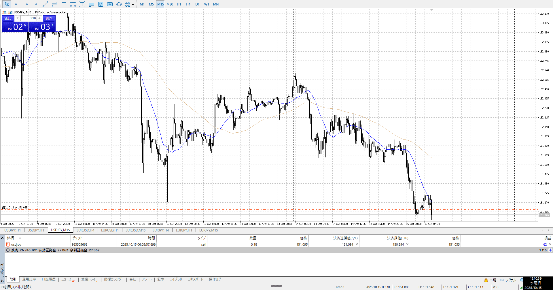 1hレンジ下くらいを戻り売り