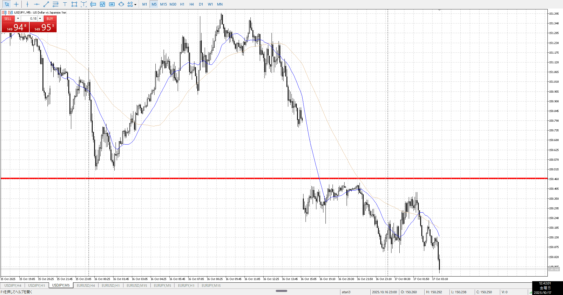 1hが止まらなかったので抜けは入りしたが、抜けなんだから止まり始めでさっさと抜かないと損切になってしまう。