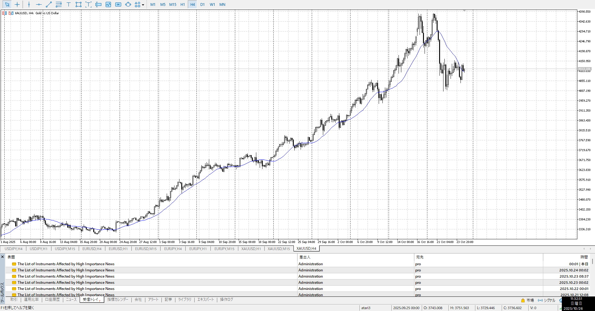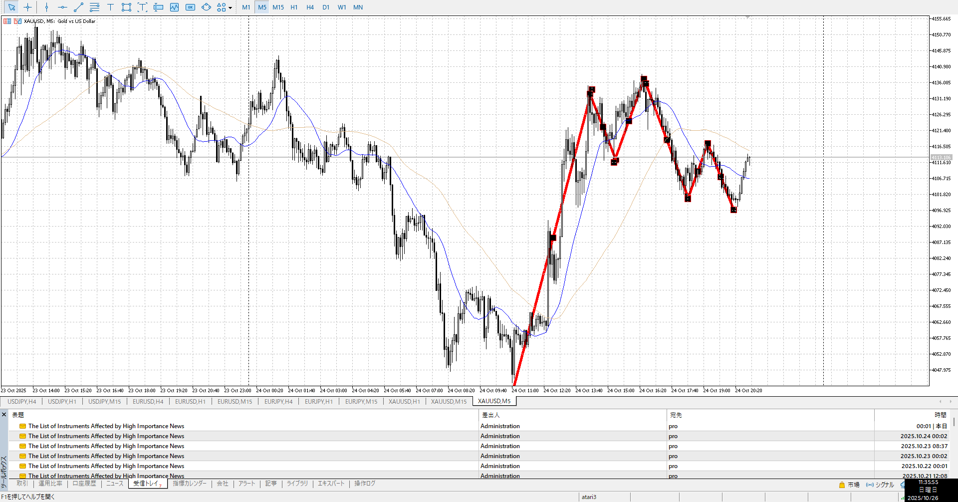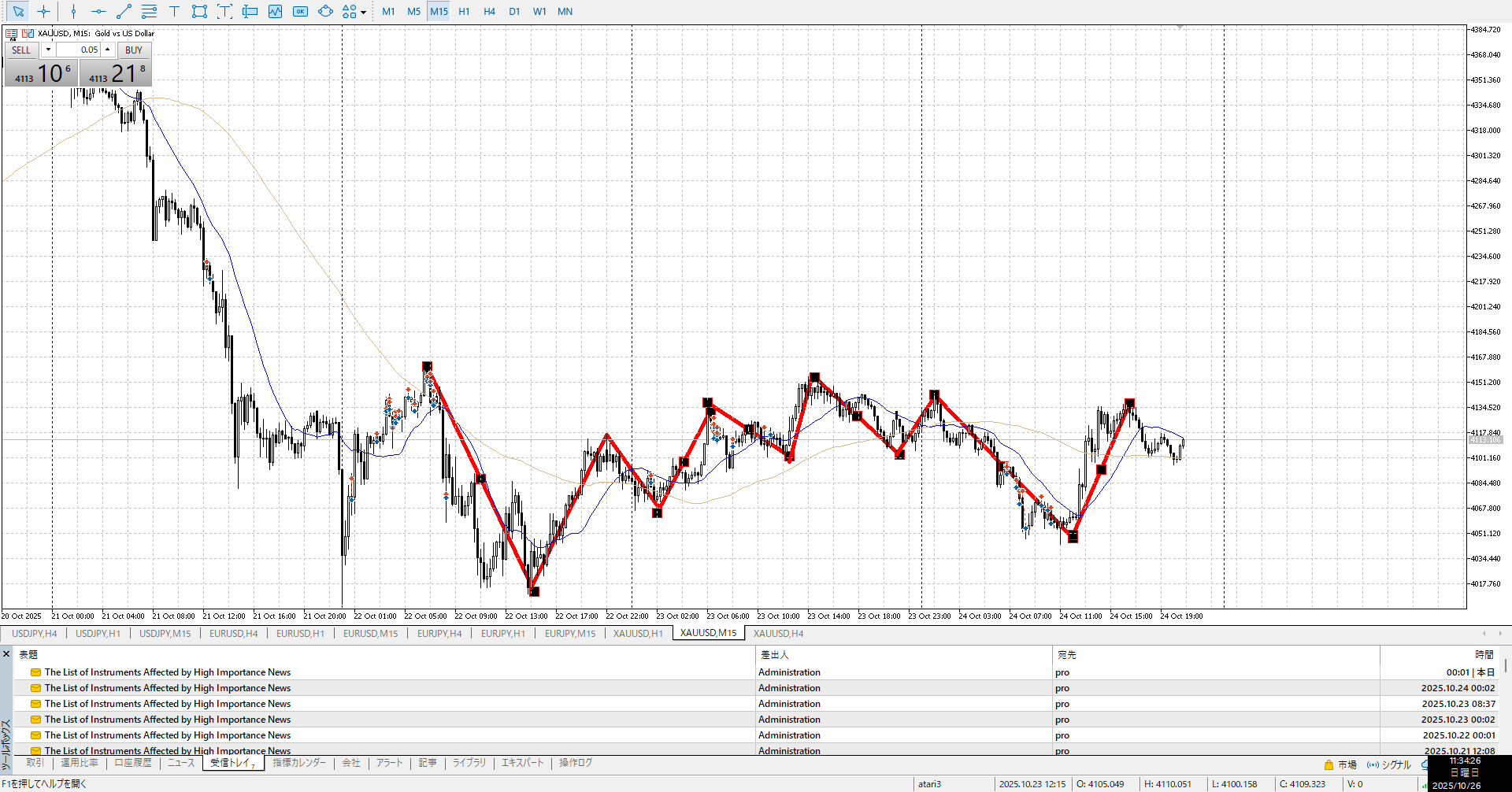 ゆっくり登ってたやつがガクンと落ちたが、1h安値を更新するに至らず