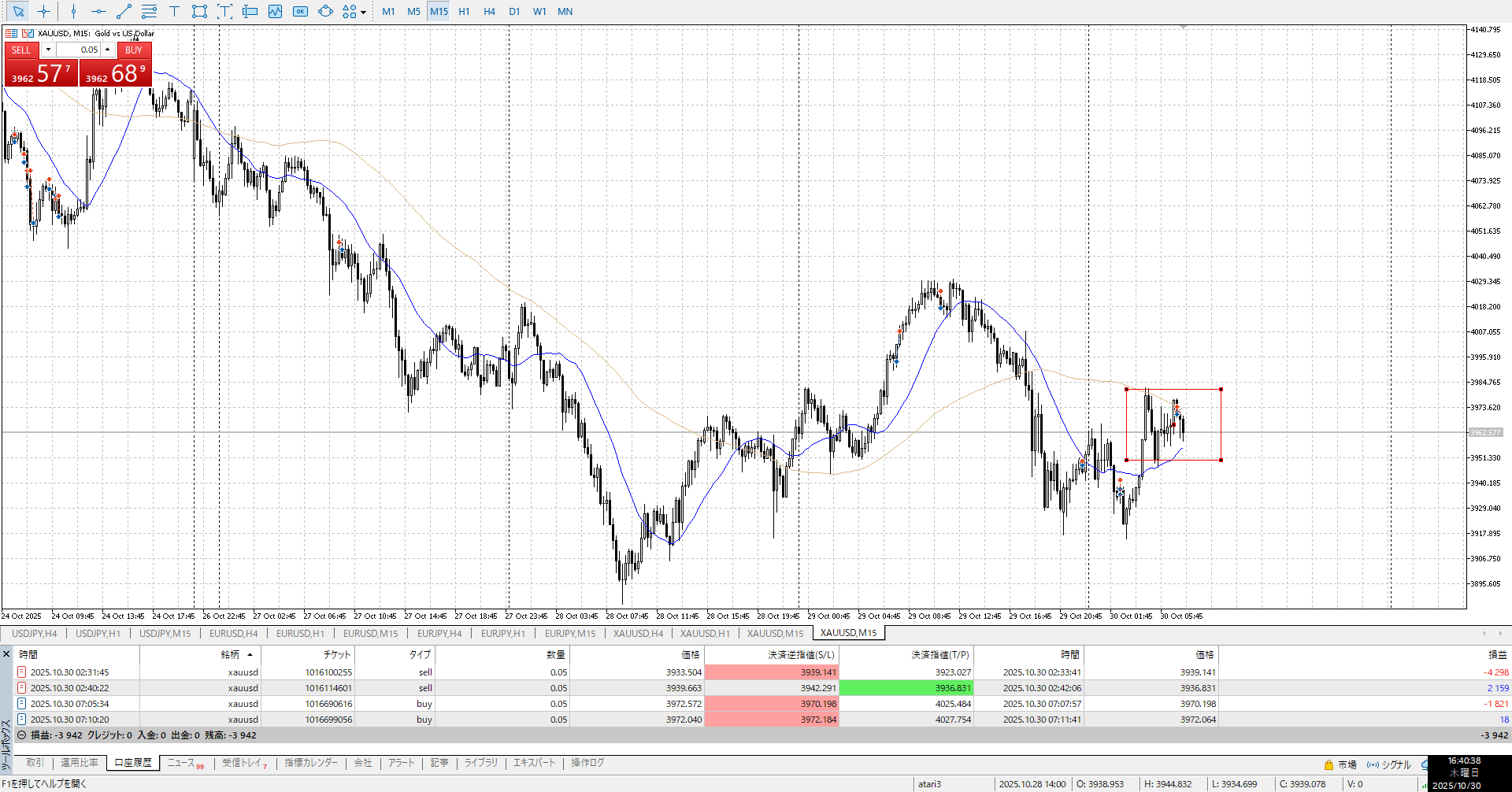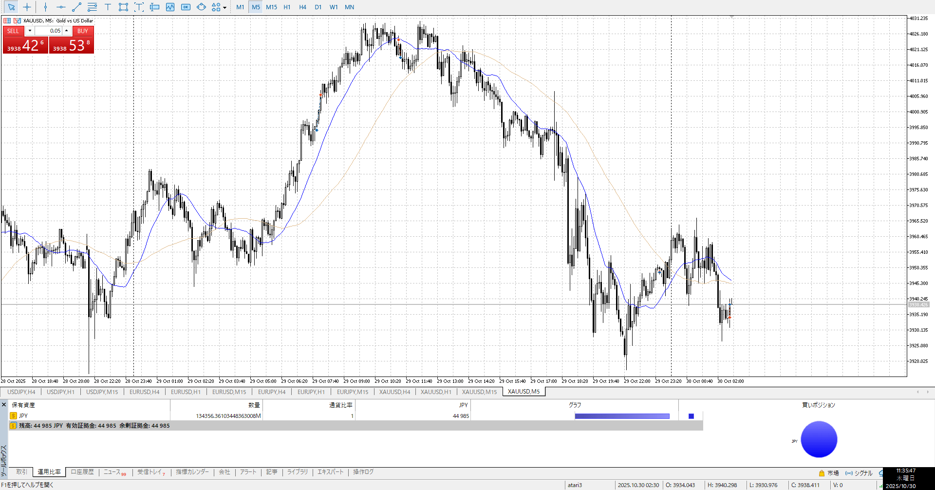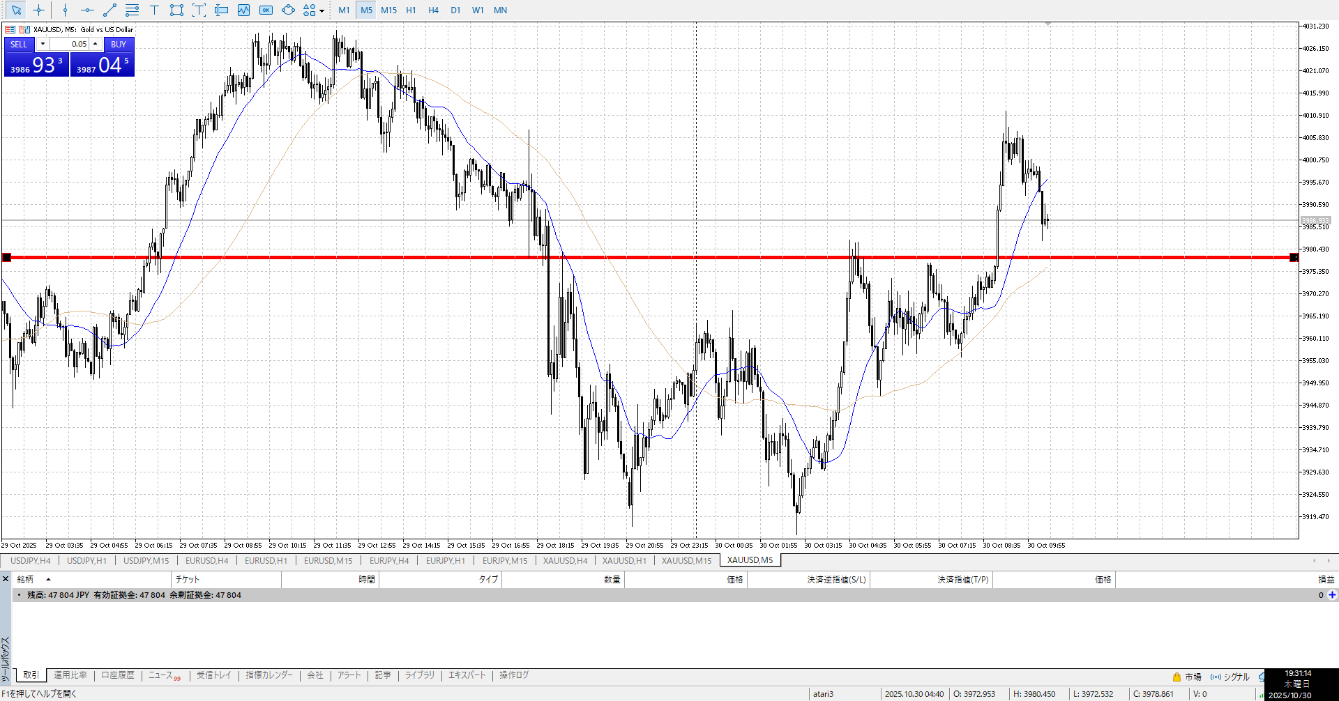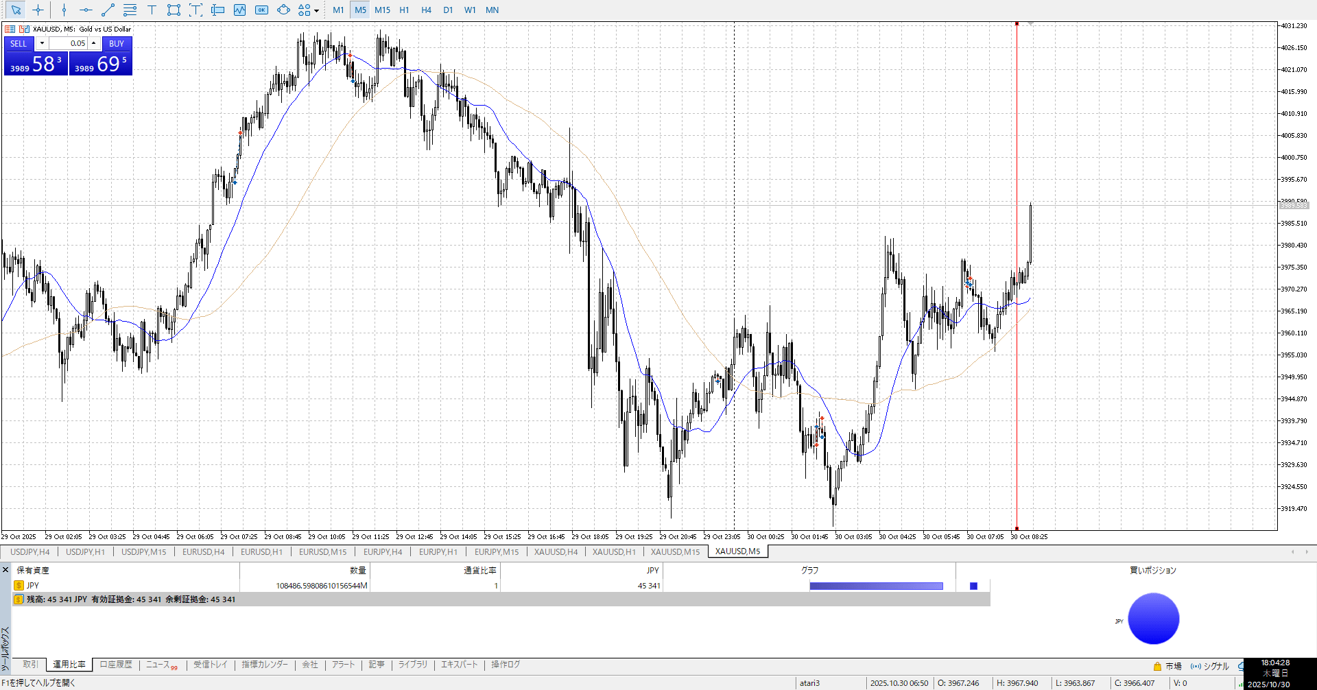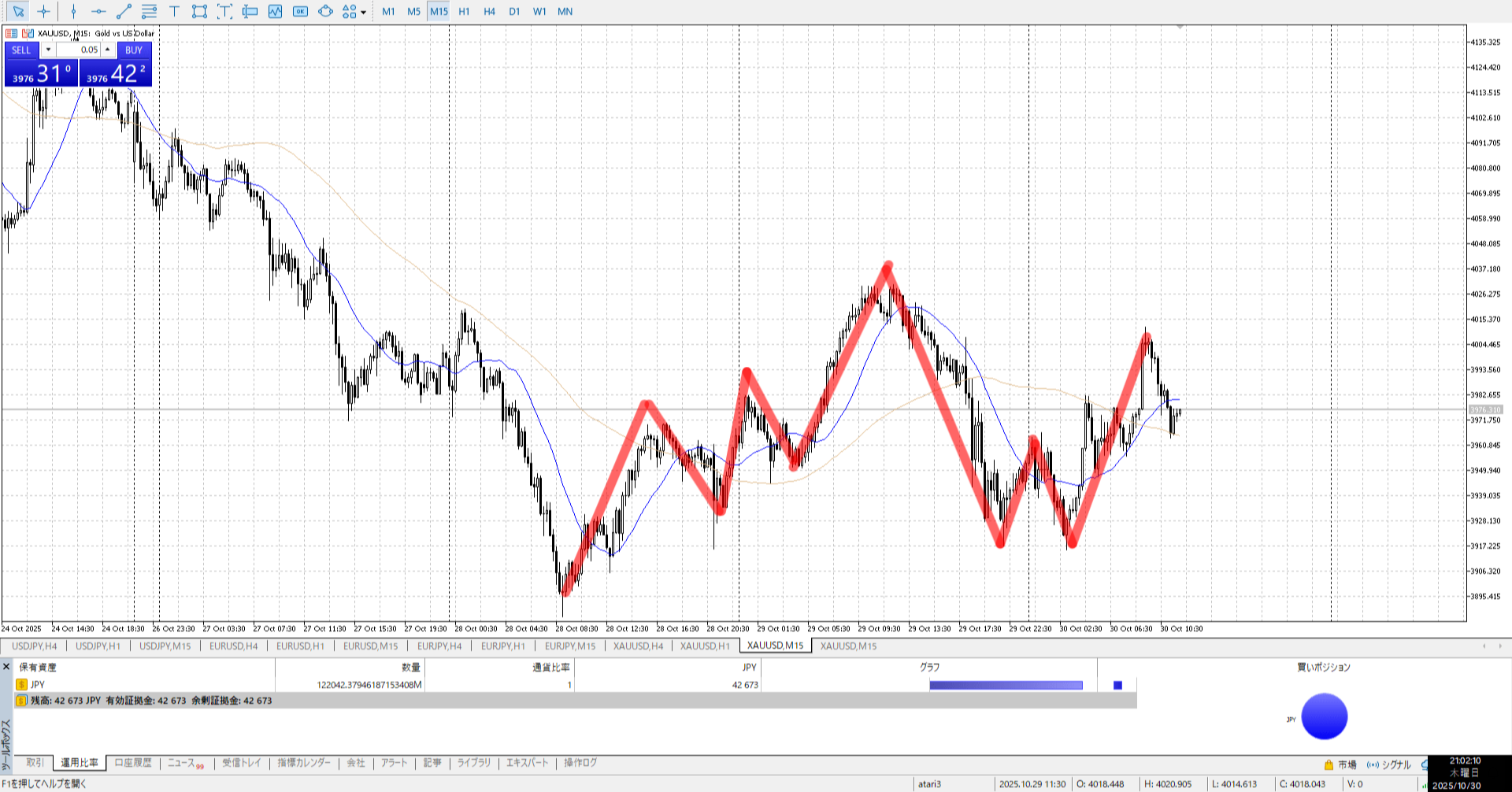 それに寝不足のダブルパンチ。今日は急速M戻りを下髭と小さい足でキャッチして、その後上下髭を上でキャッチする流れだった。