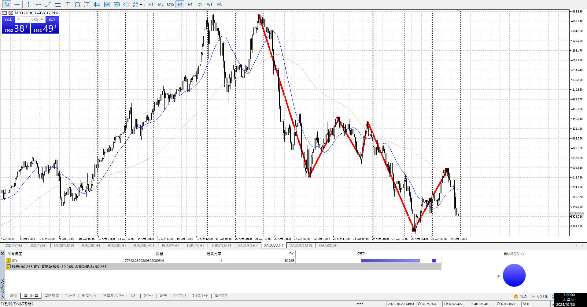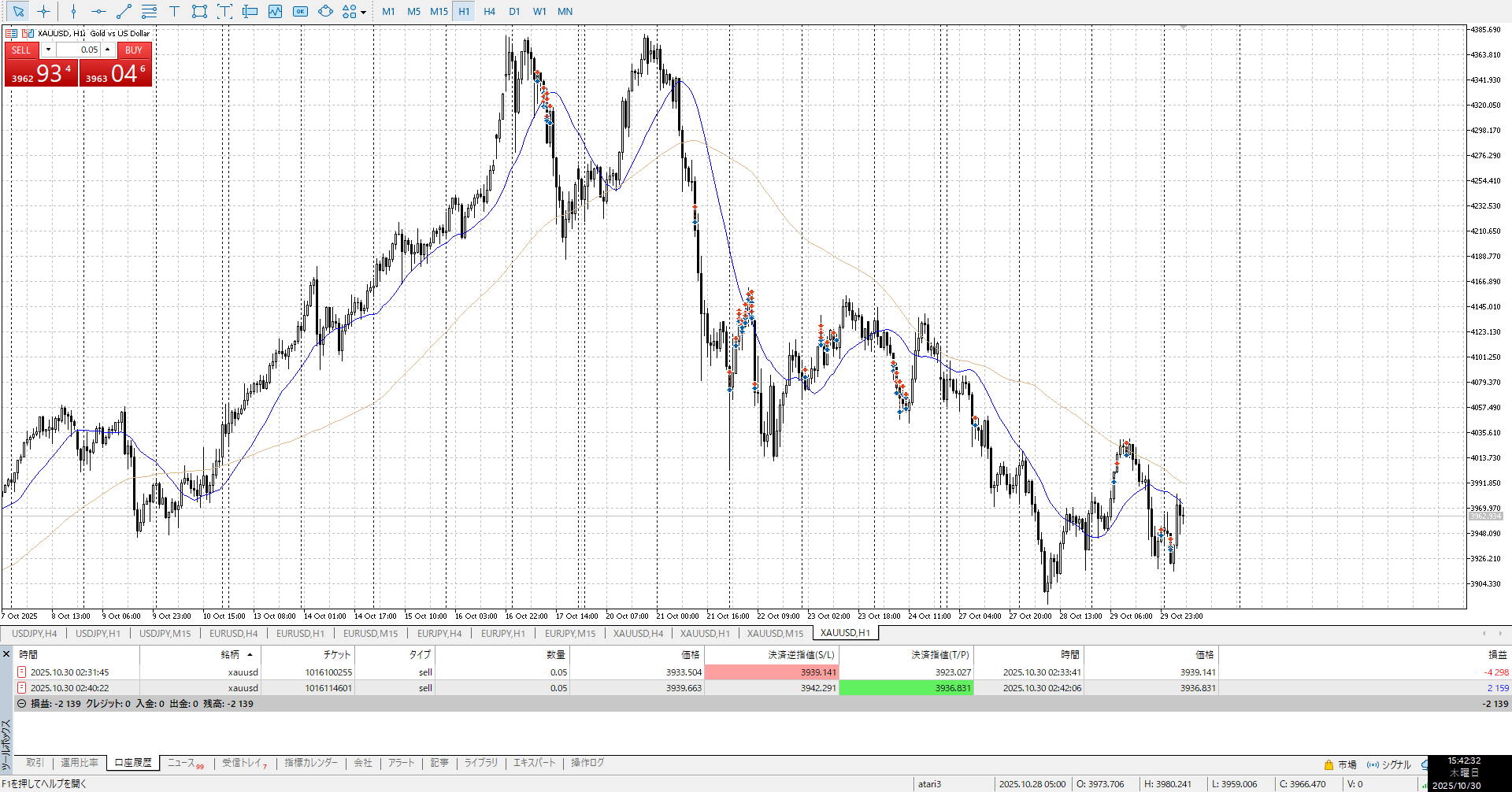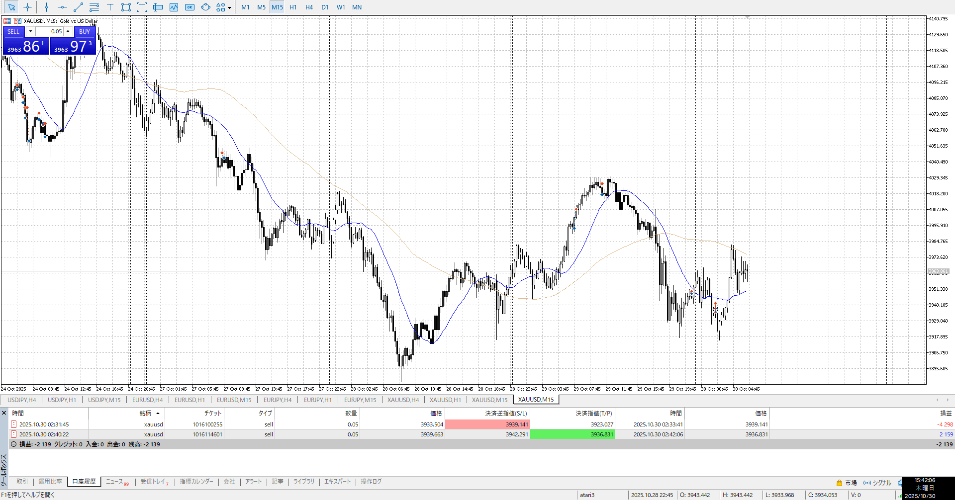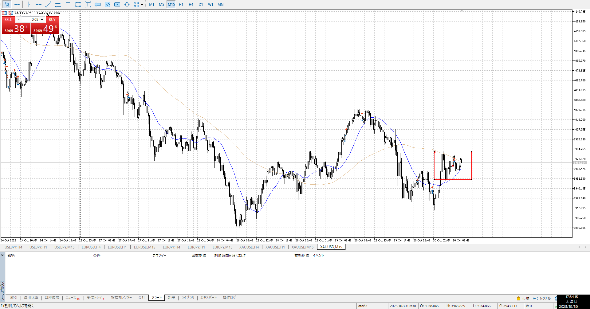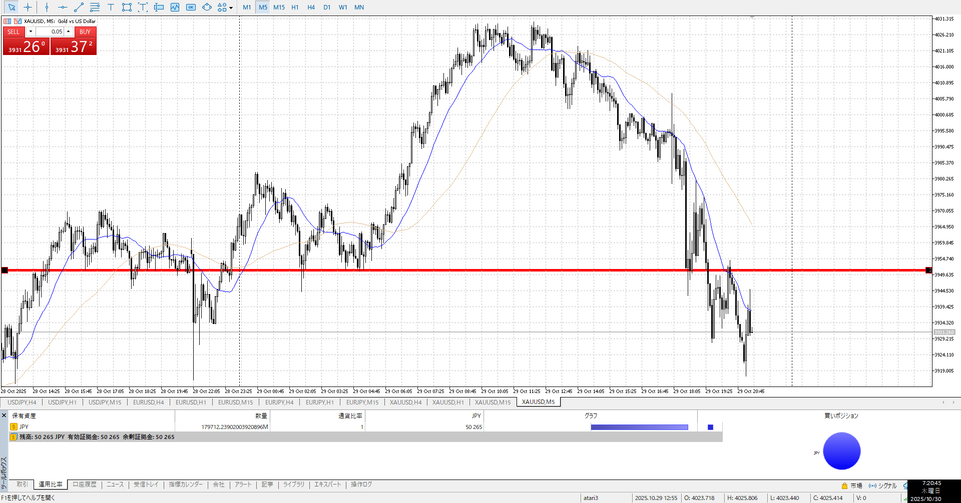 それに寝不足のダブルパンチ。今日は急速M戻りを下髭と小さい足でキャッチして、その後上下髭を上でキャッチする流れだった。