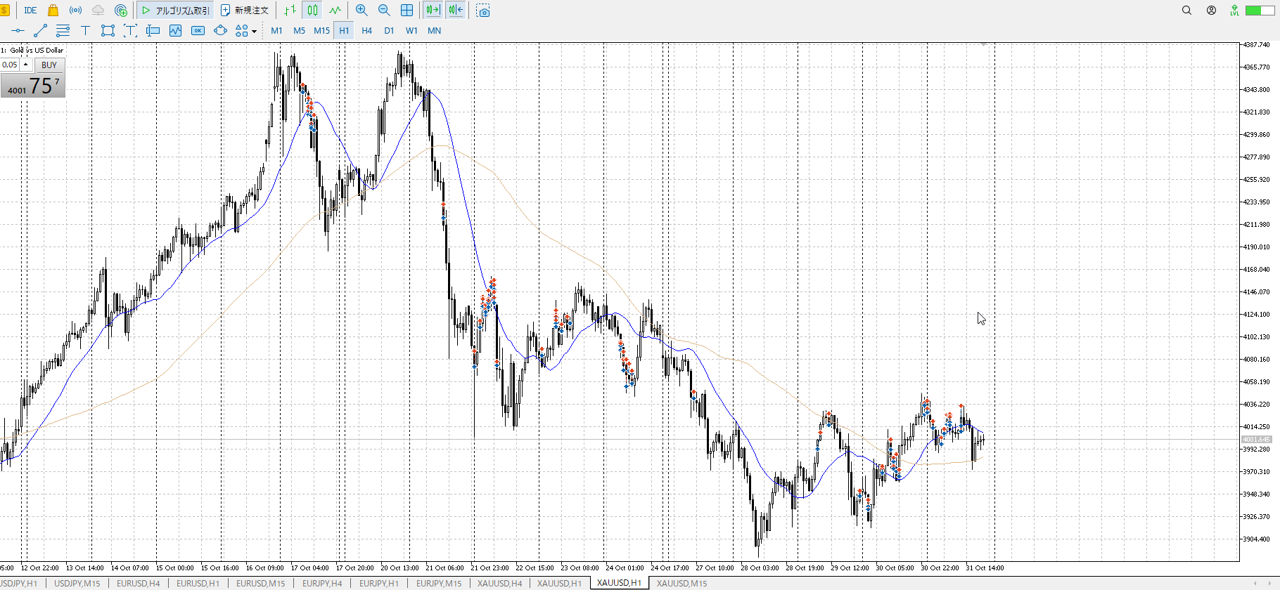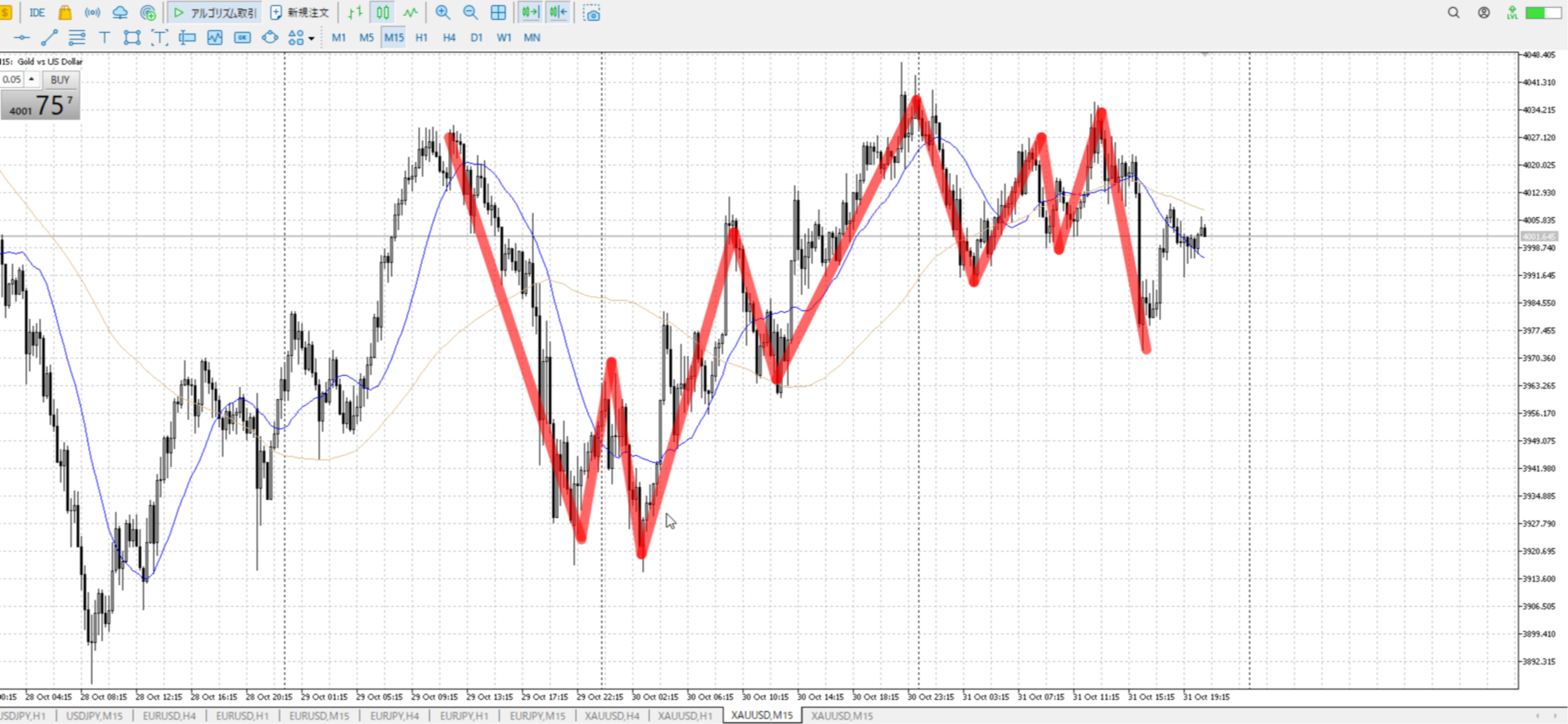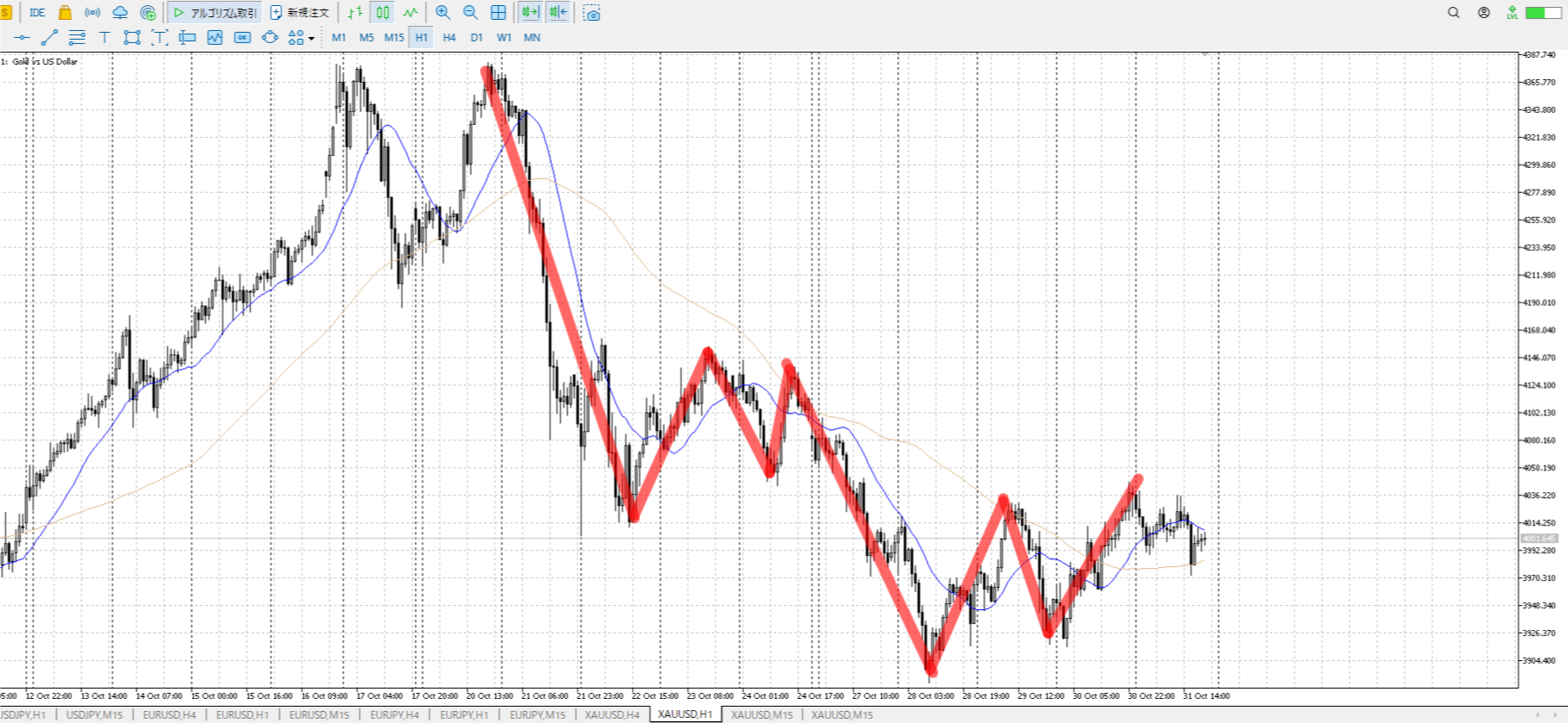 直近は15mネックを割って下に落ちているが、早めに戻ってネックに下接触中