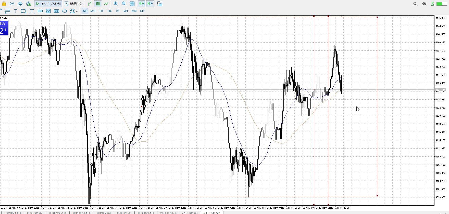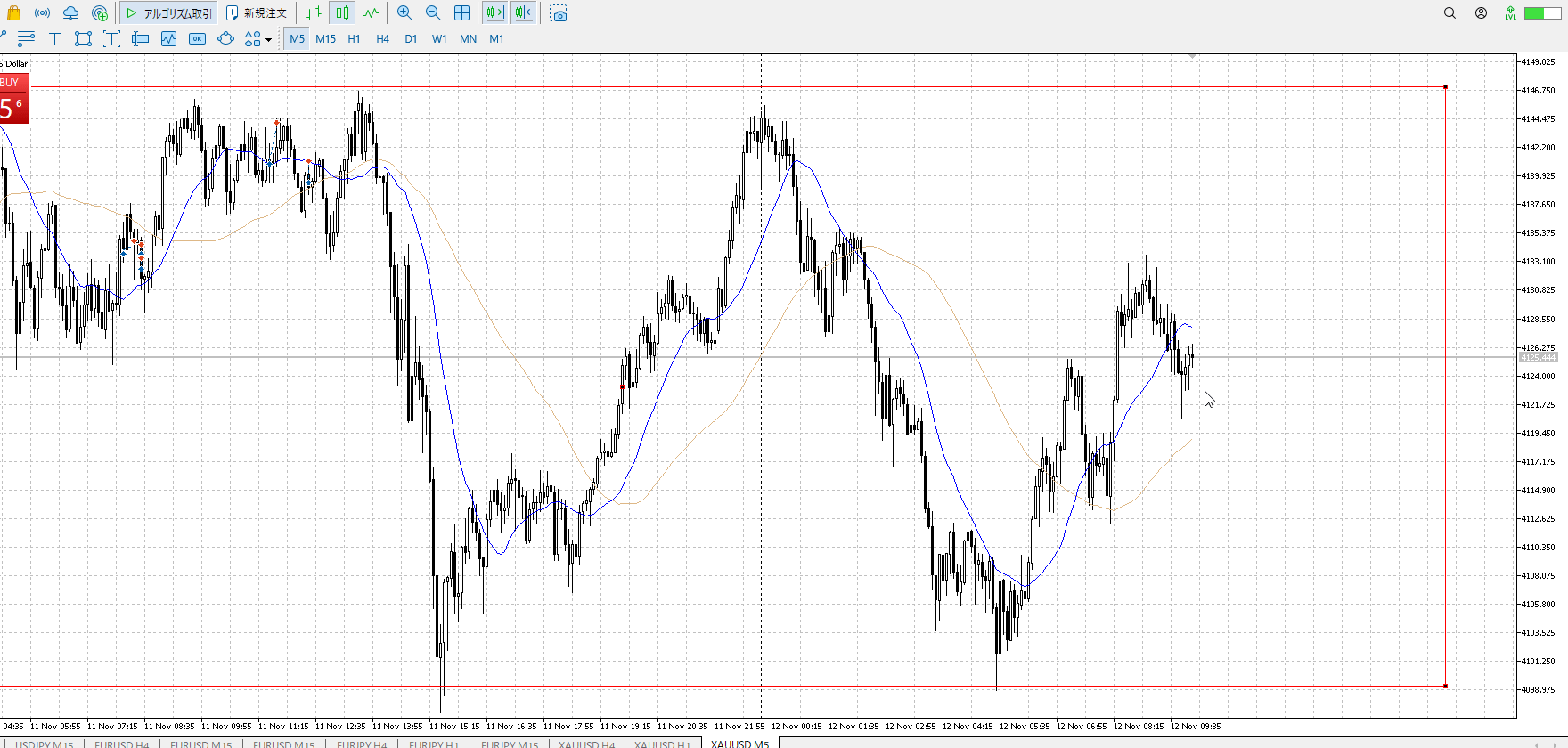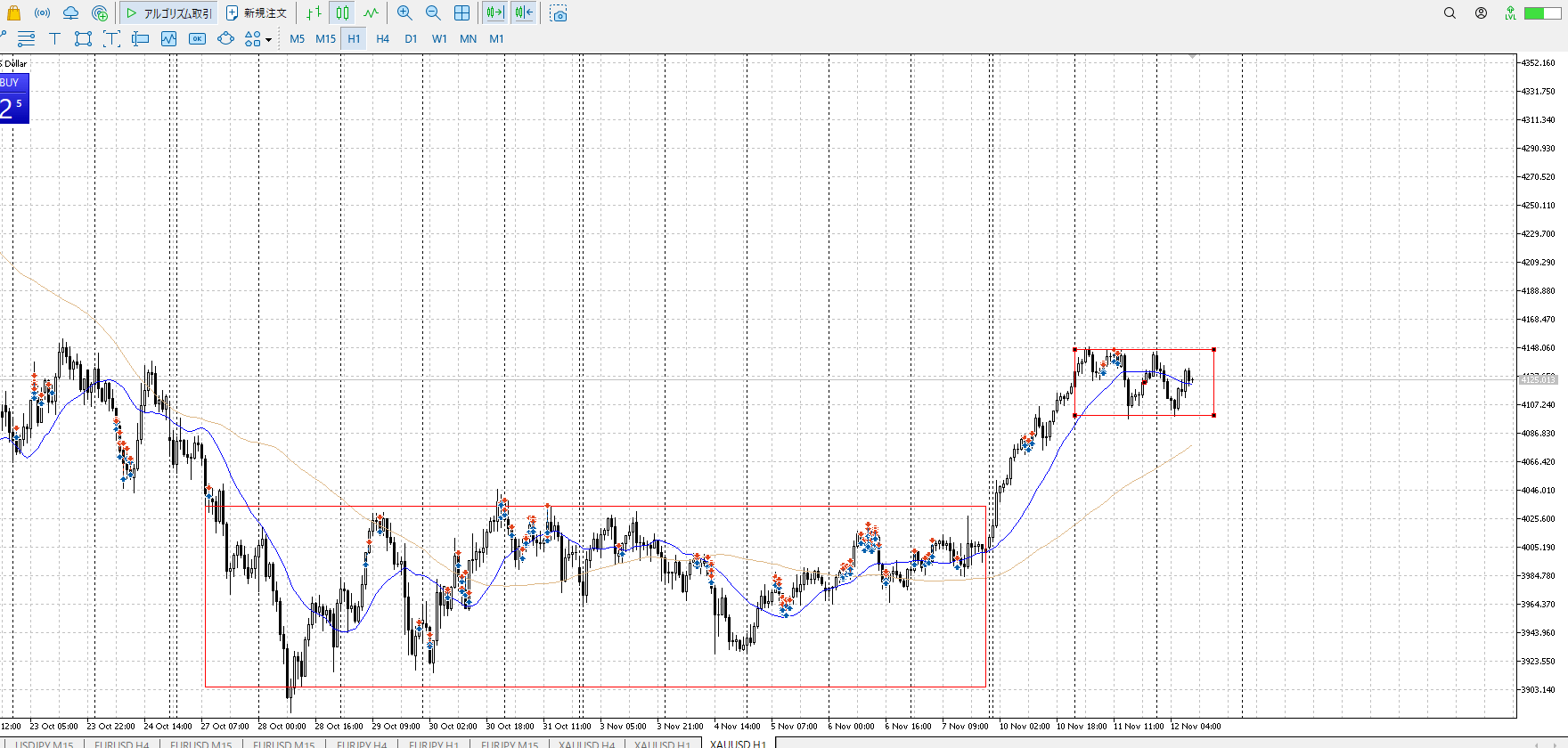 上の方でレンジ。買いが途切れてないので隙を見て買い。