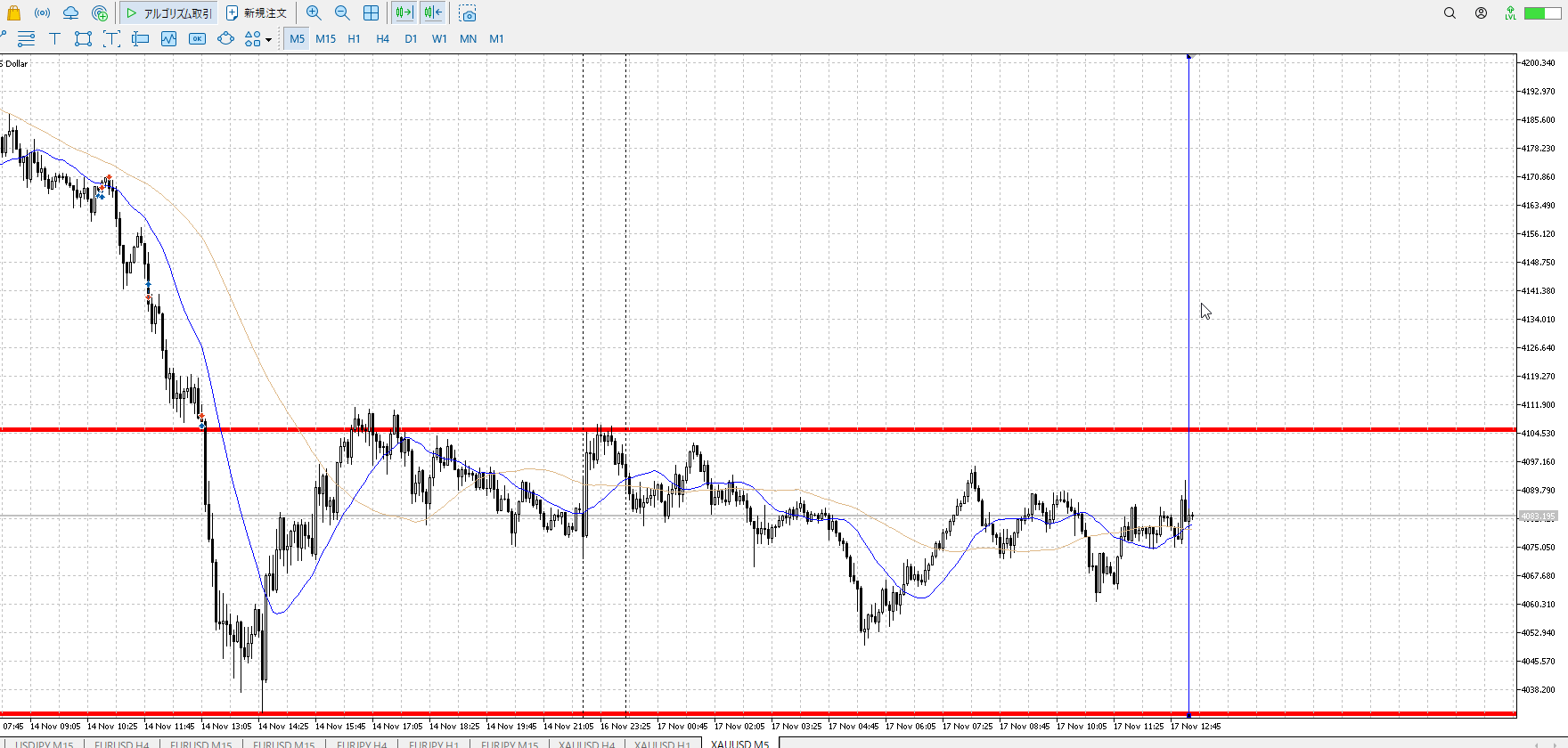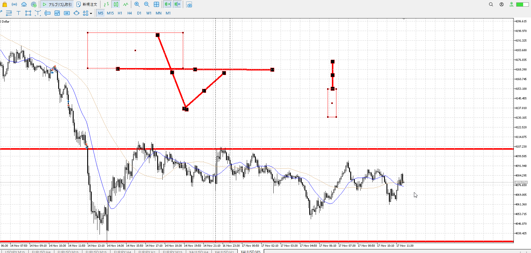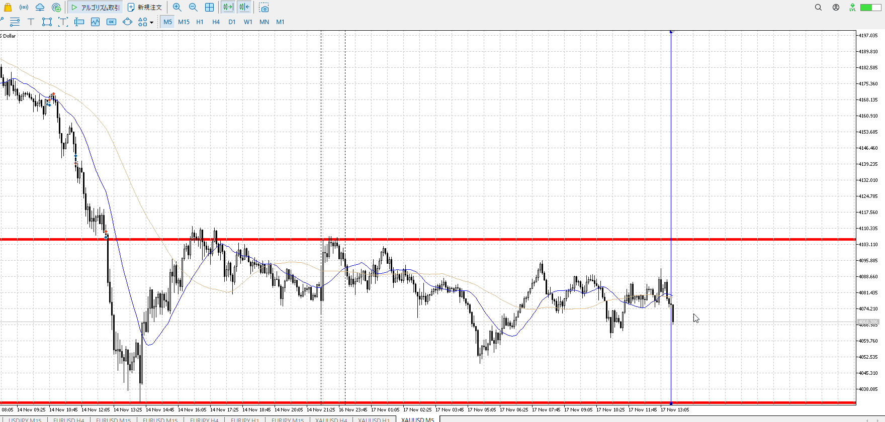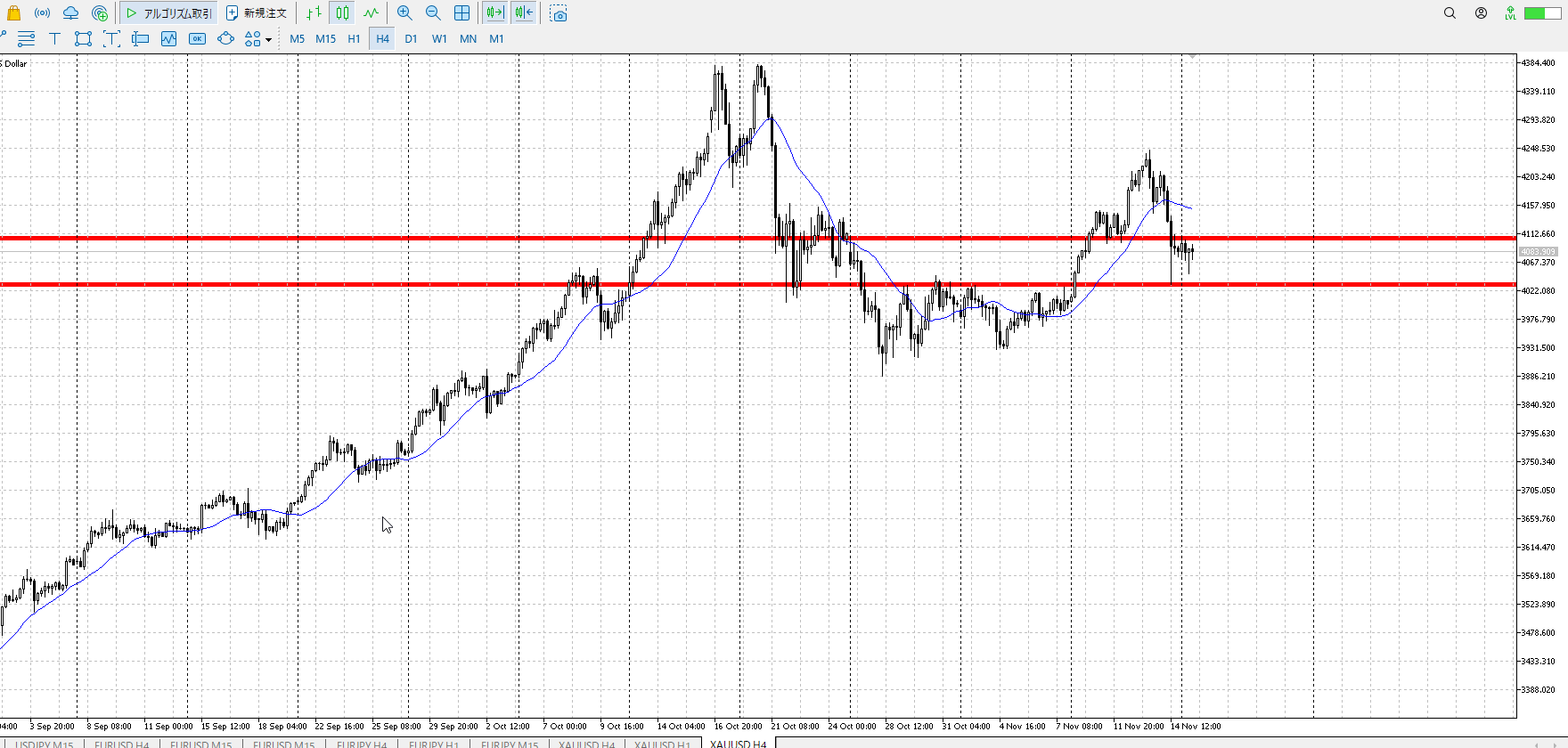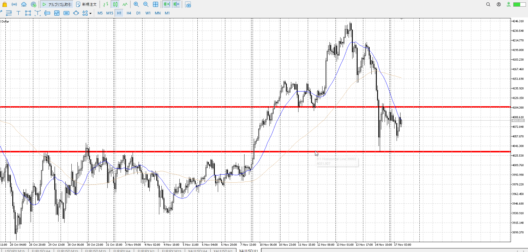 1hレンジ下売り、4hレンジ上買い。