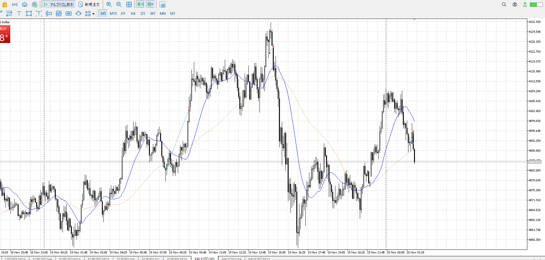 5mで撤退は早くないかというとこだけど。利確損切もエントリーなので、一番早く反応する5mがこれな時点で切るのはおかしくないとも言える、と思う。