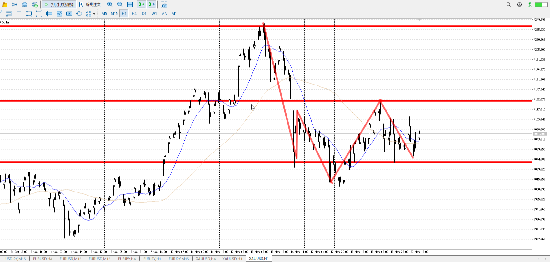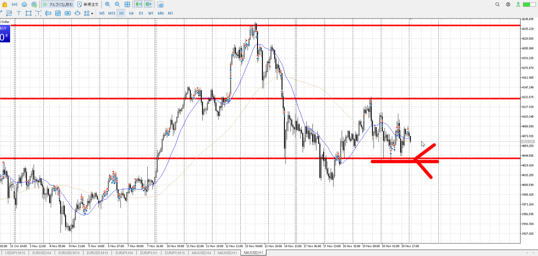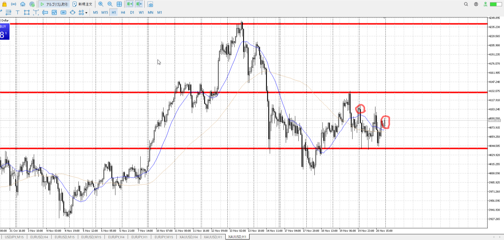 1h高値売り、1h安値買い