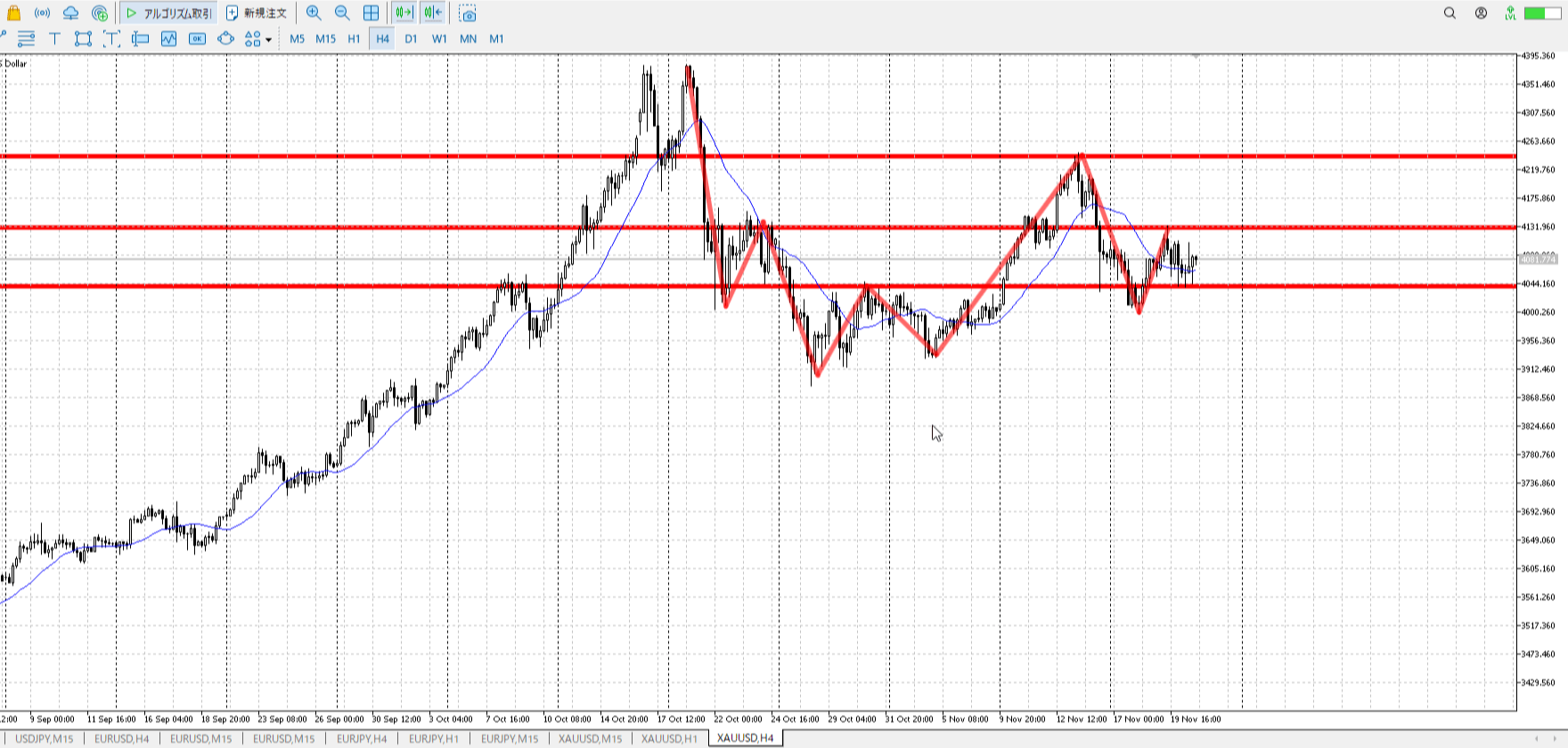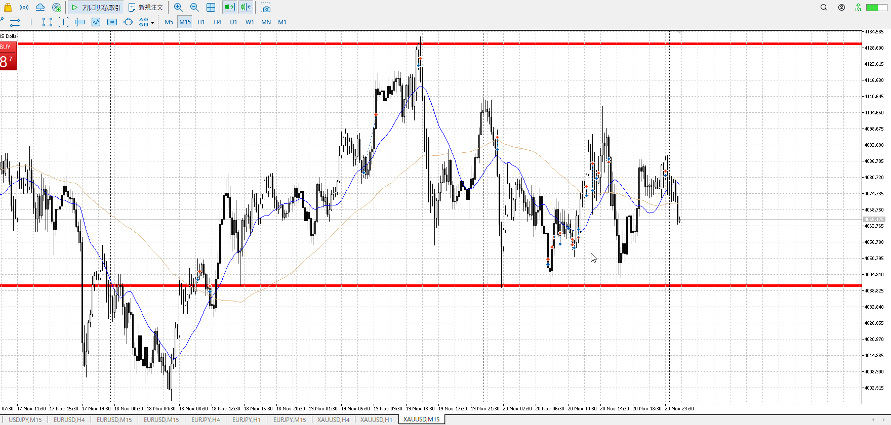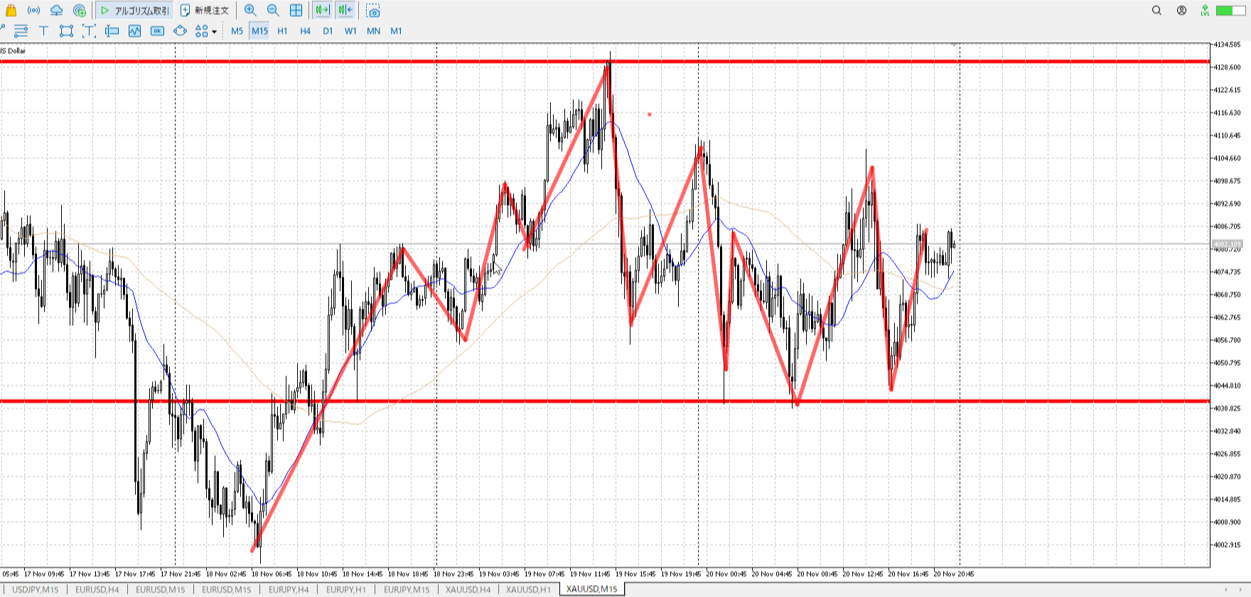 1h高値売り、1h安値買い