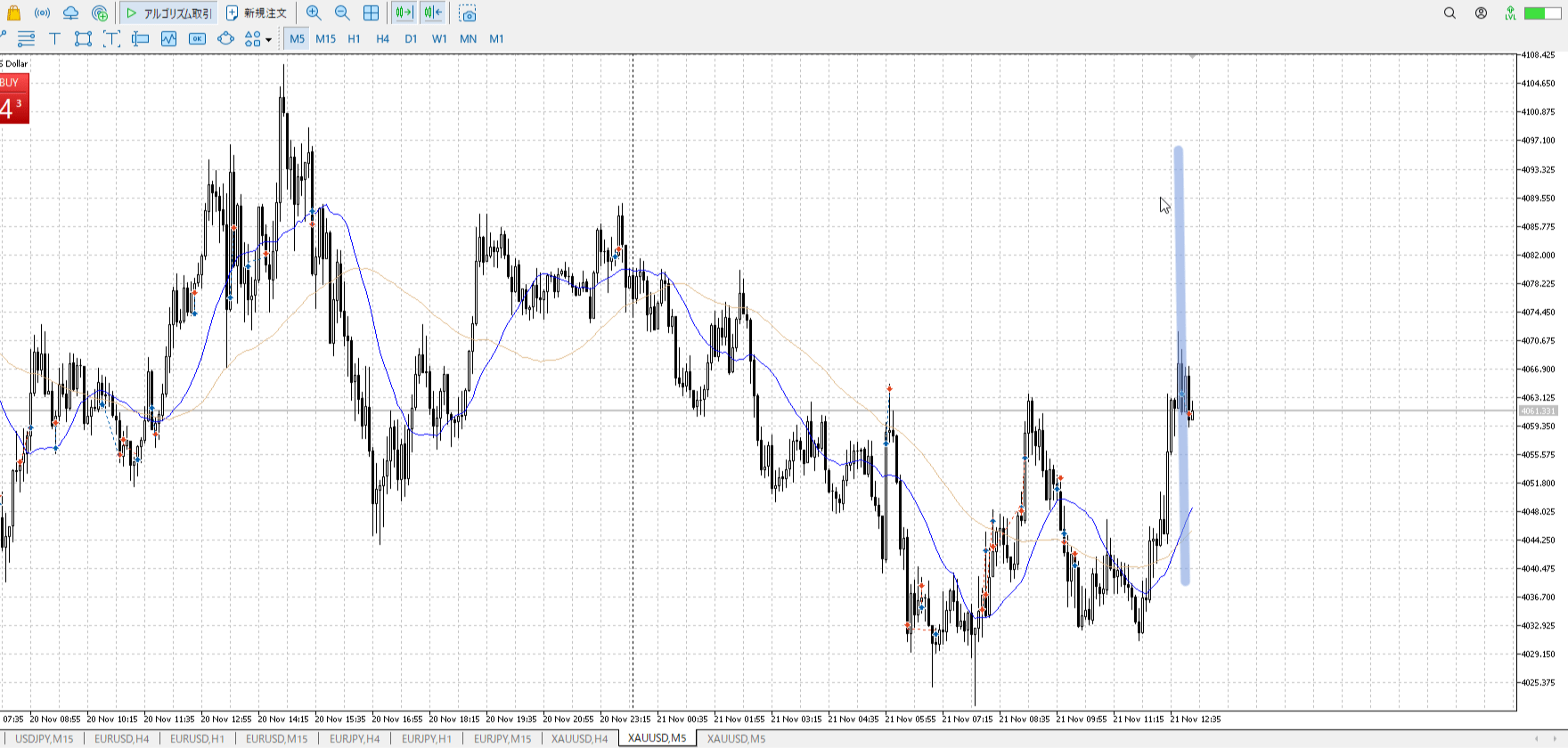 - 買いは一瞬、それが早いローソクで潰えてるなら見切り抜け売り