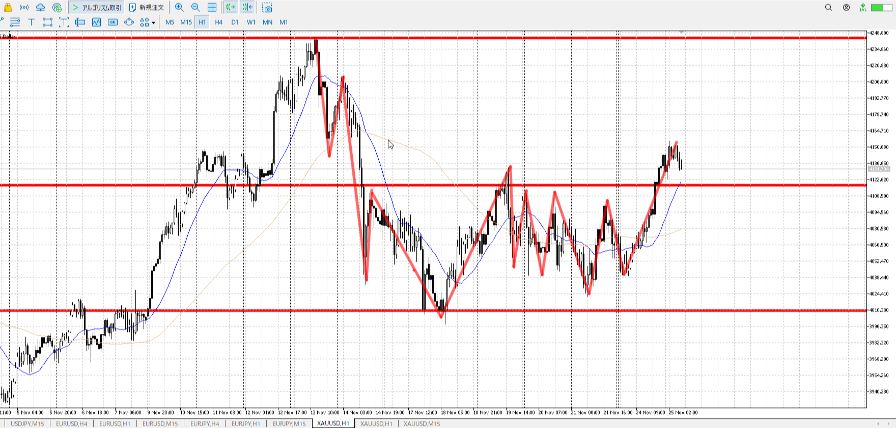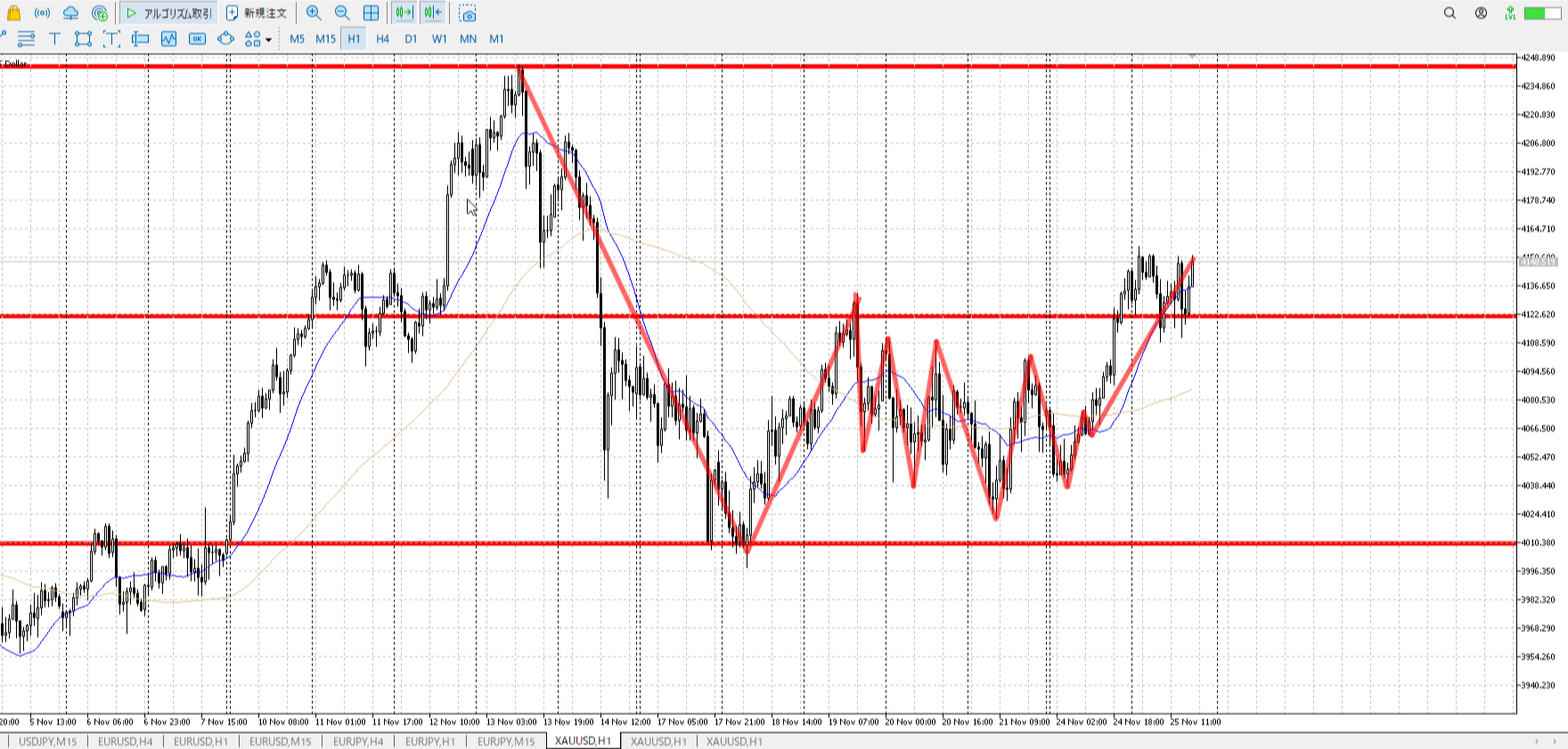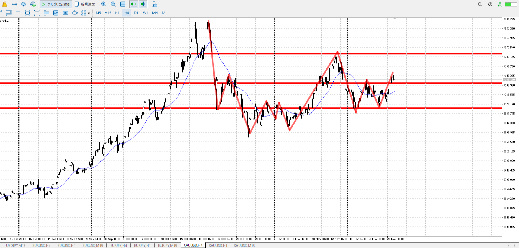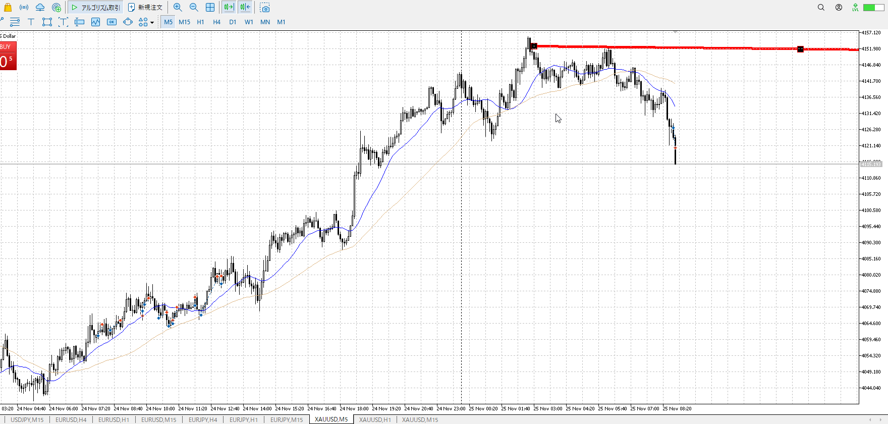 相場は買い。シナリオは上抜きか下からか買い。1hも下がりそうで、それからなら買い場に触れた時のPAで1hで買える。つまり上抜き期待。