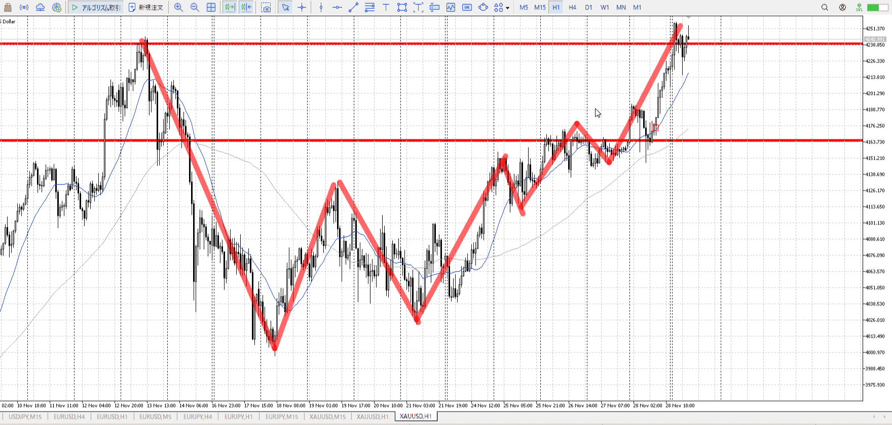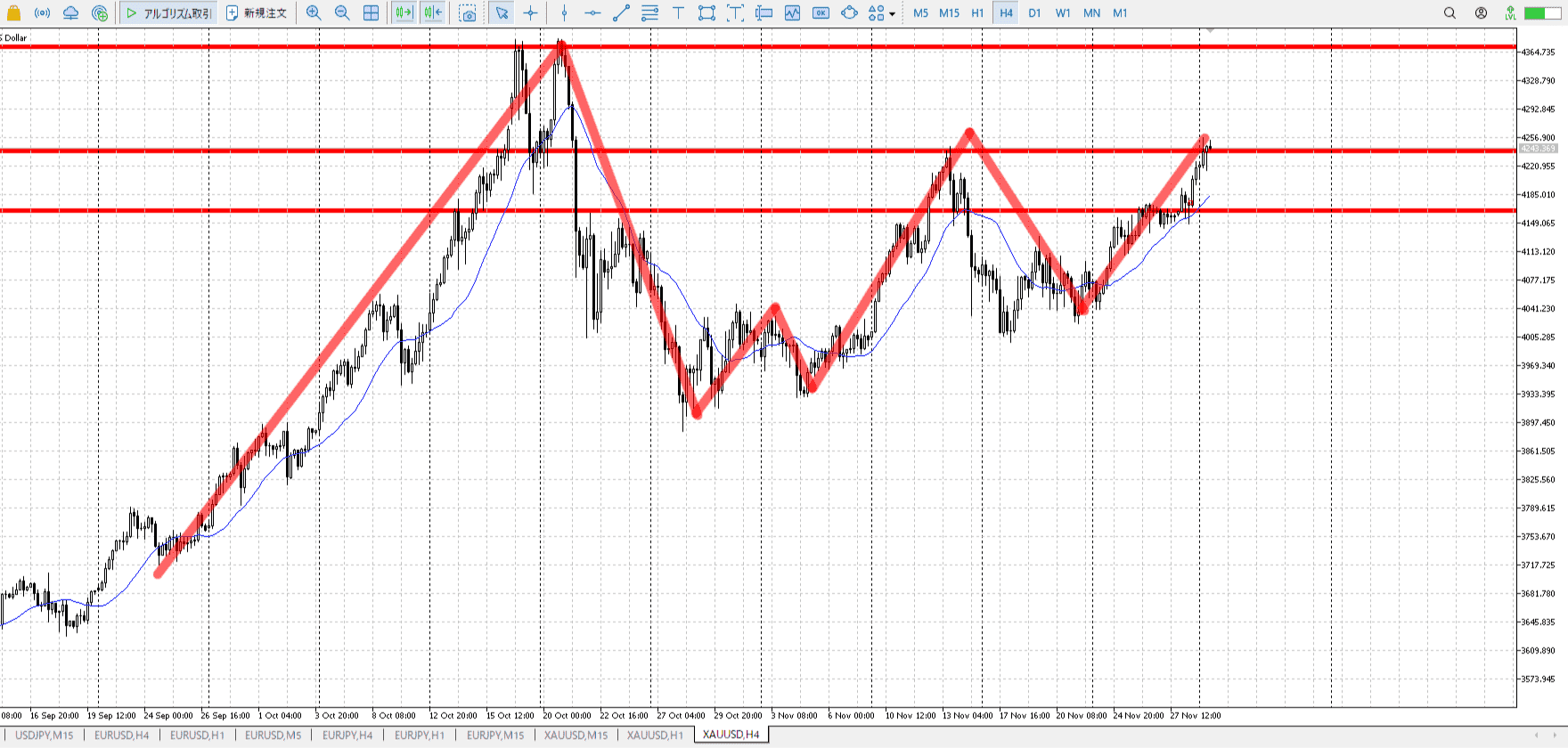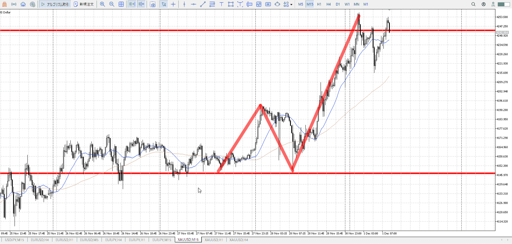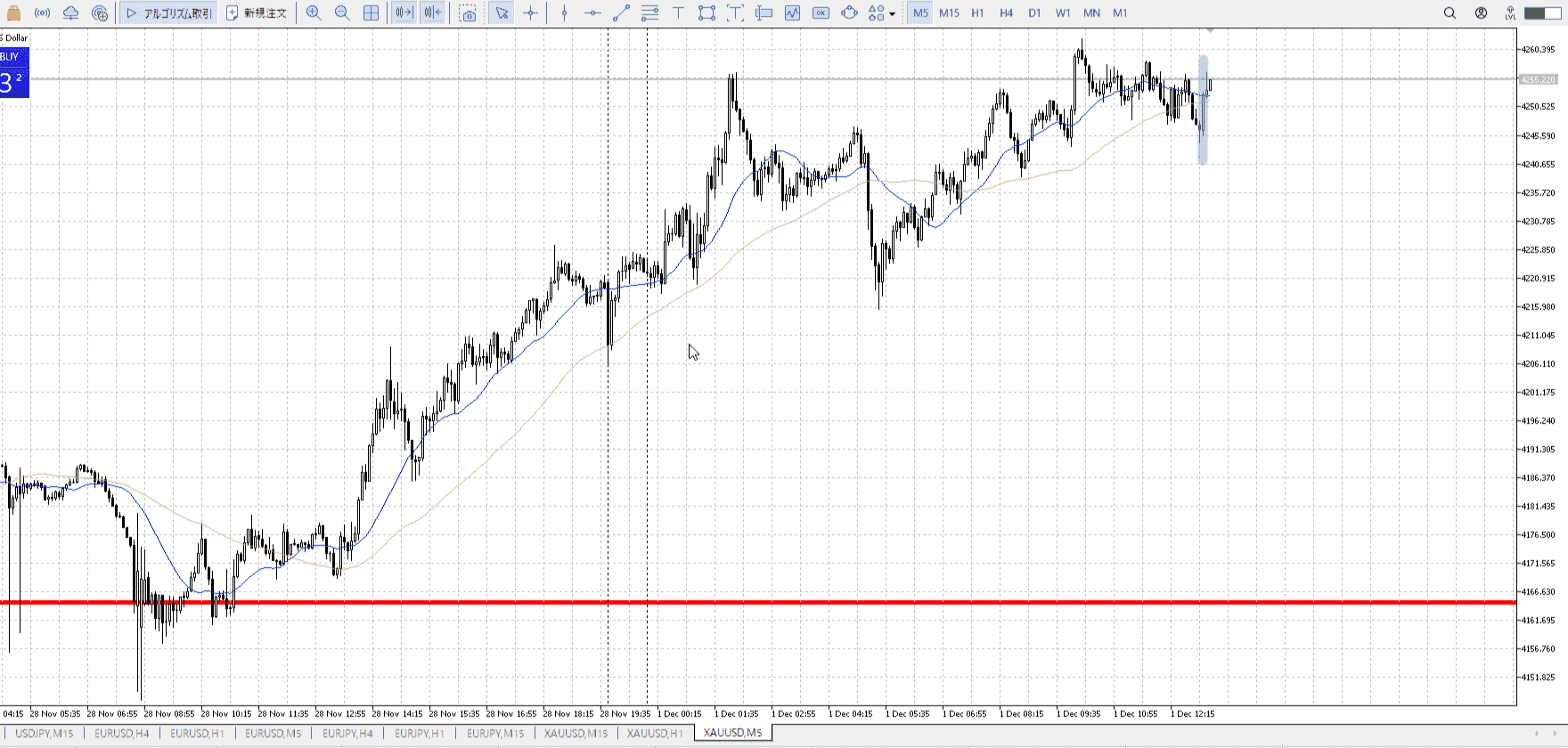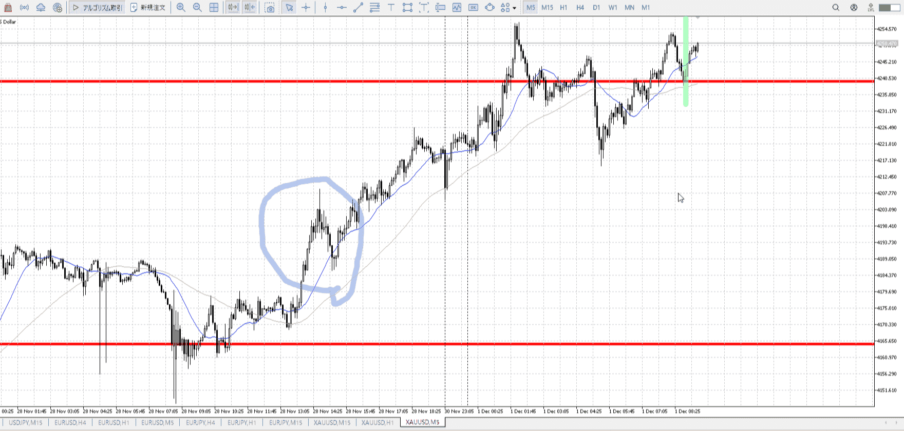 一応15mで買えるが、相手は4hであることに注意。15mも今は上昇なので買えない。よほどぶち抜いたら流石に買うが。