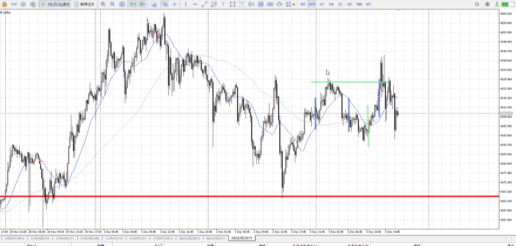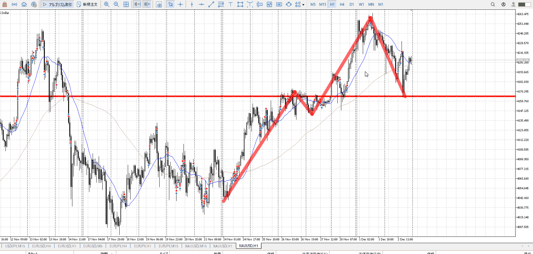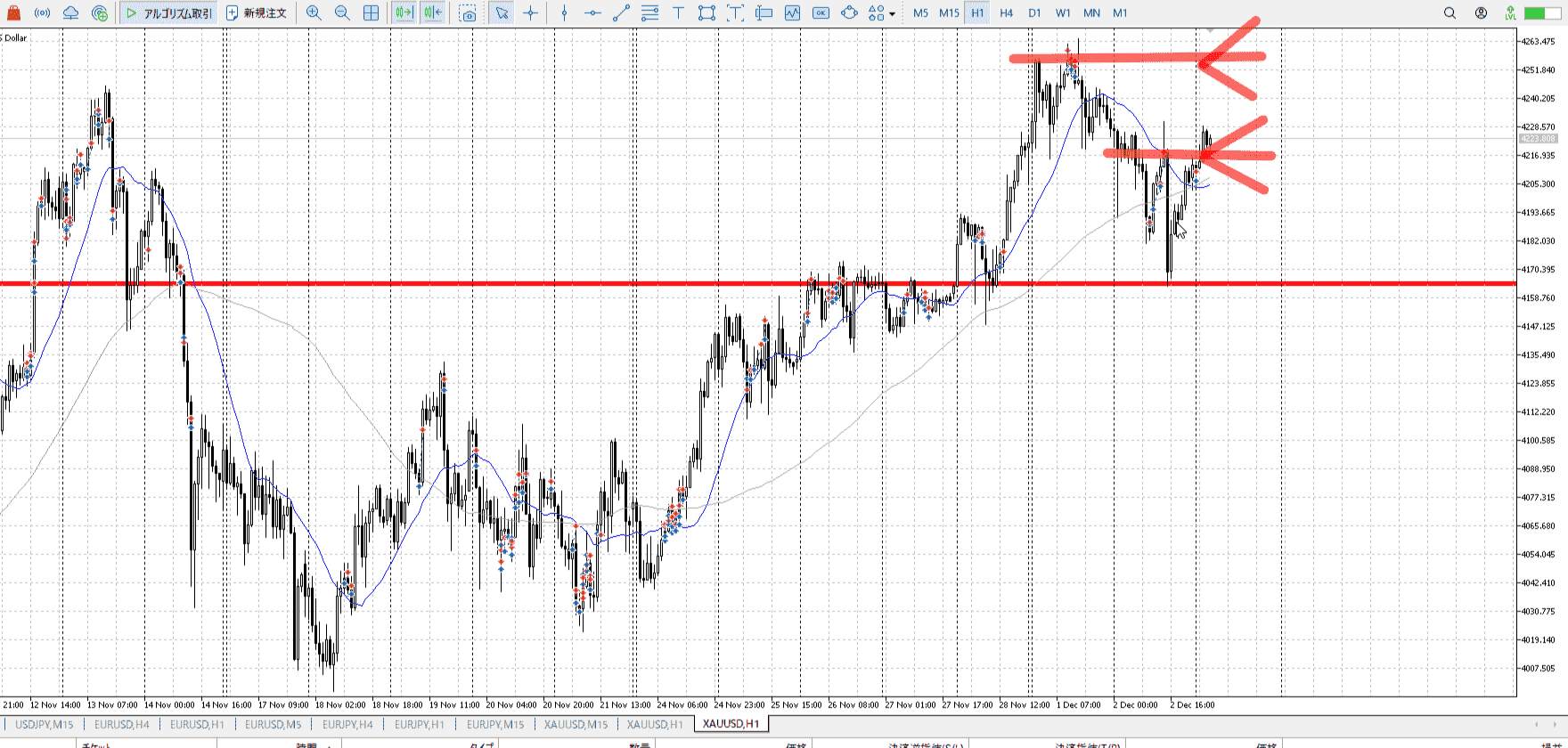 緑丸地点を参照して買ったが、明らかに1h買い場の影響を受けているこことは状況が違う。