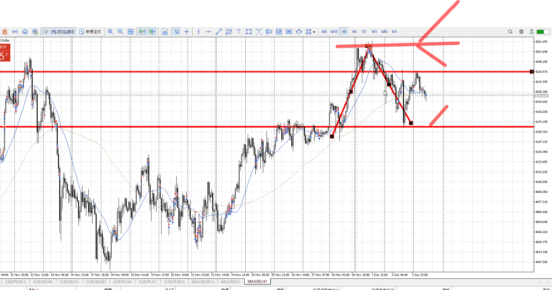 1hがそろそろ上向きそう。そうなったら手出しは難しい。