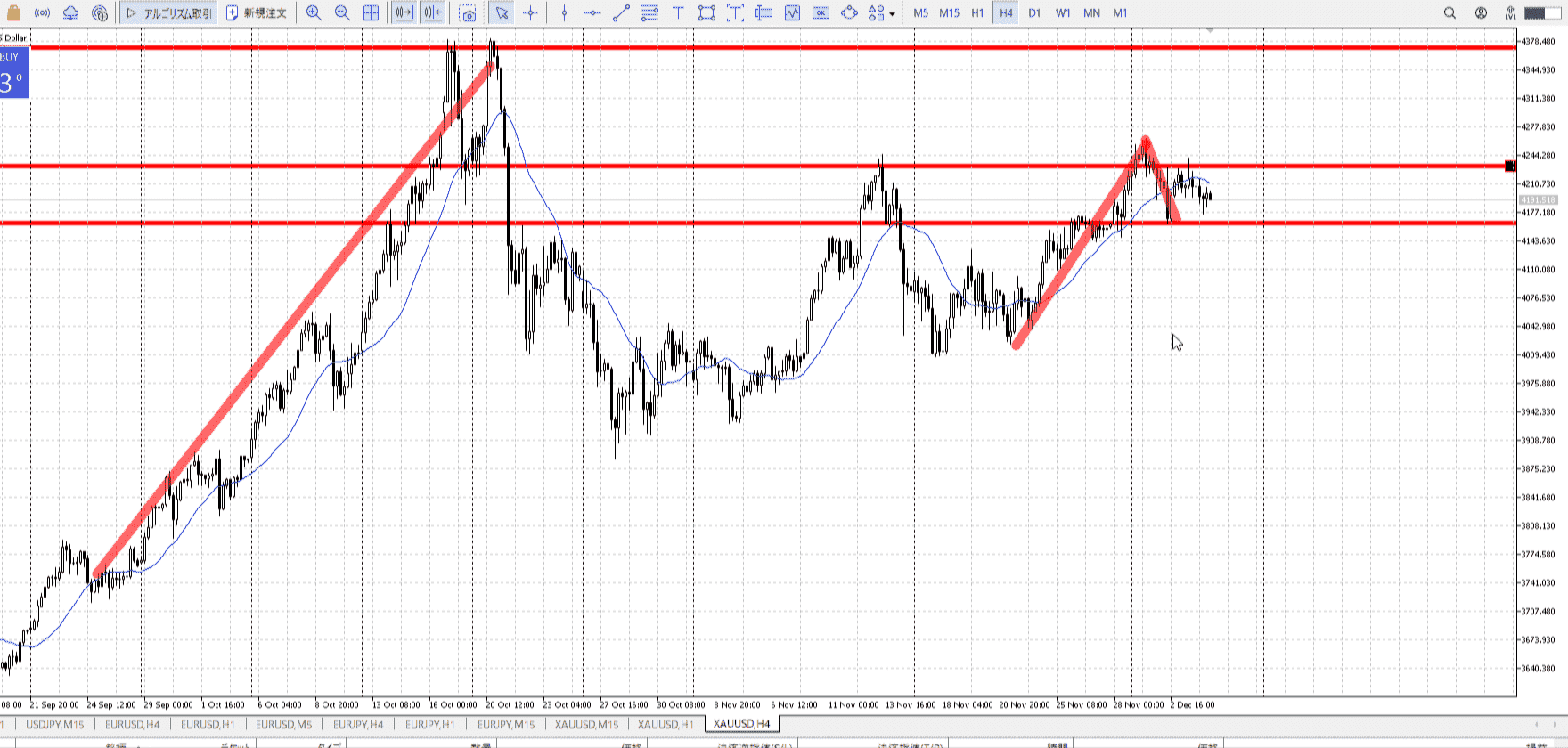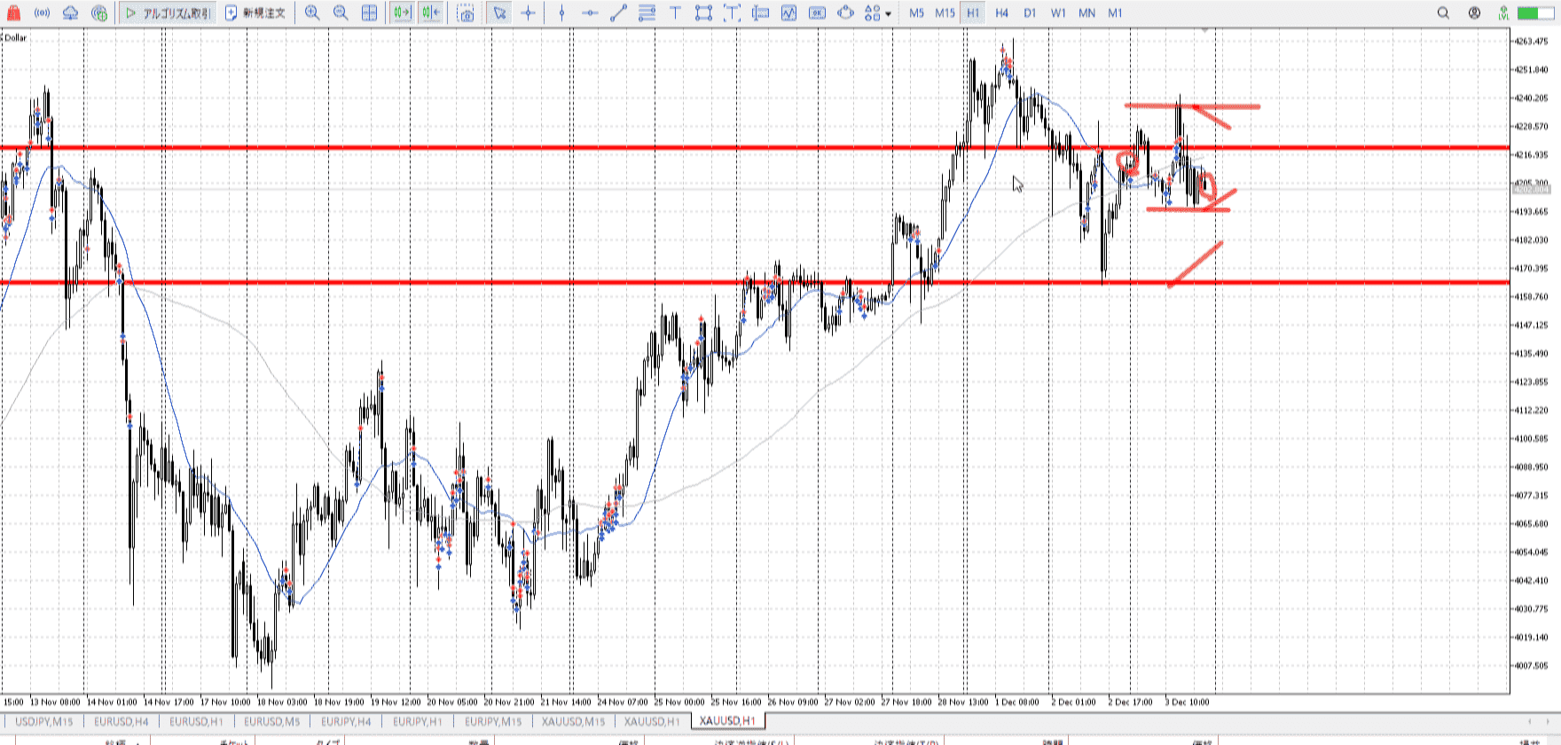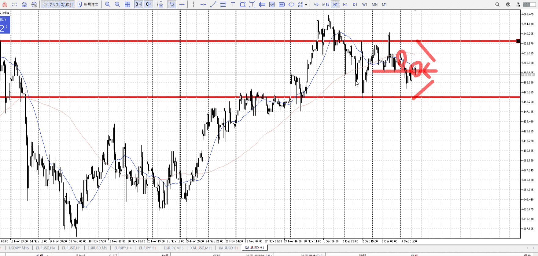 - これを抑える大きい陽線が出たりしない限り、買いは入れにくい