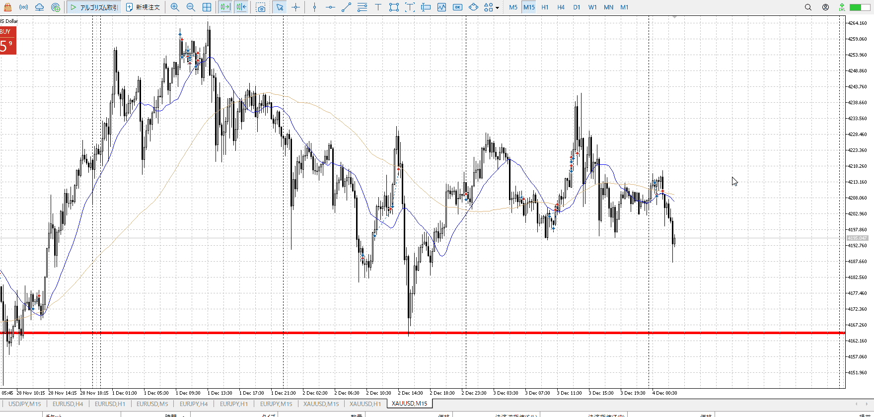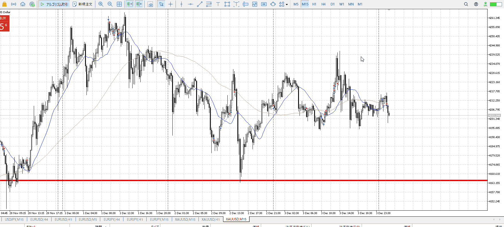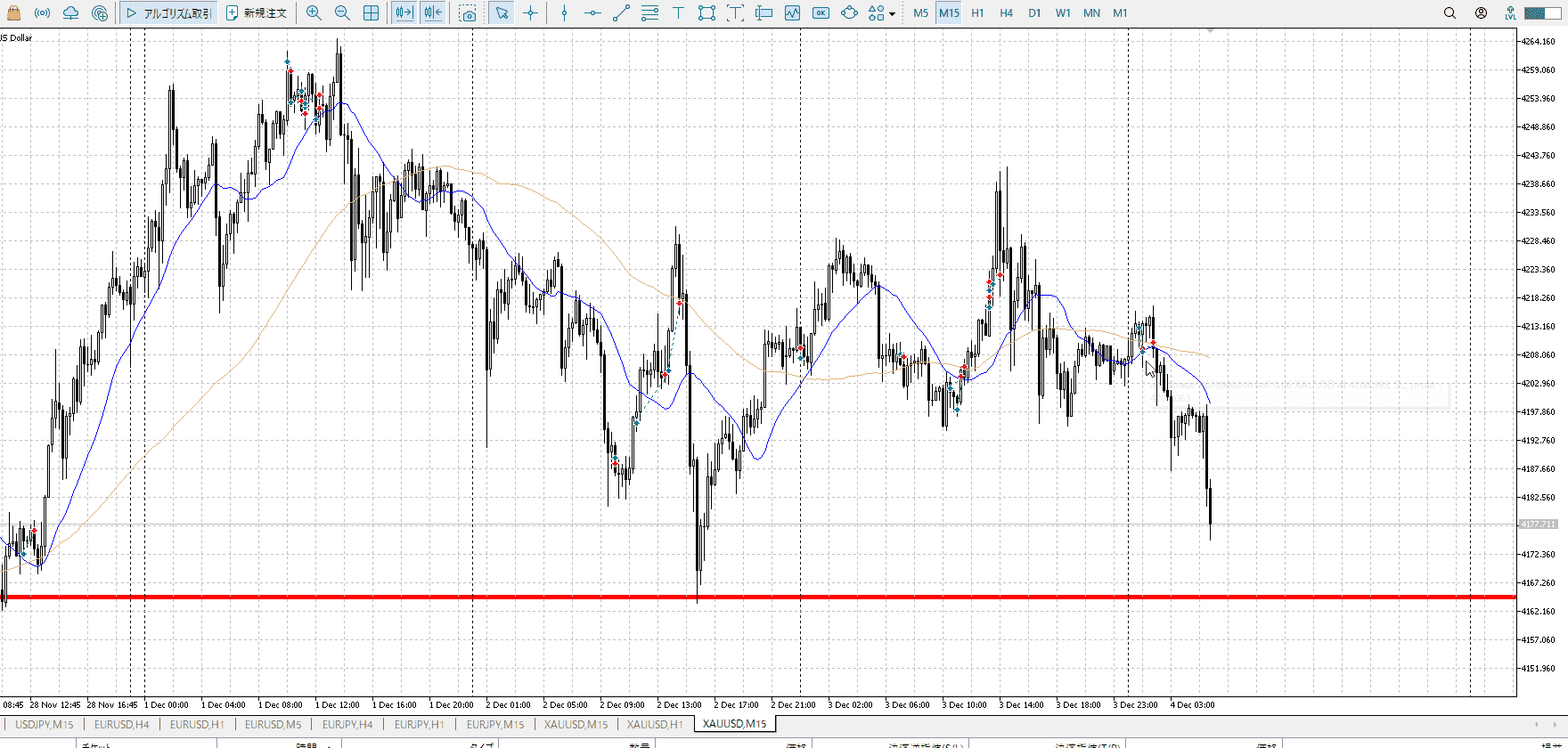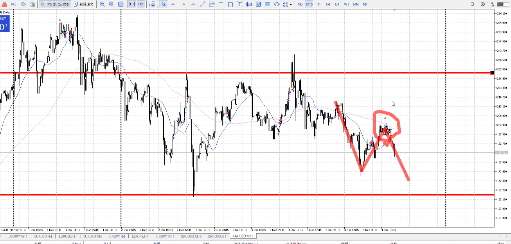 1h安値を破るまでは買いたいが、しっかりこれが止まるのを15mで見てから。