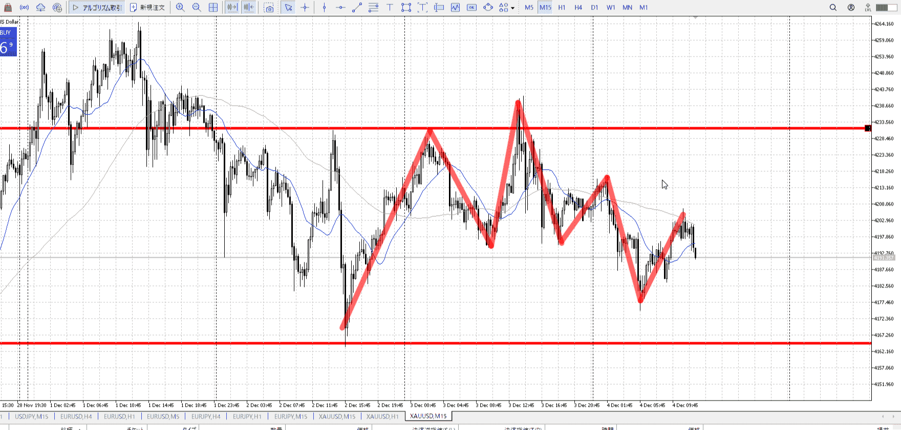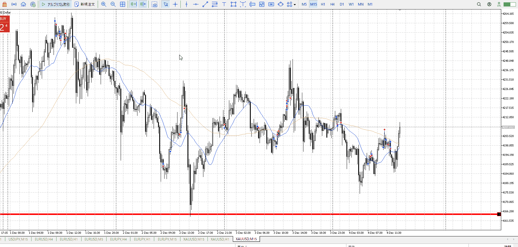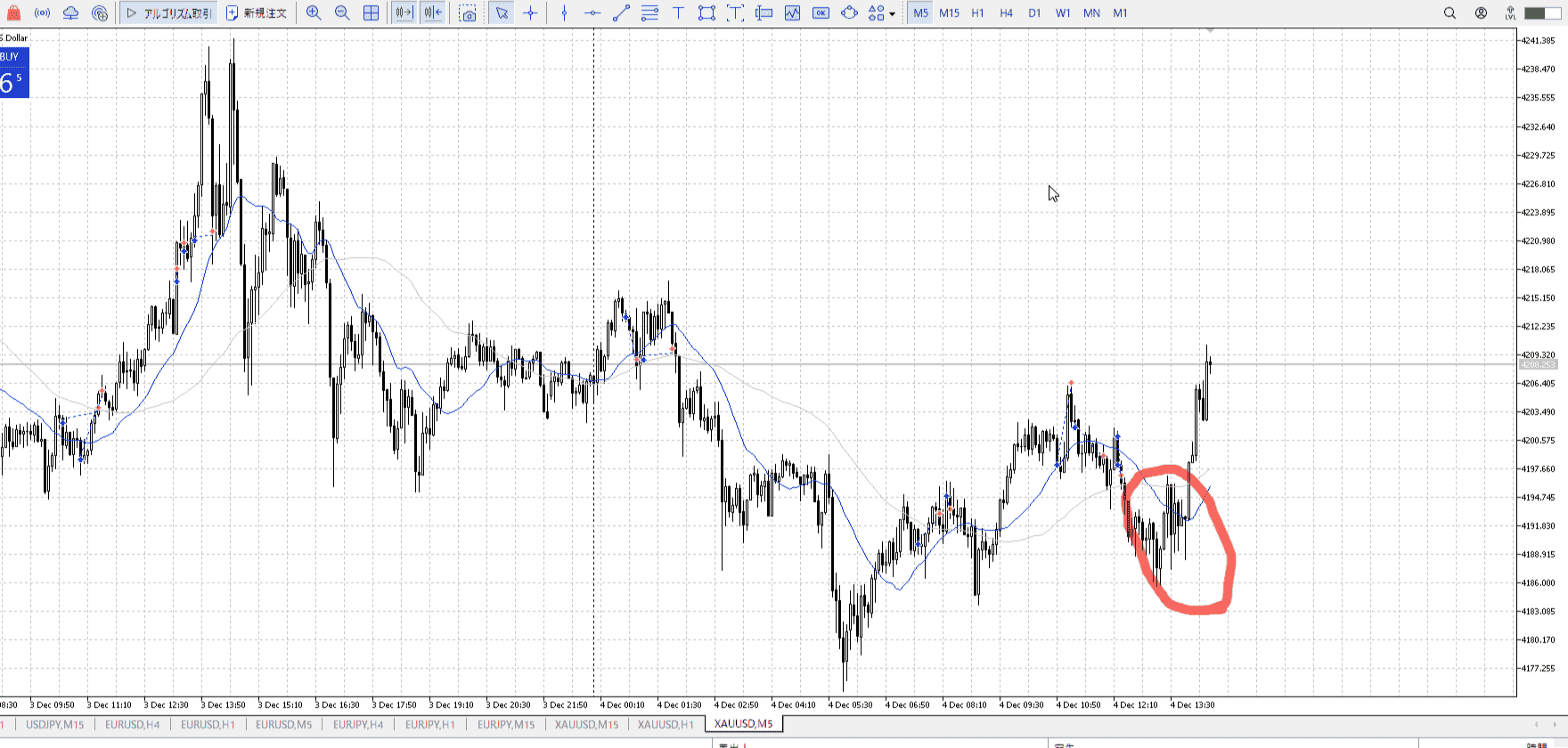 1hが下なのは変わらない。15mとまた離れ始めたので、これが追いつくまで。