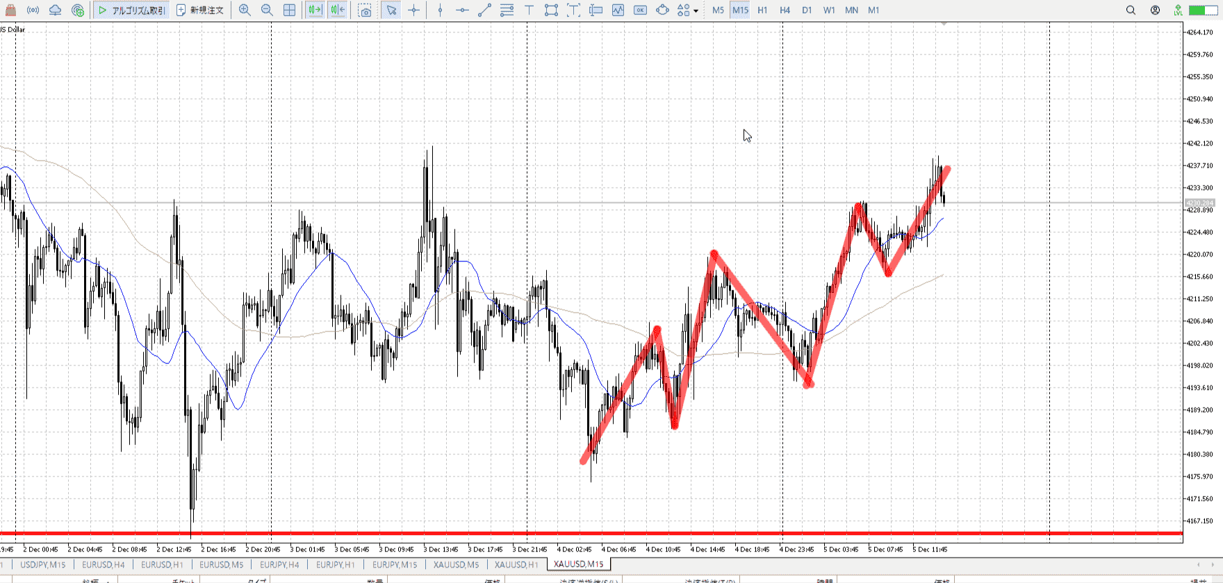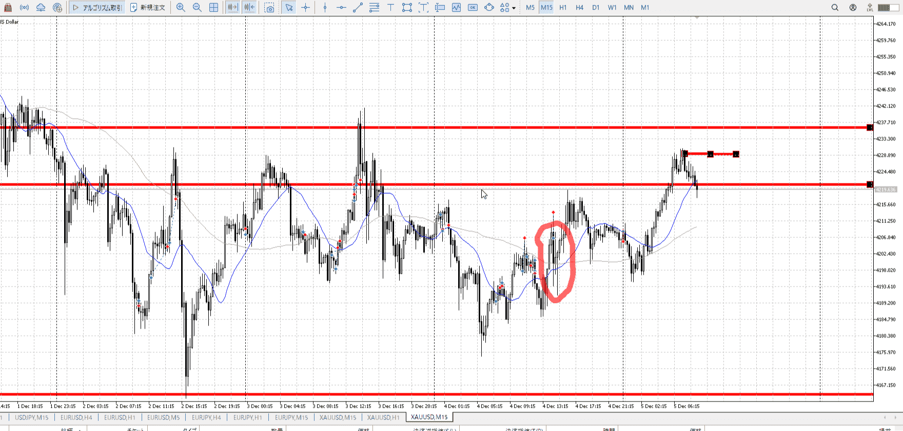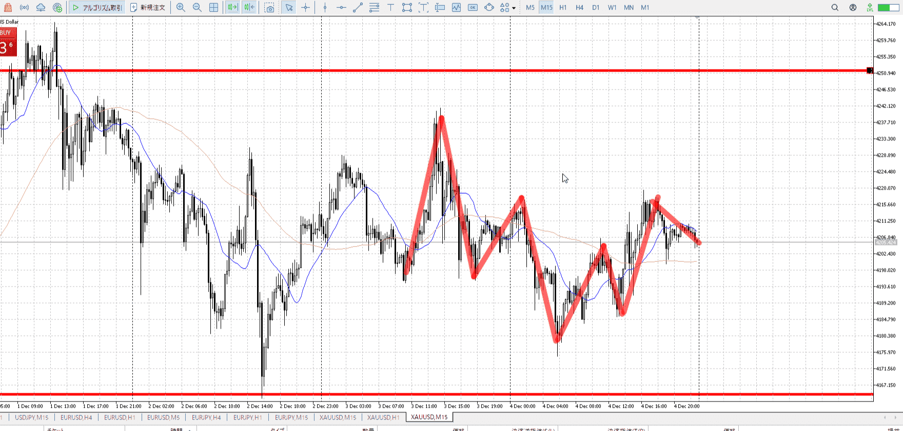 15mとしてはここで落ちて、15m高値から上がっていくシナリオ。