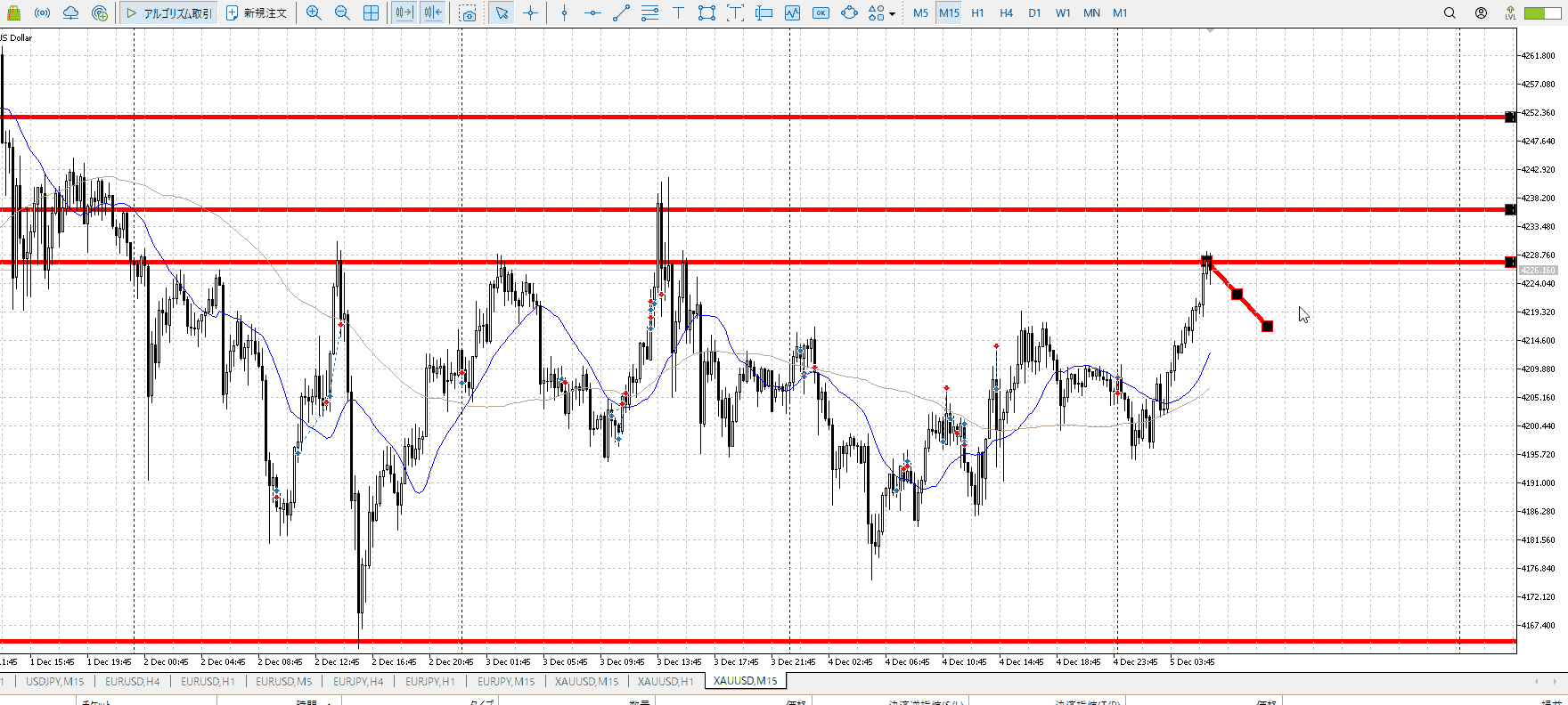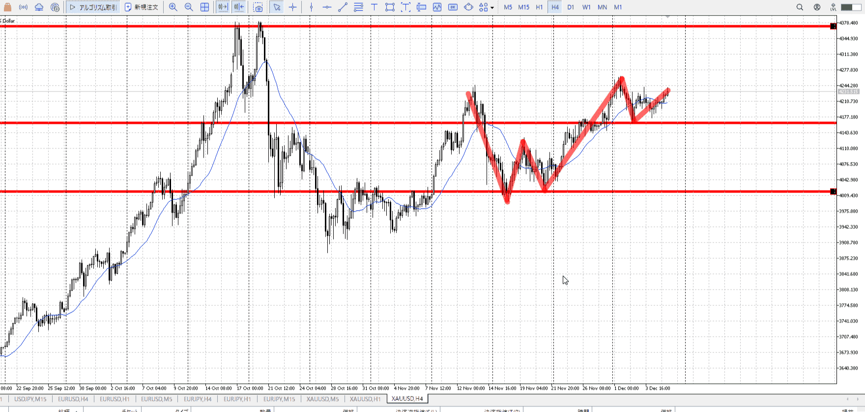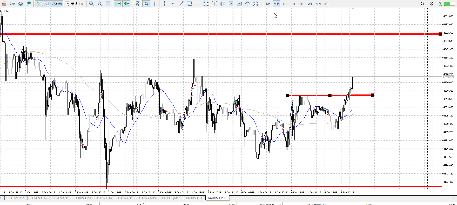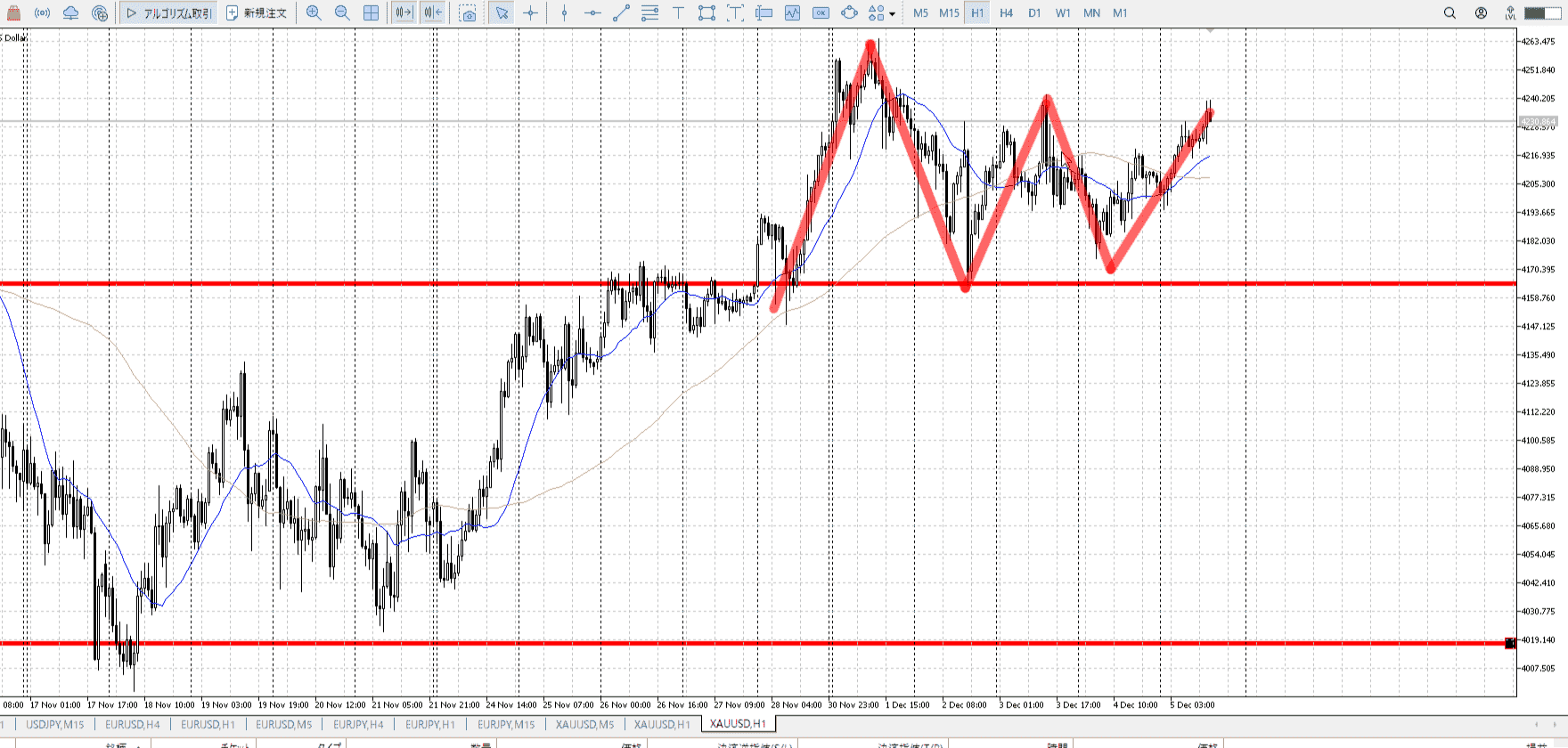 15mとしてはここで落ちて、15m高値から上がっていくシナリオ。