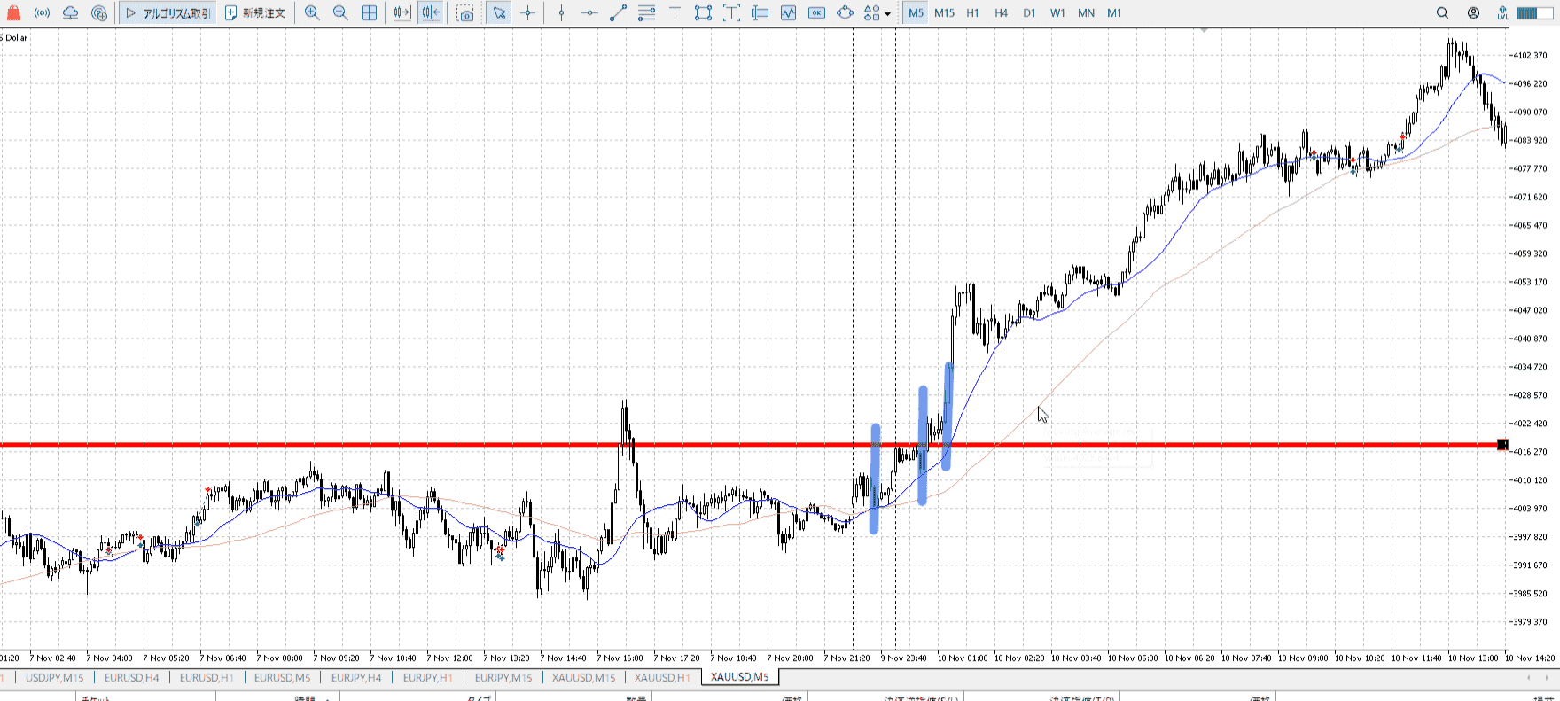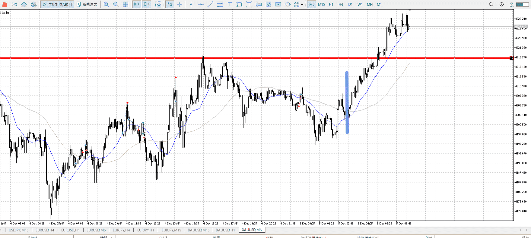全体で切り上げが起き、天井からの落ちが伸びず、さらに1h平均の上でもあり、15m5mも平均上。