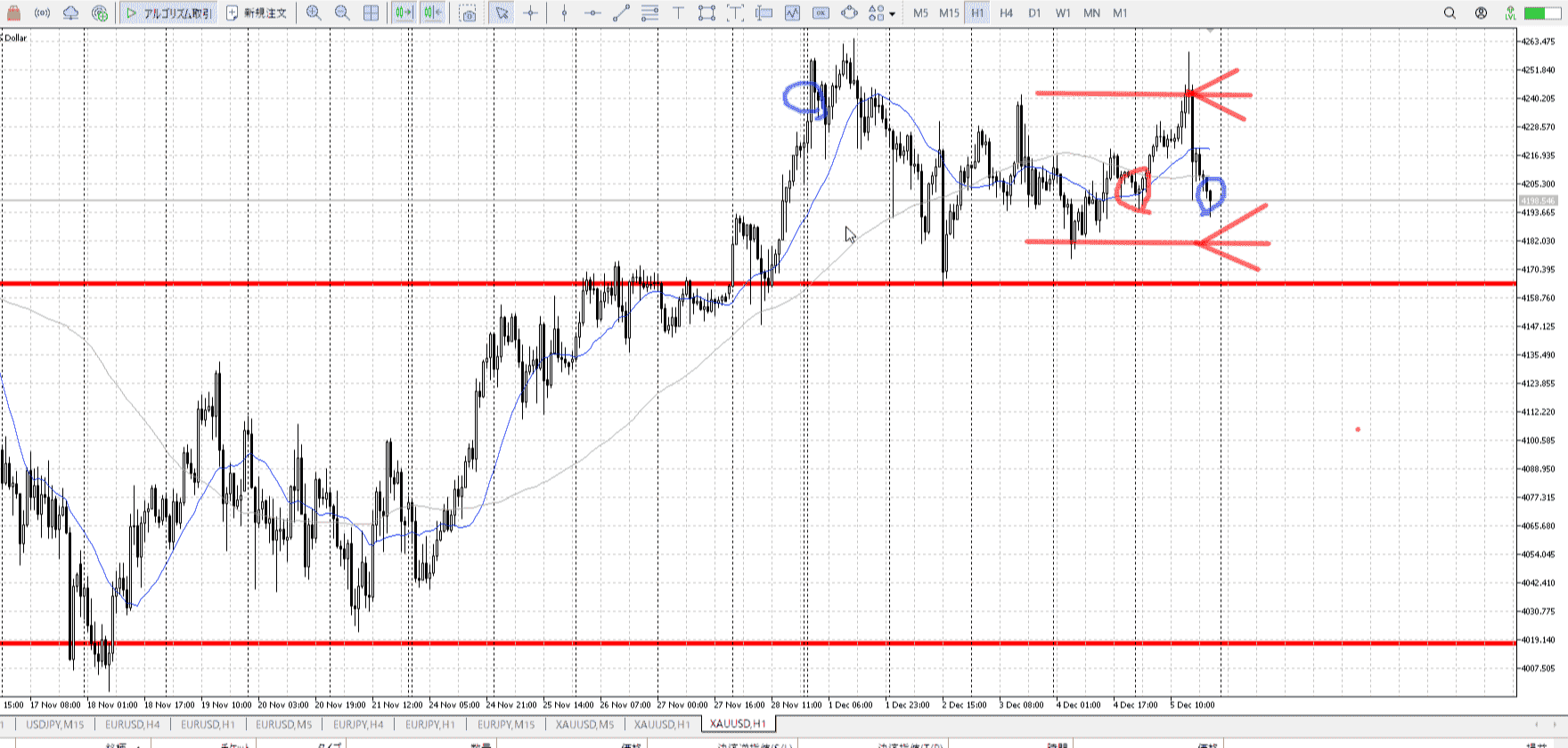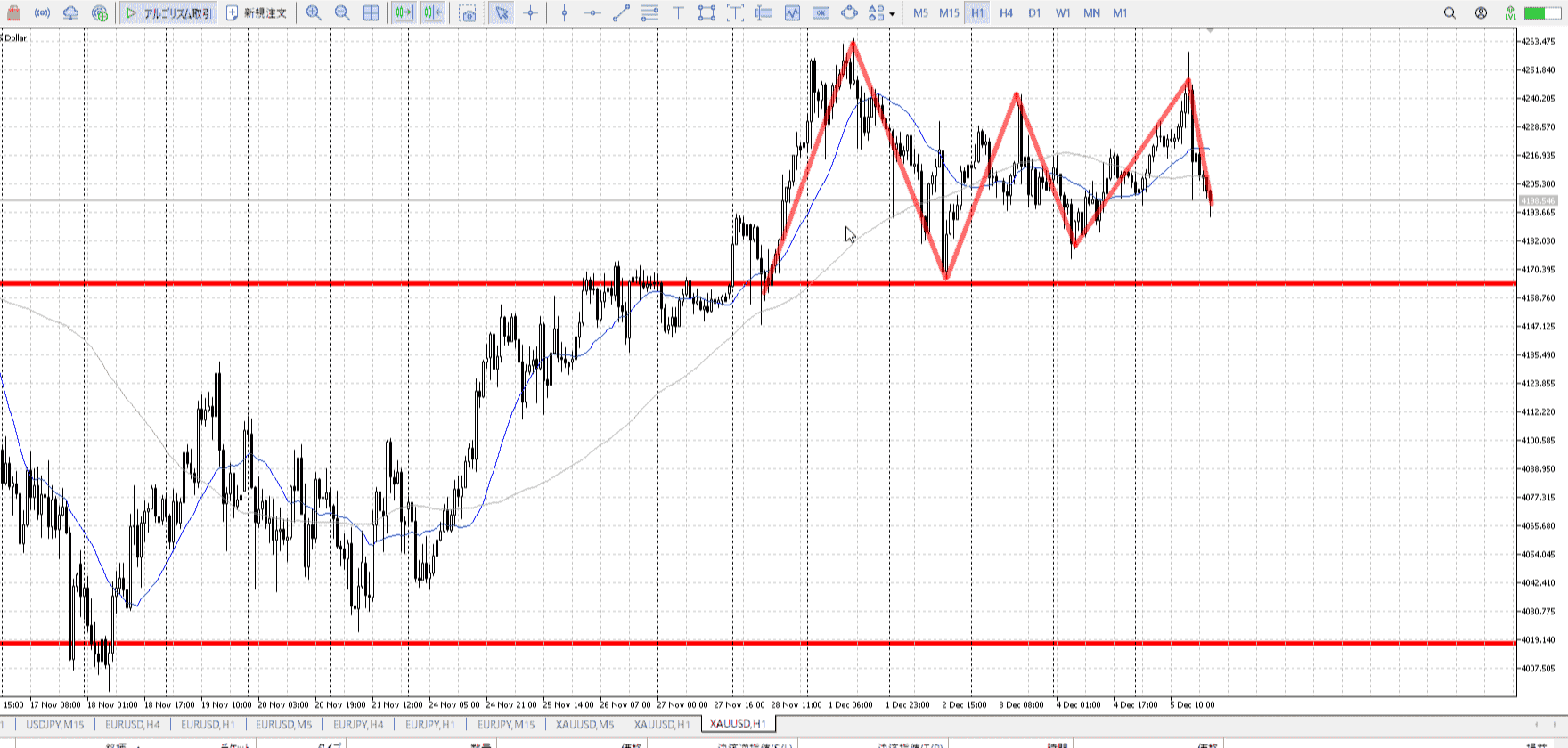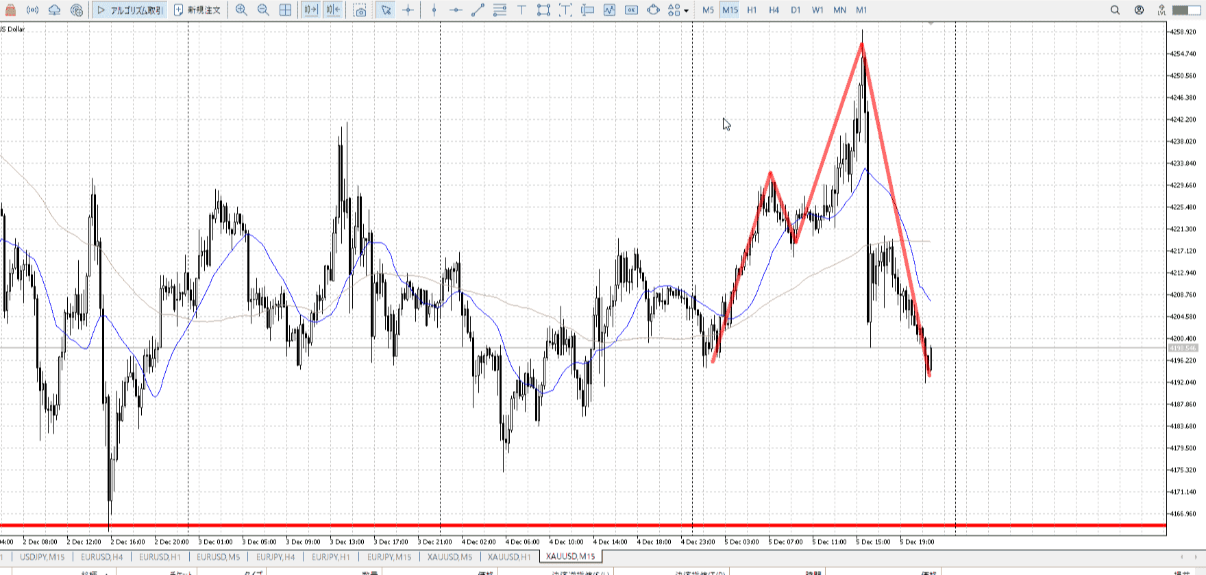 下降によりネックを割り、5mは下向きに。いったん上向きになる理由が欲しい。