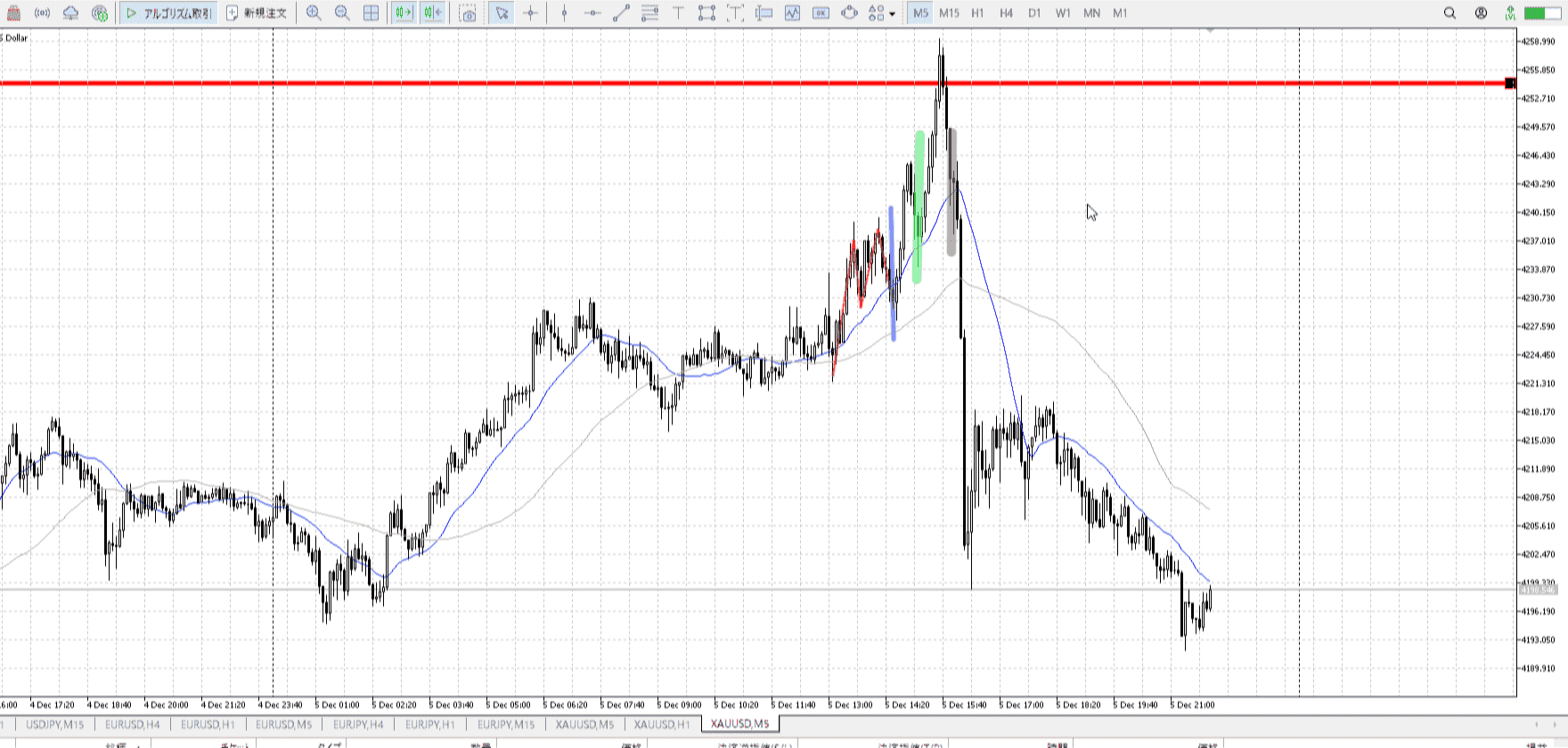 それが緑。5mを全包みしている。これなら上向きとしてひきつけて買える。平均の上にも行ける。