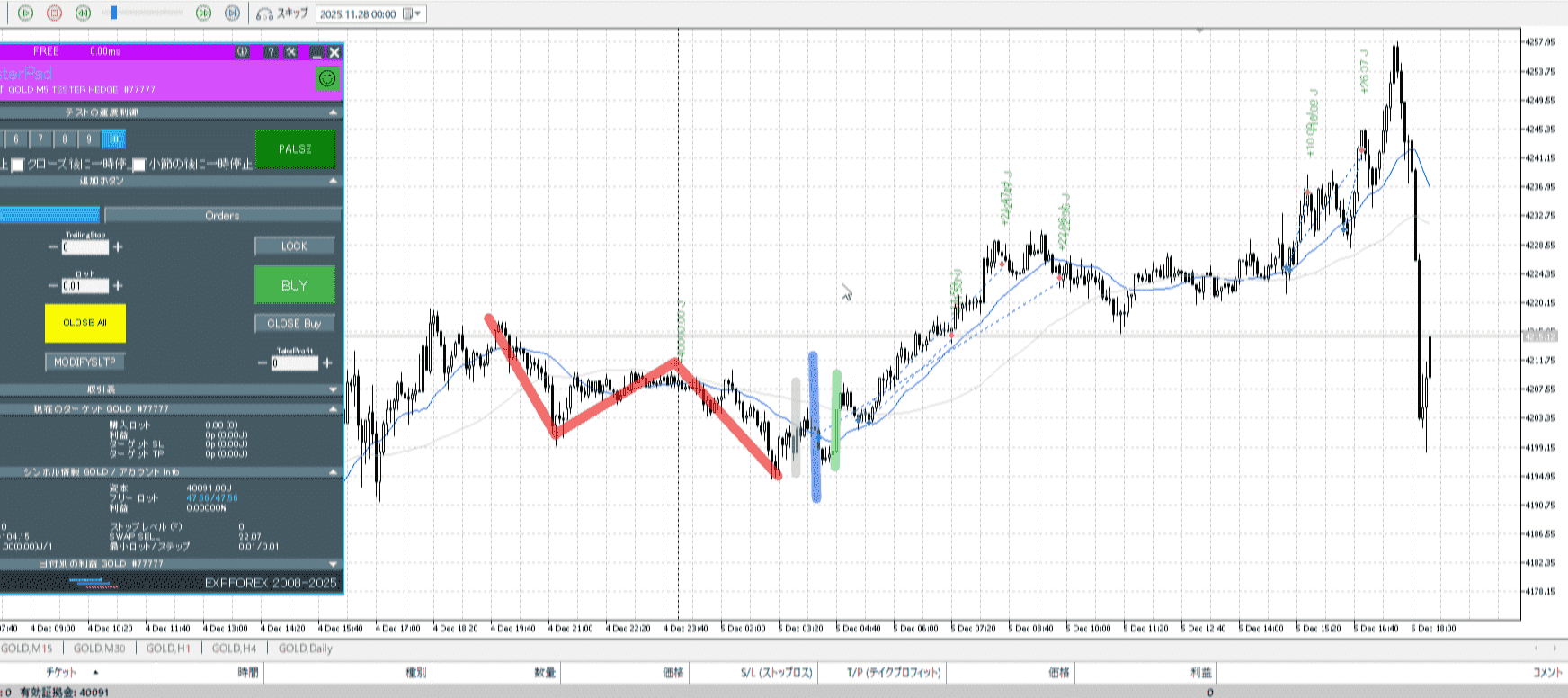 青線が二回目押し。買いは包み足時点でもう決めてる。