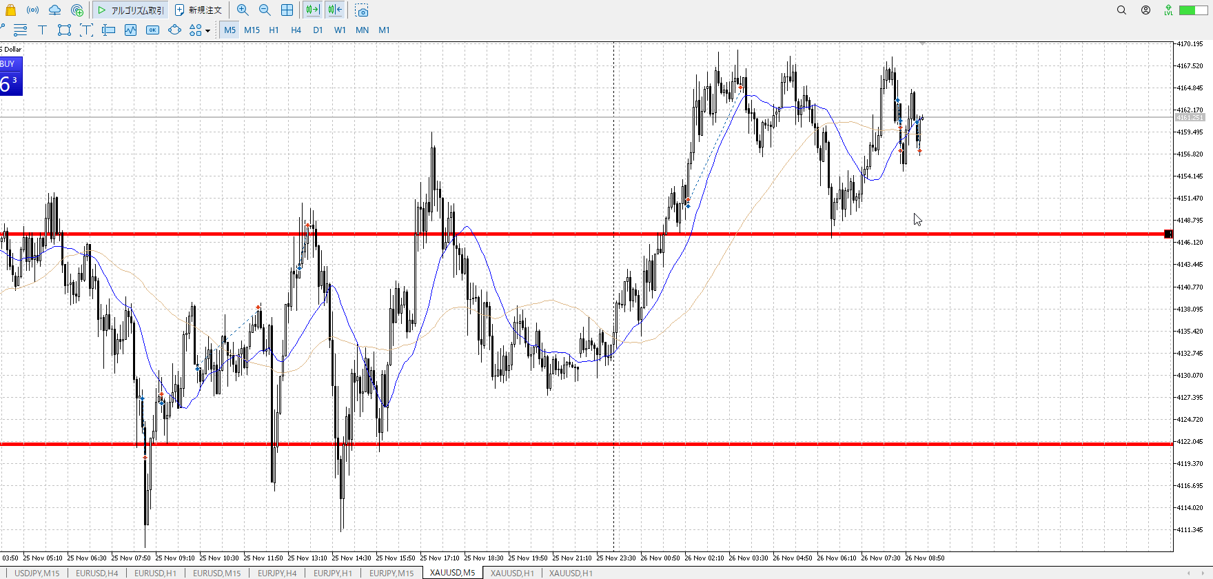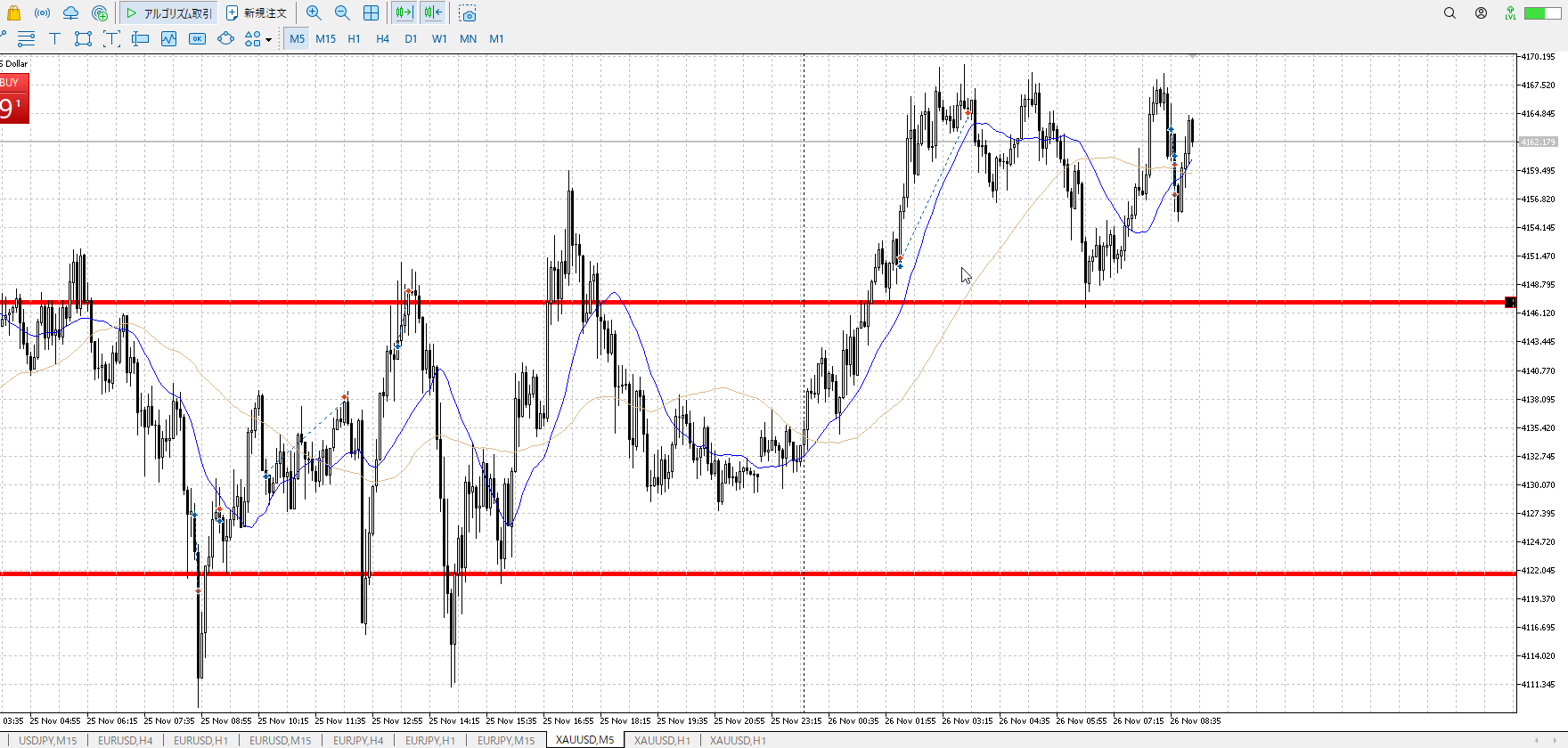 利確位置は押し戻りと変わらない、損切は状況で決めるので分からない