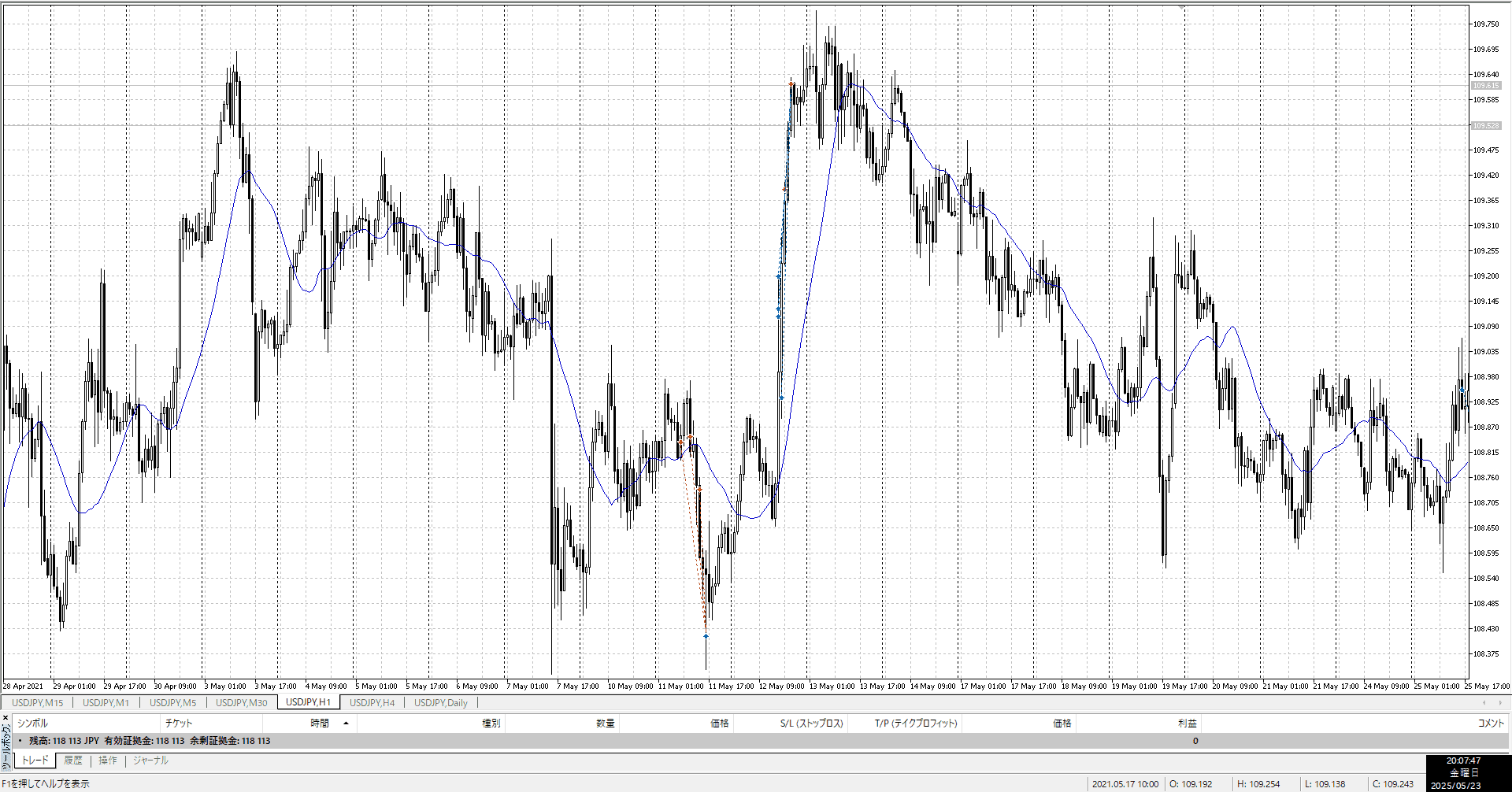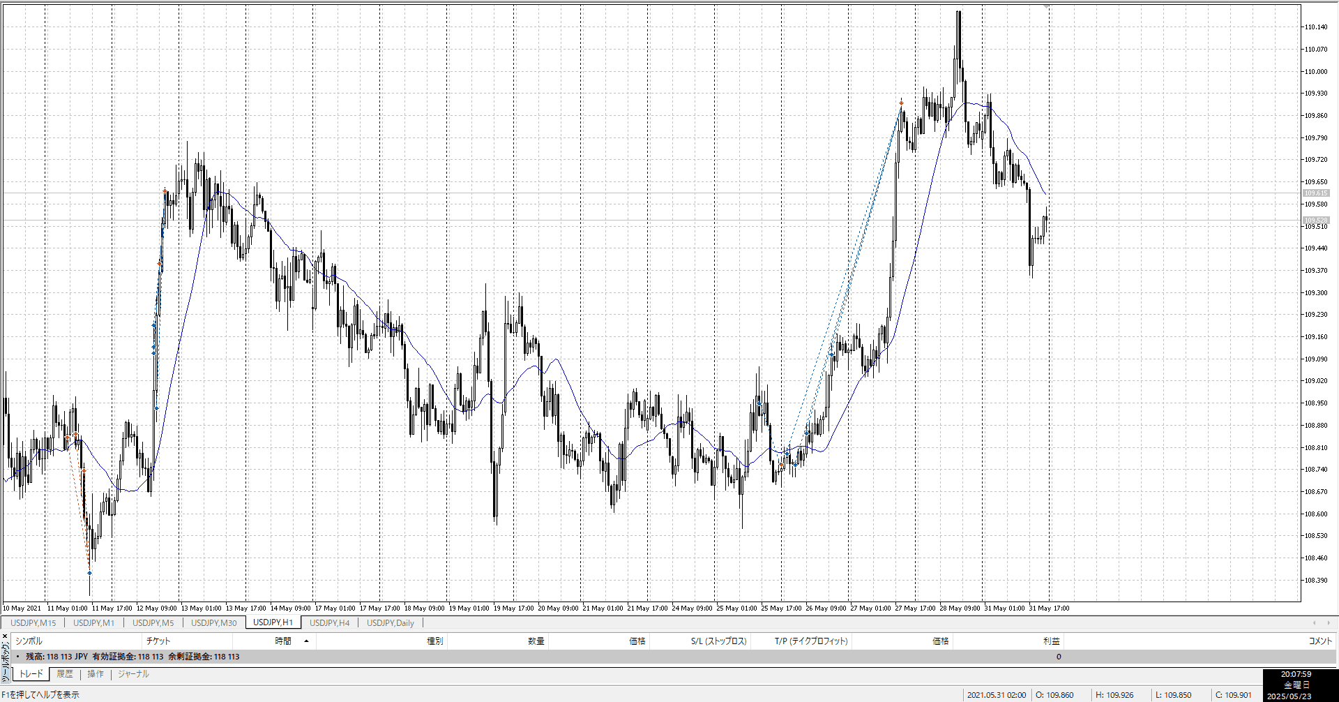 その後レンジになる、この中では買いは止め売りはしない新規無し
