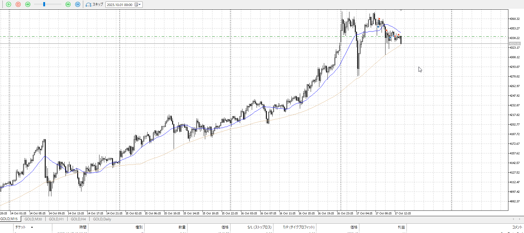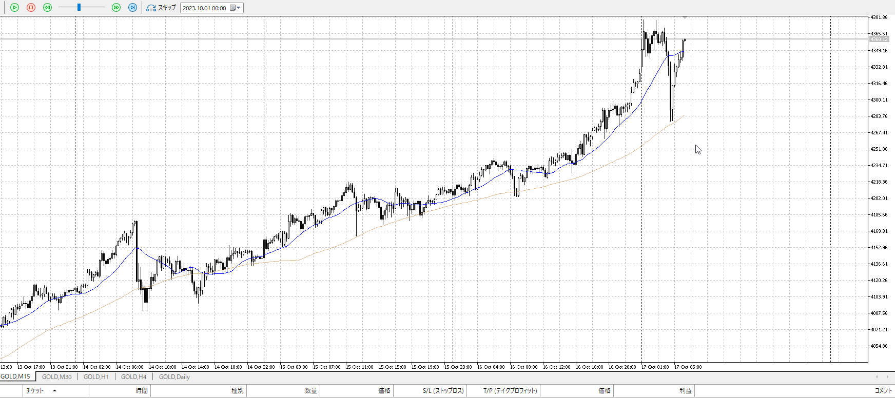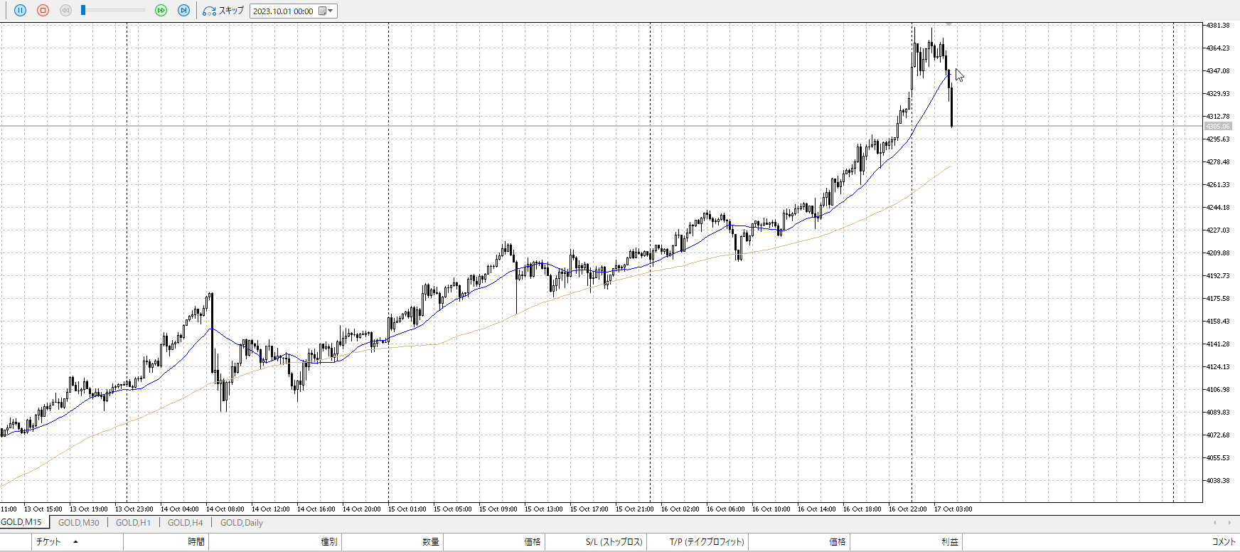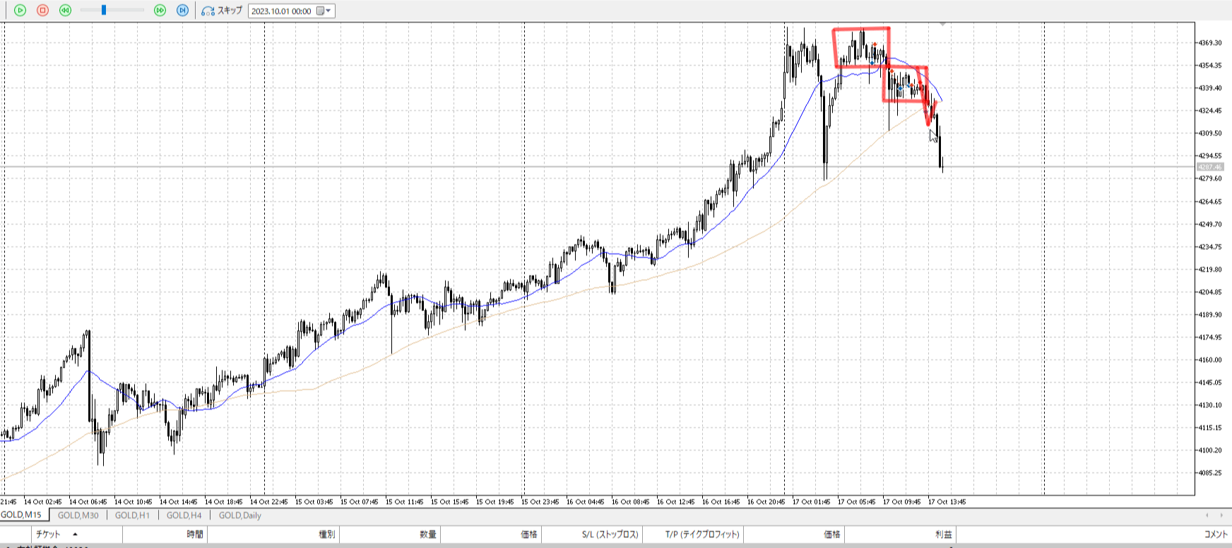 再度15m。反転を否定されたので売りたいところ。