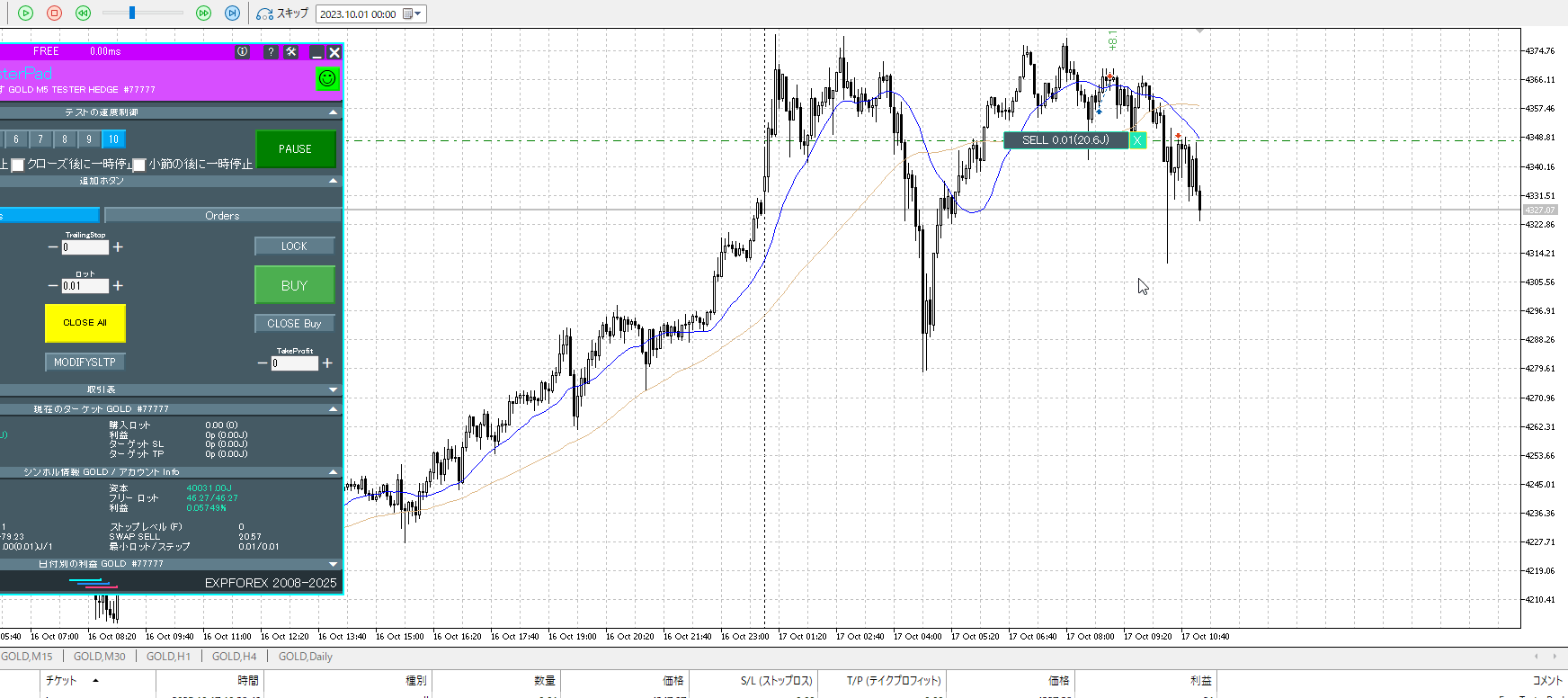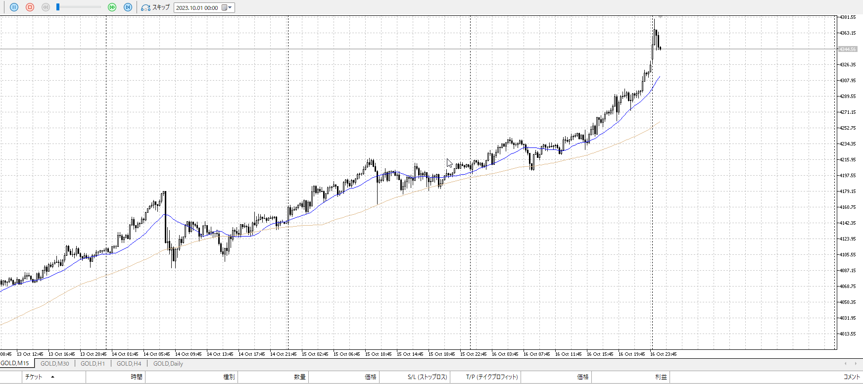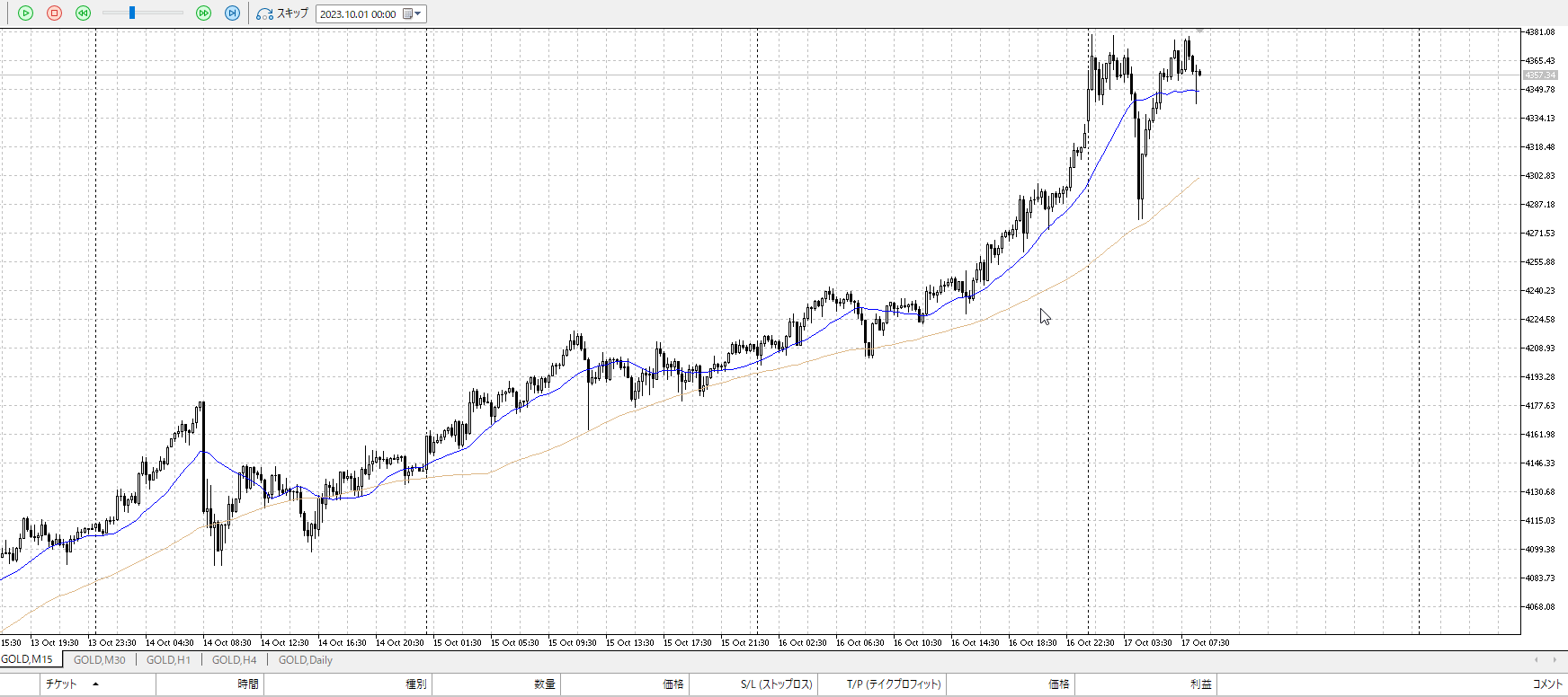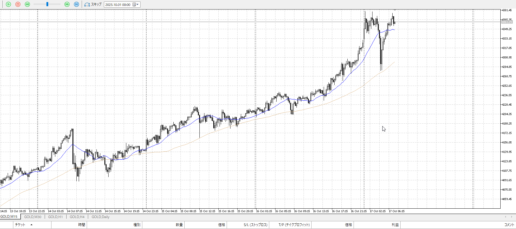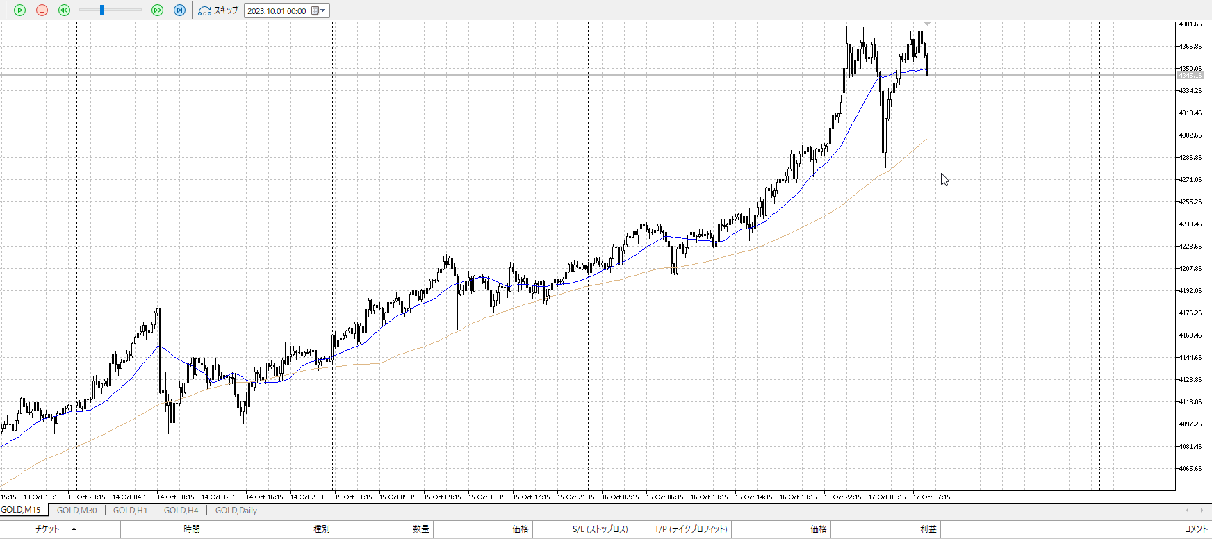 再度15m。反転を否定されたので売りたいところ。