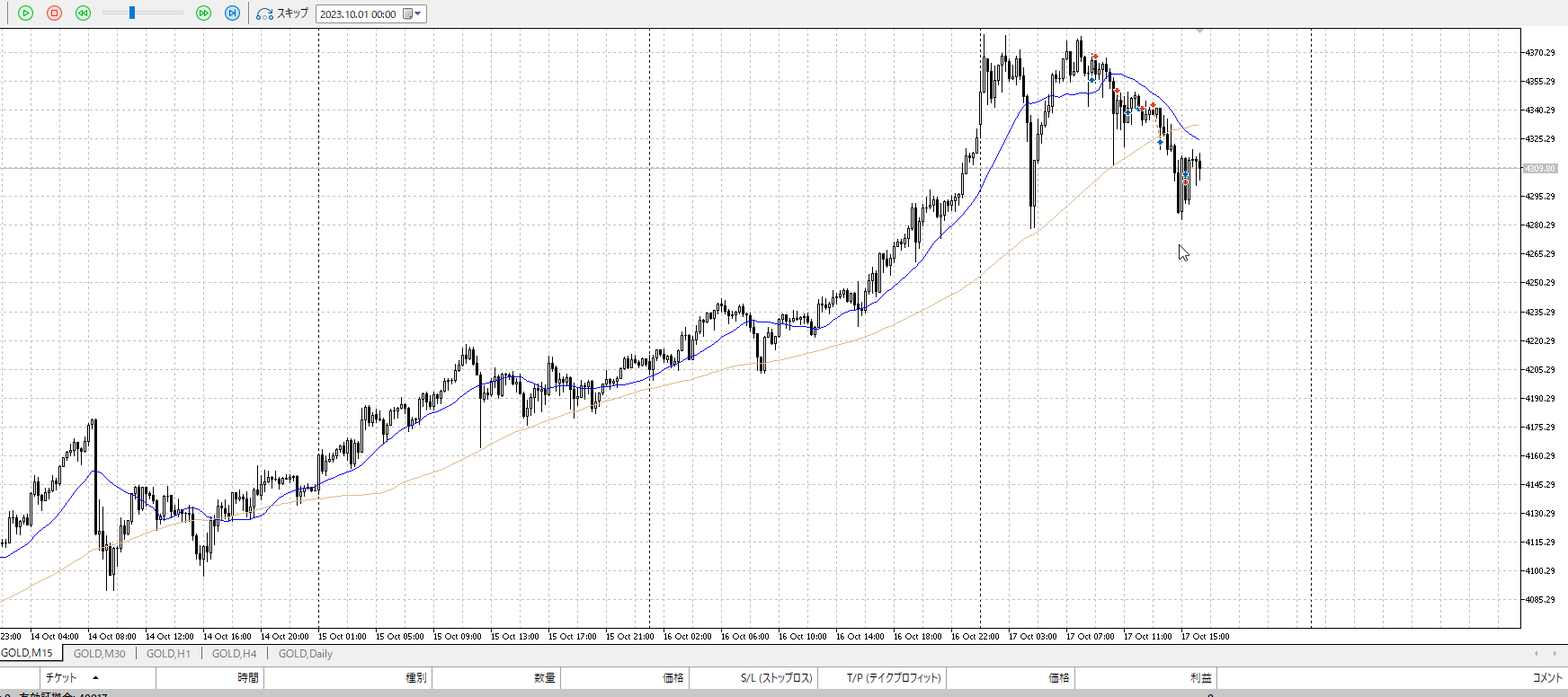 利確が難しい。かなり早めの戻り。