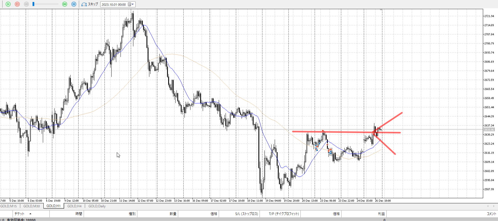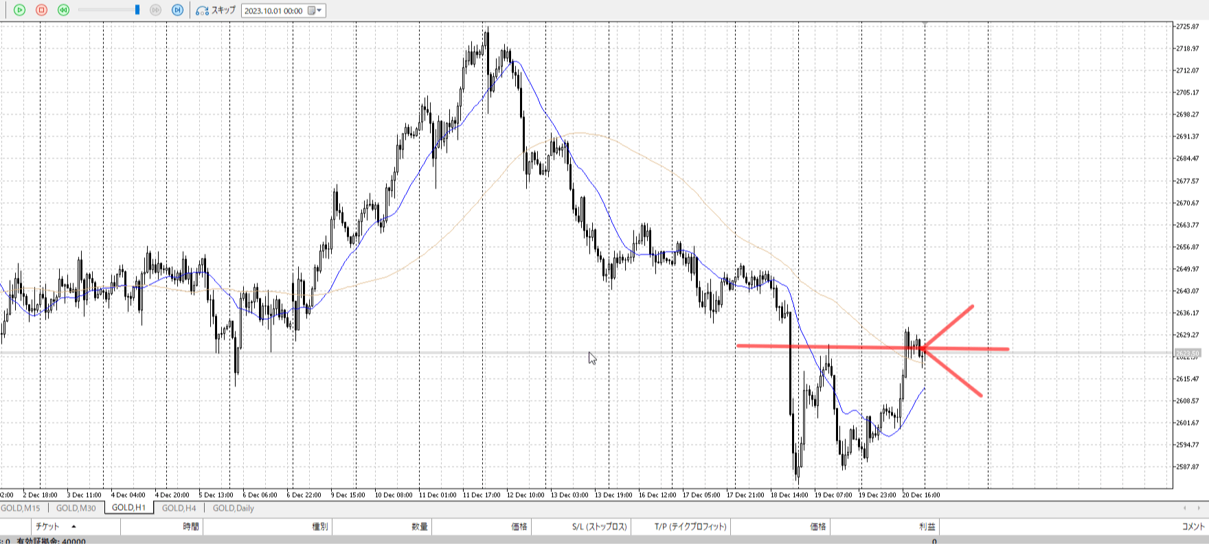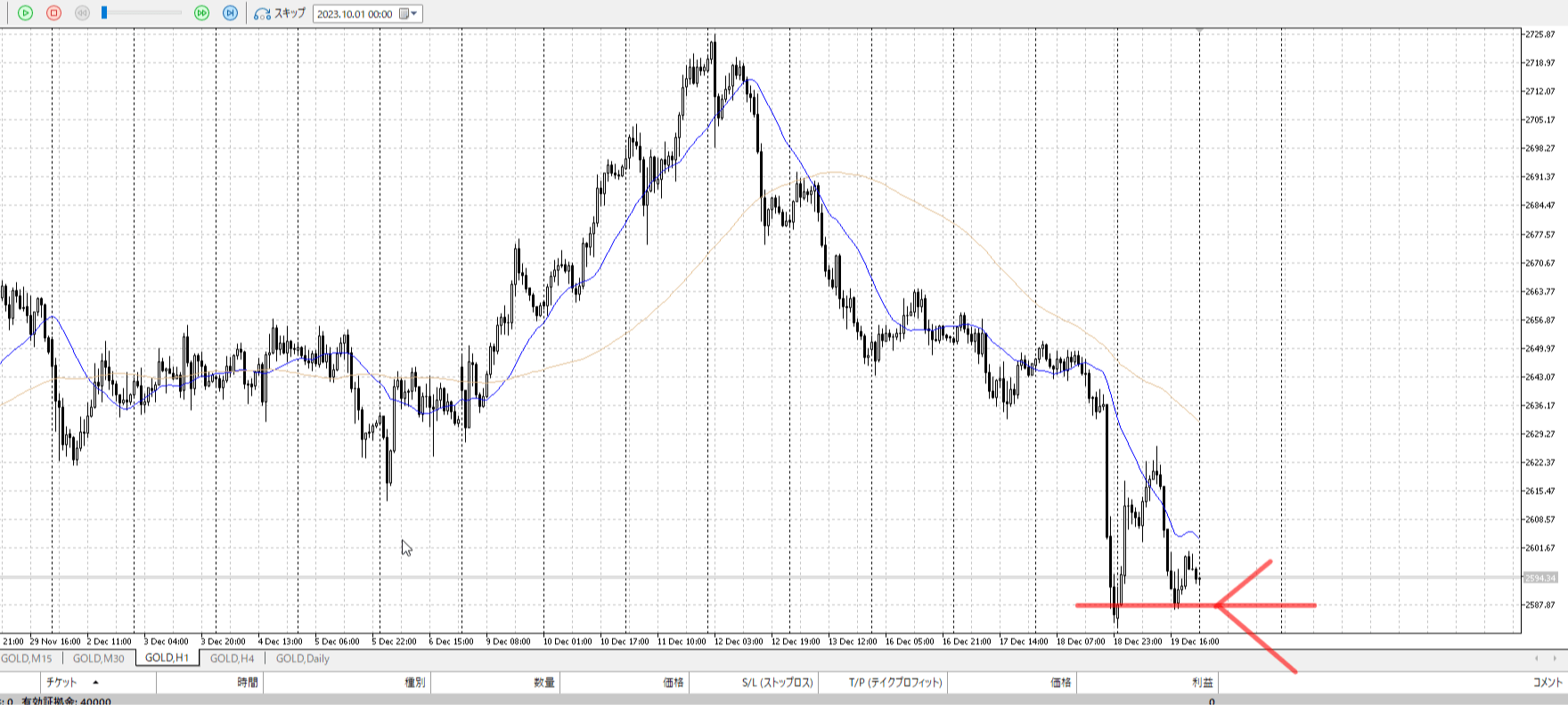 目線では売りたい、なのでシナリオも下割を考える