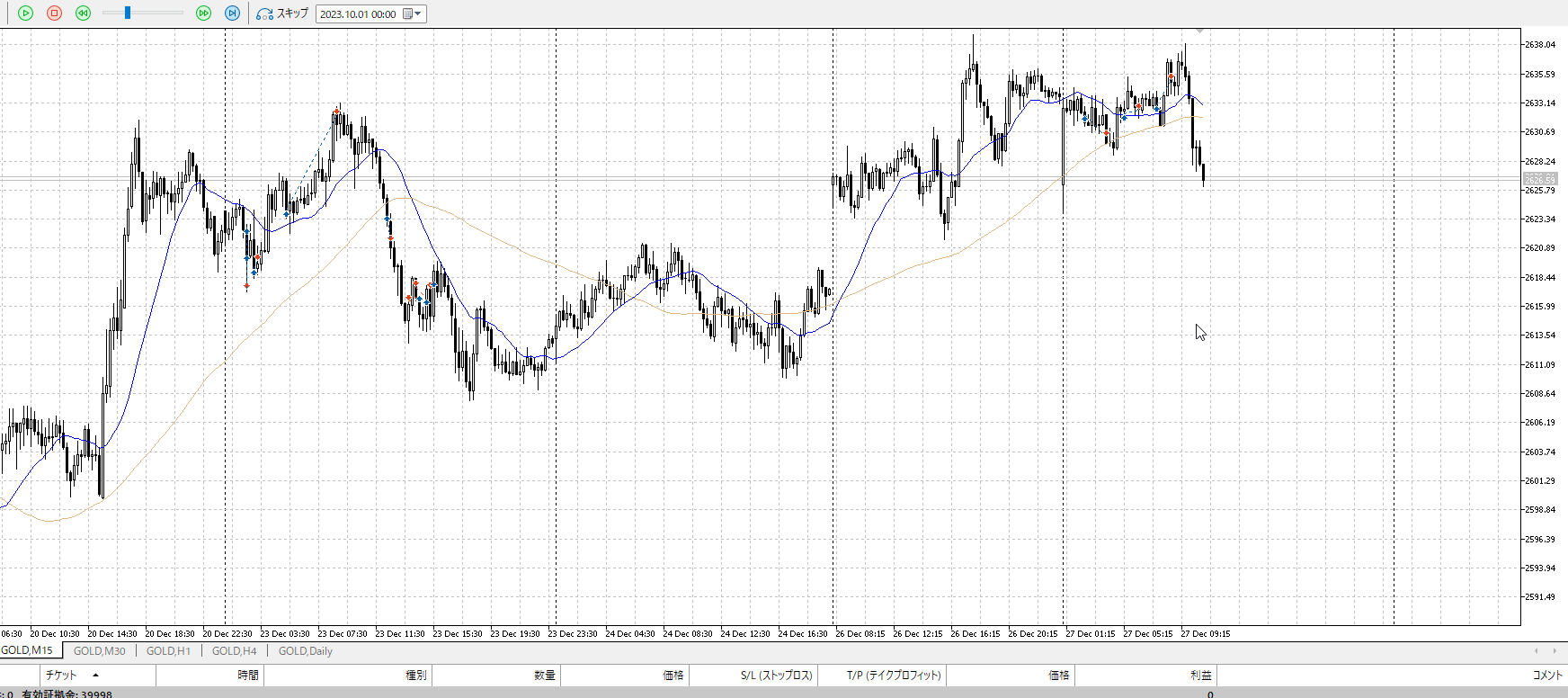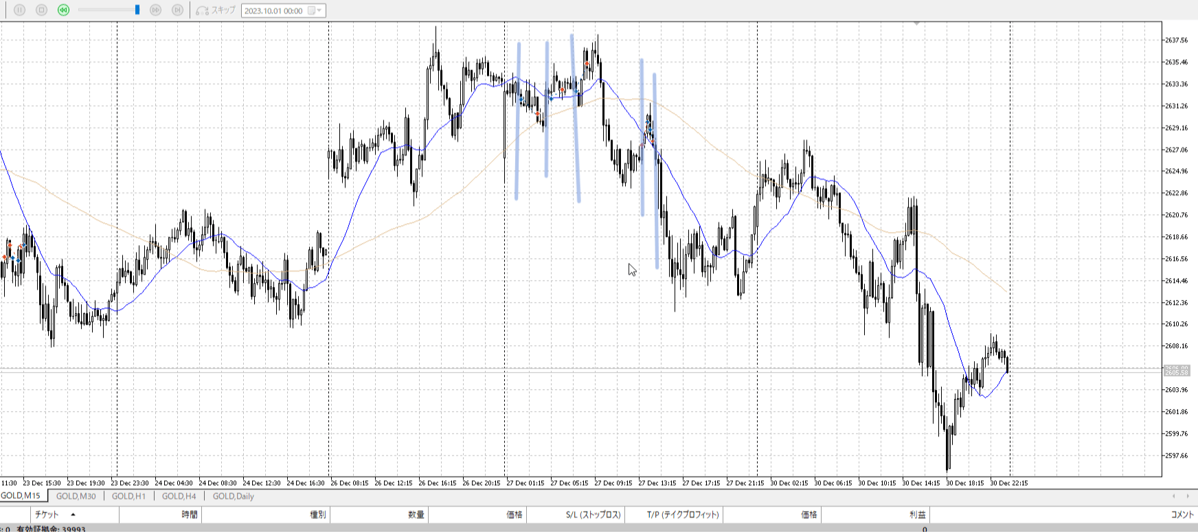 その勢いで上がったにしては上がらずに二回目短期買い場へ入り抜け