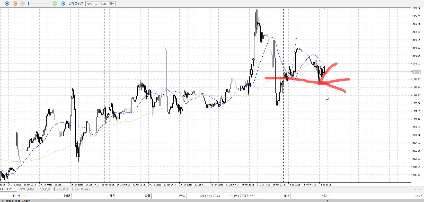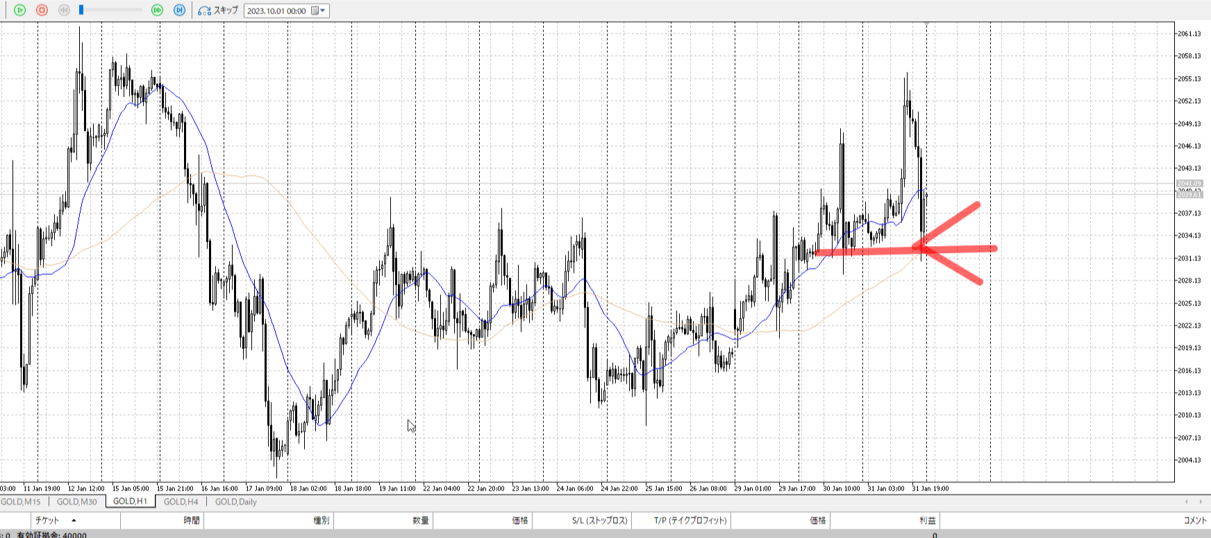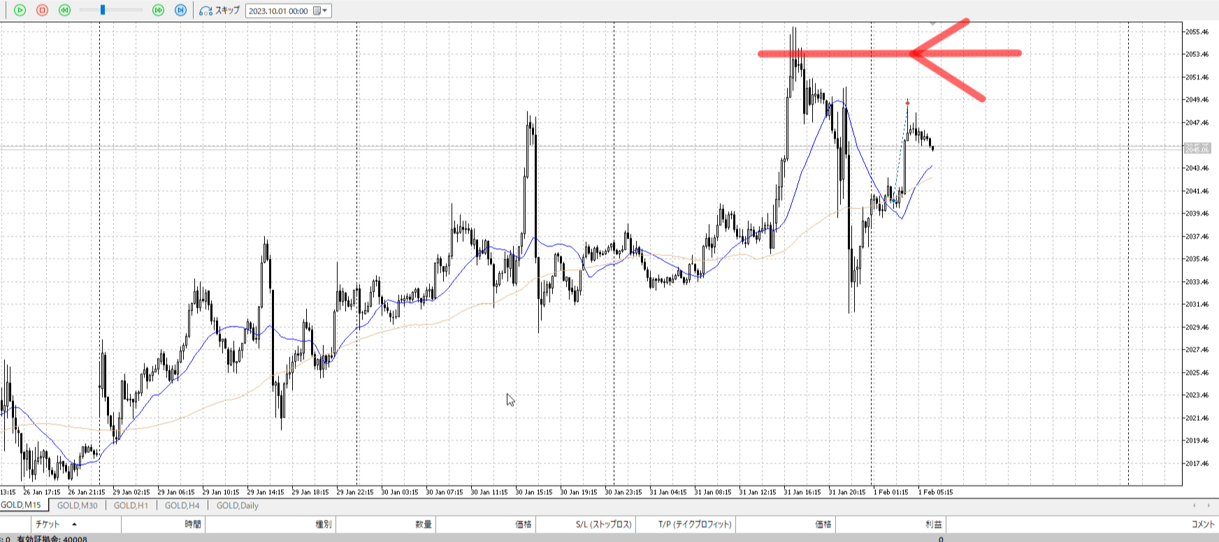 その次の小さい陰線で止めたほうが合理。