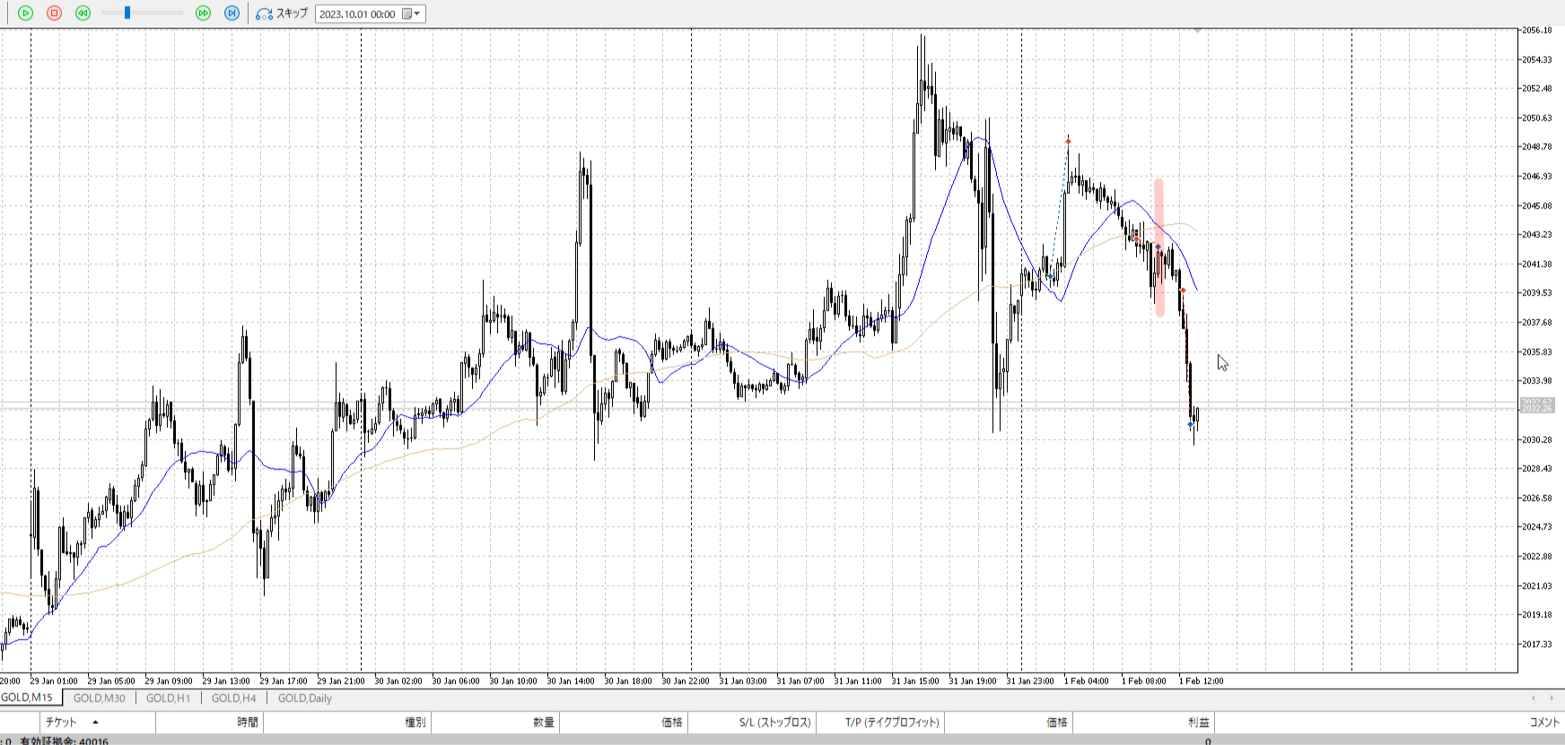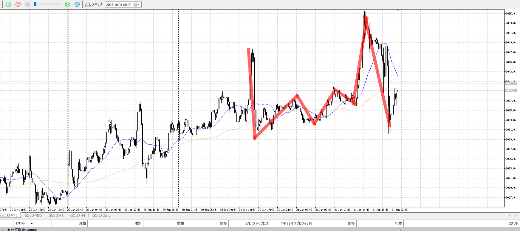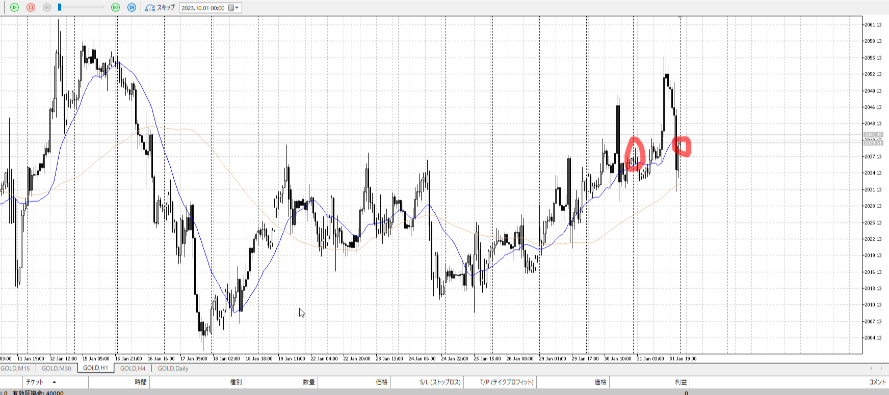 その次の小さい陰線で止めたほうが合理。