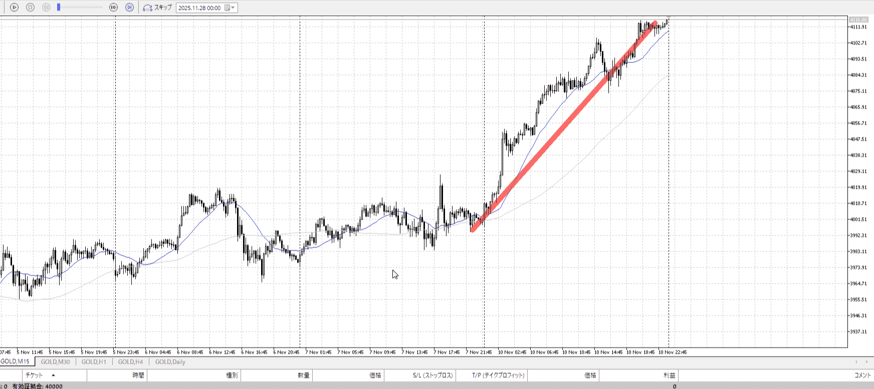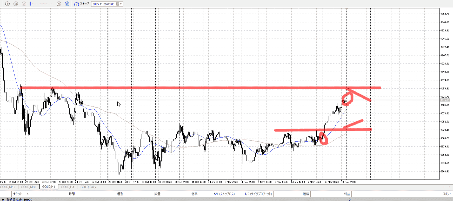 1hが追いつき、下に行き始め下で止まって、と実際買うのは結構後。