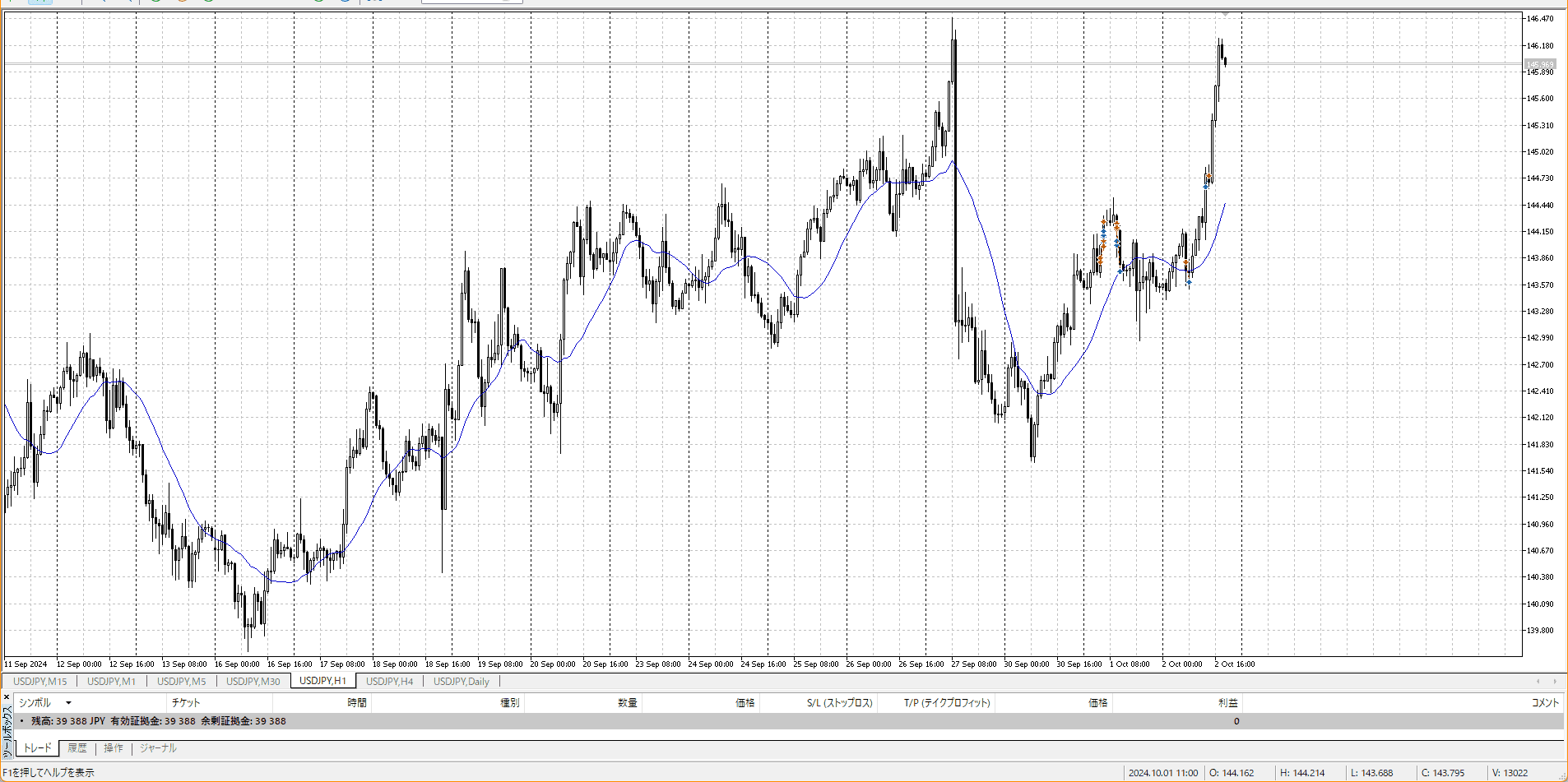 1hも平均線の下に行ってないのでトレンドの一部