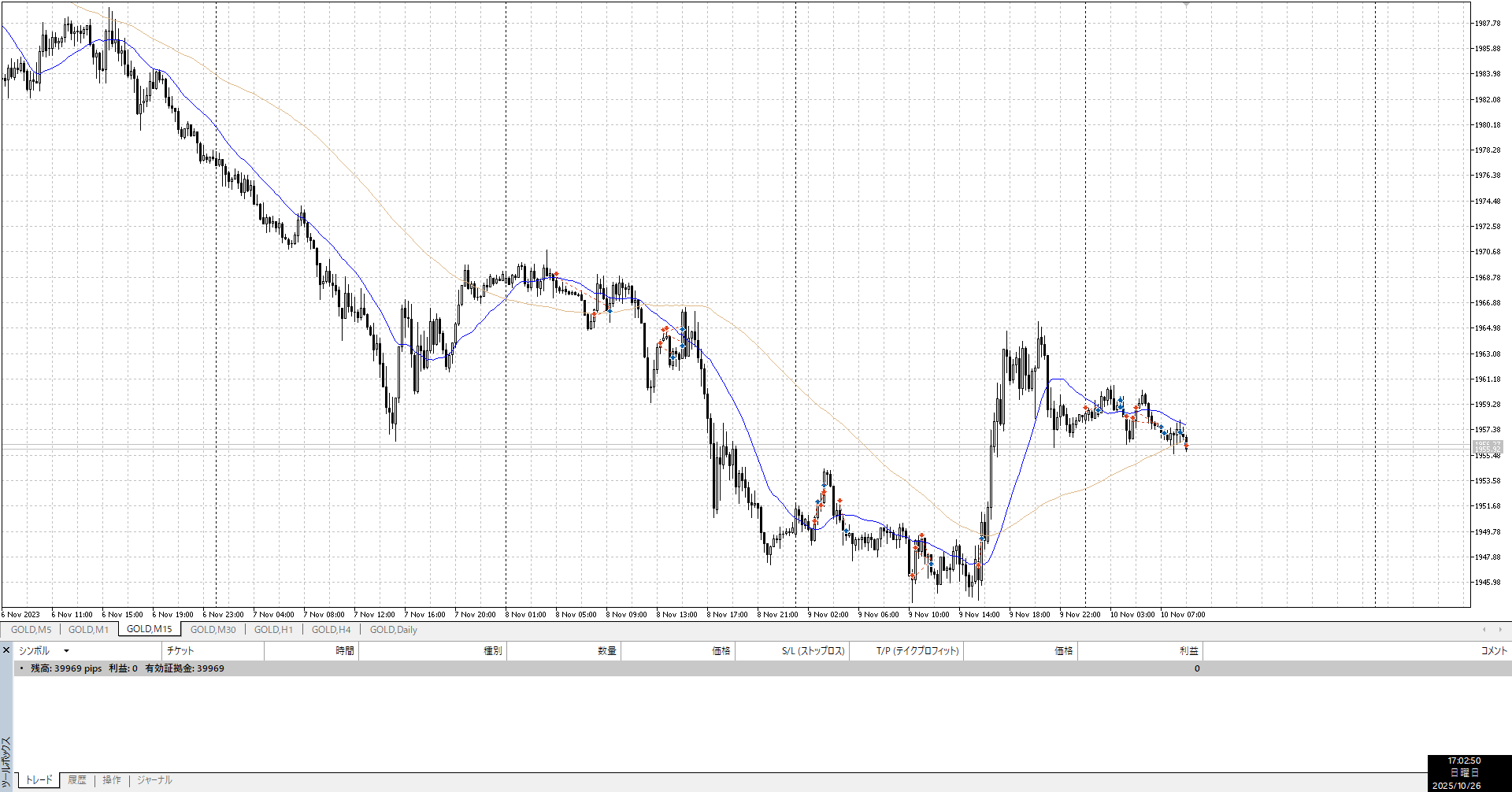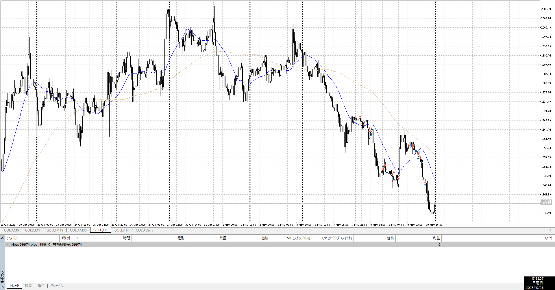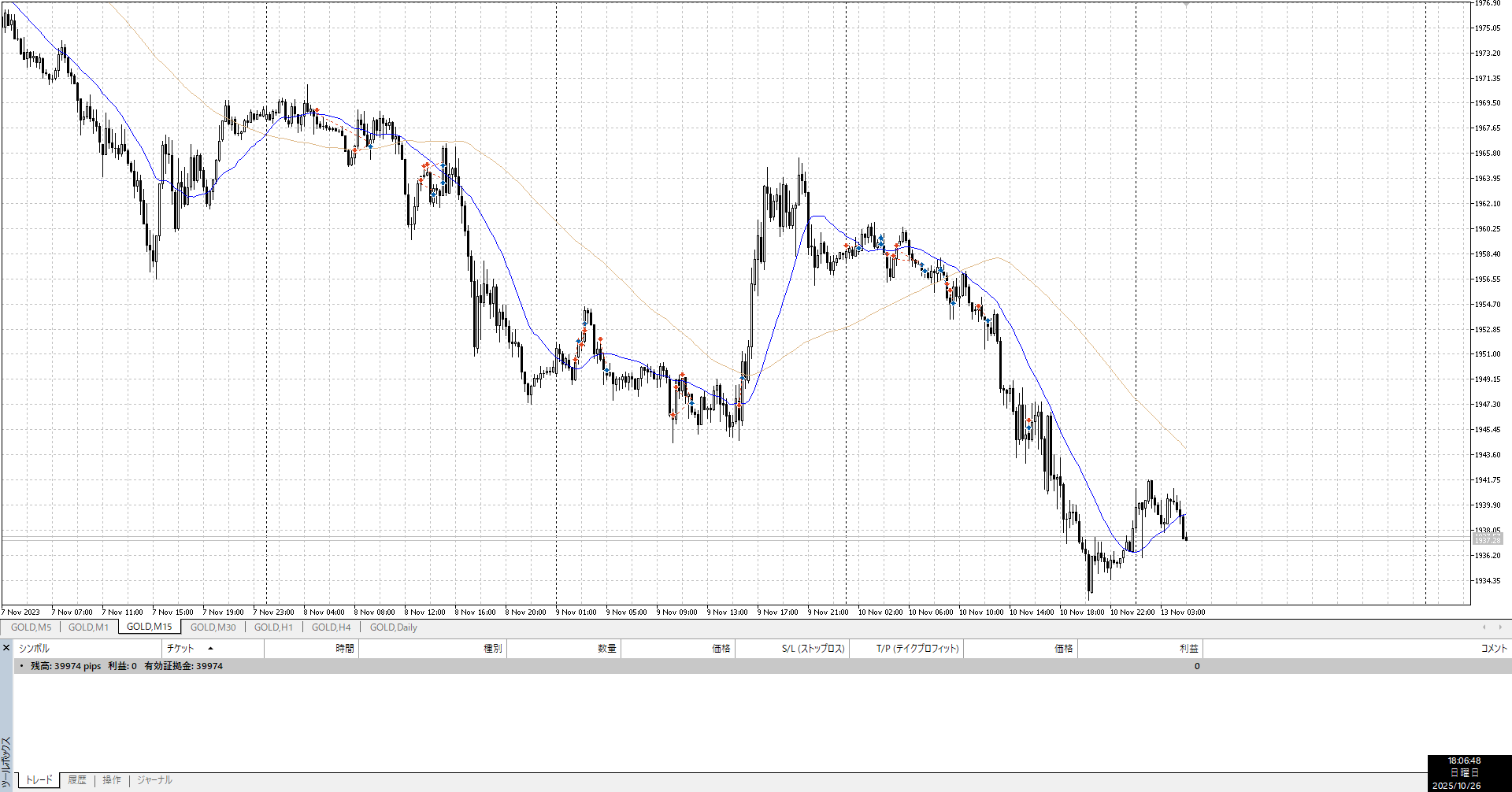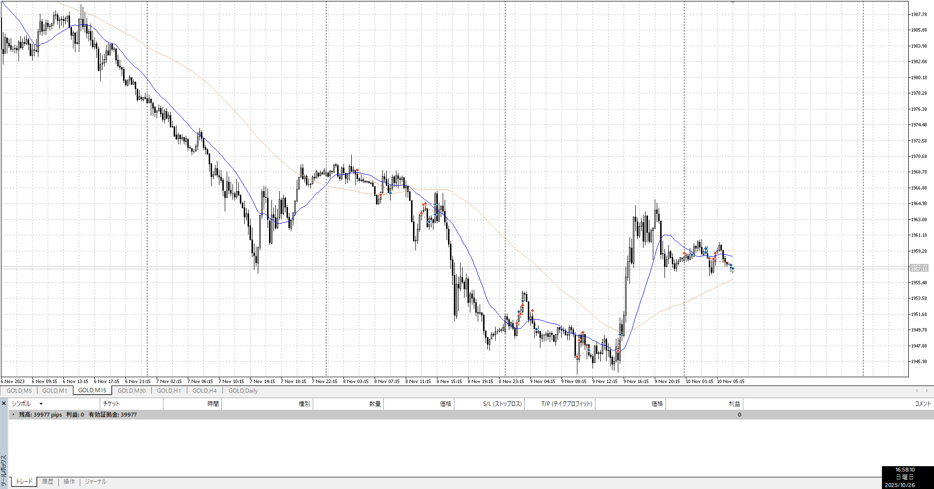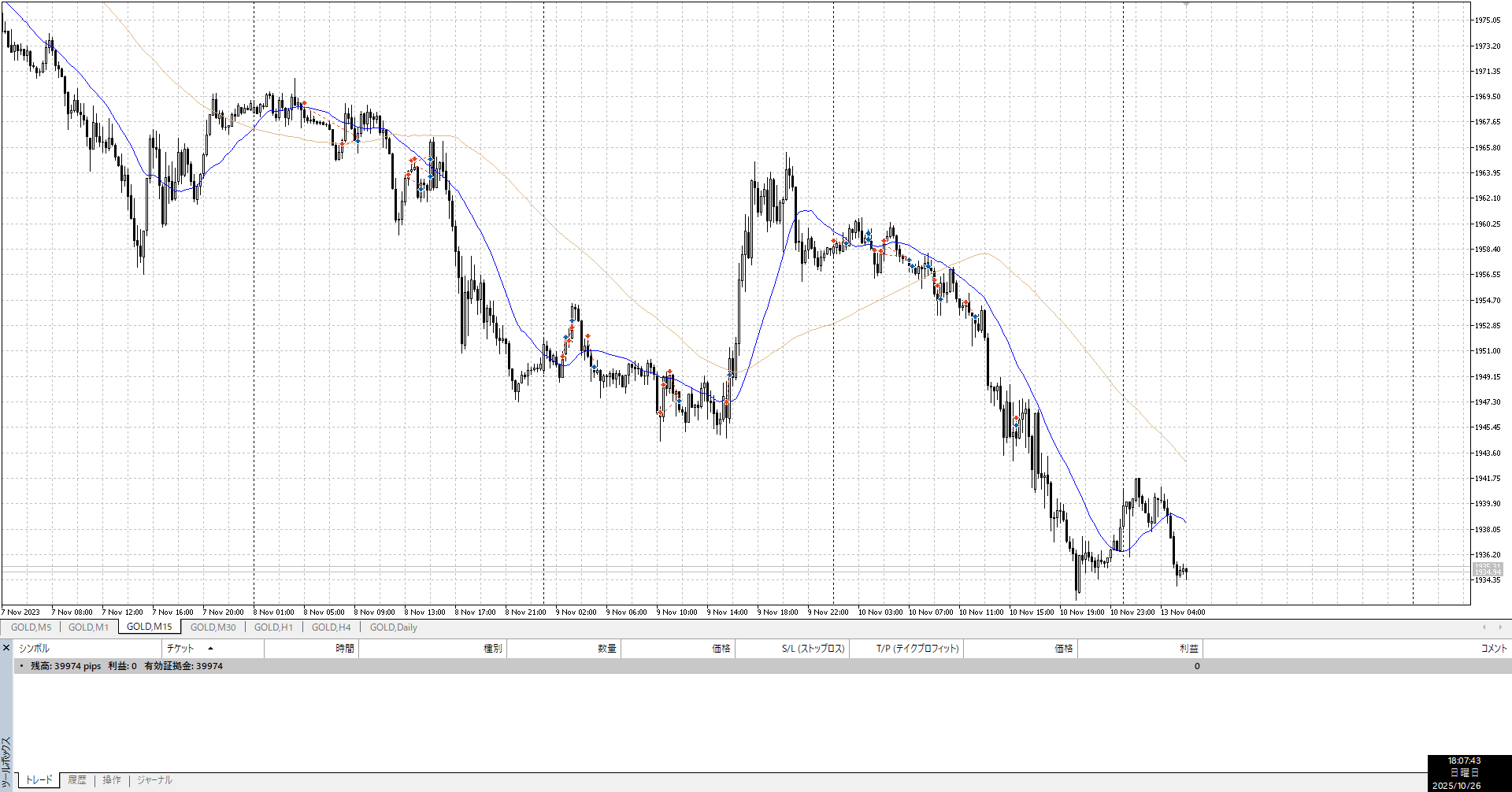 再度かいで入るも下へ。戻りを売りで入るが、そもそも下で止められたなら小さくレンジが成立すると考える。