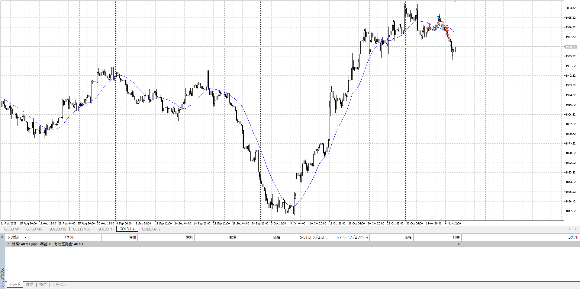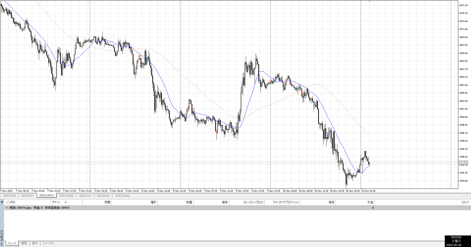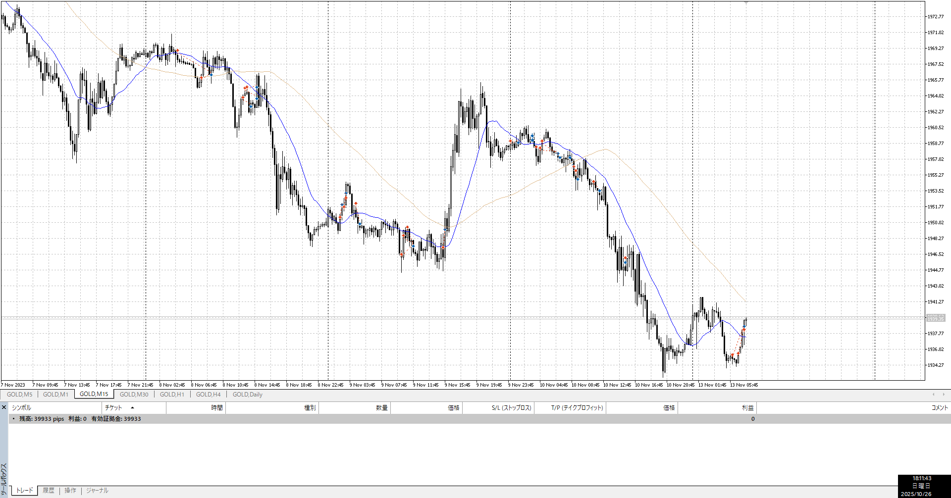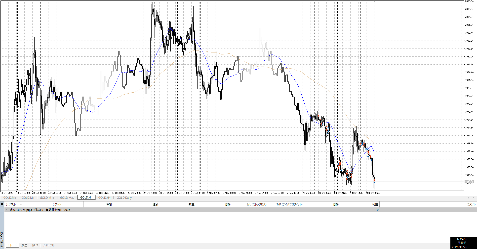 再度かいで入るも下へ。戻りを売りで入るが、そもそも下で止められたなら小さくレンジが成立すると考える。