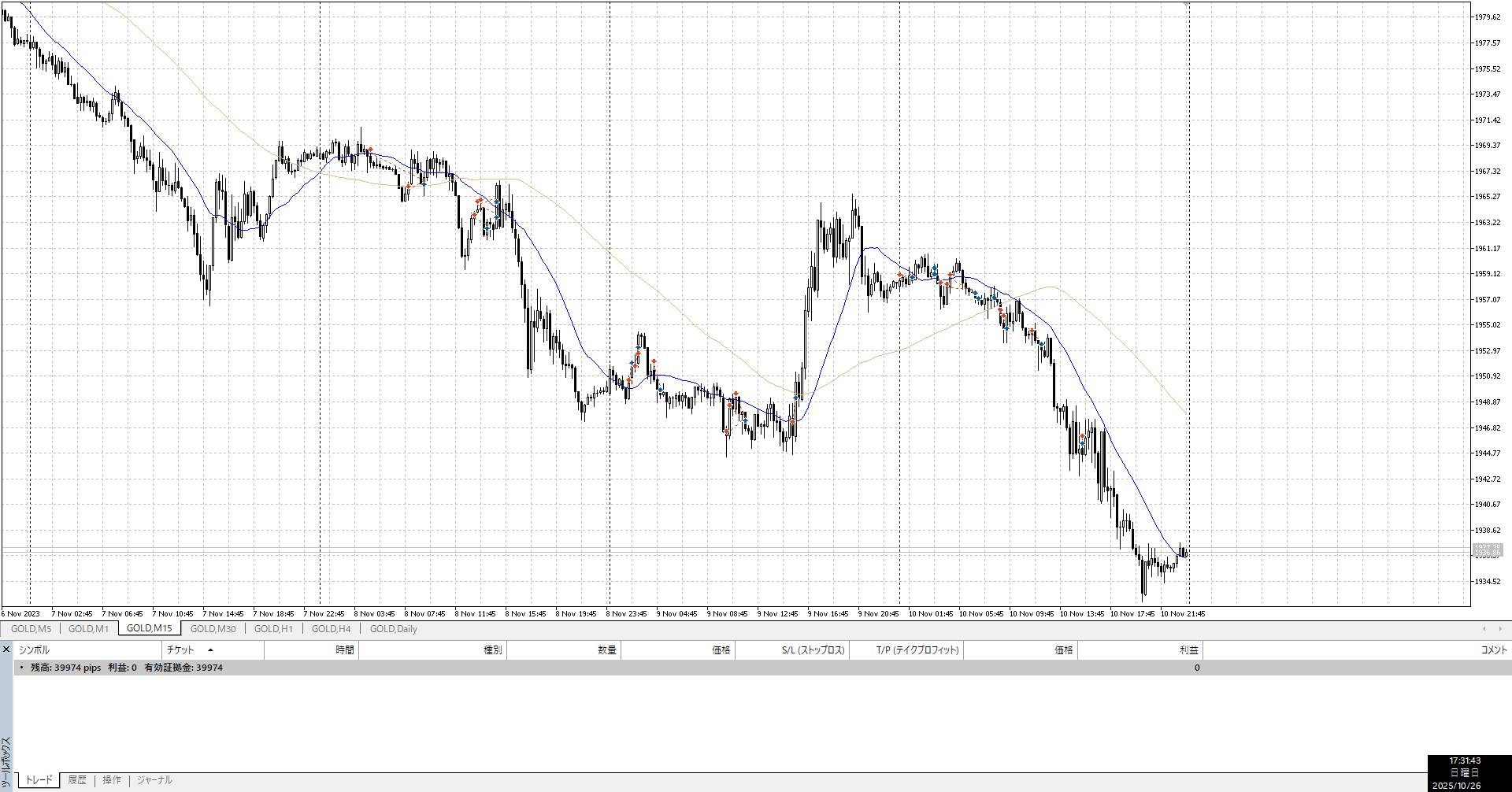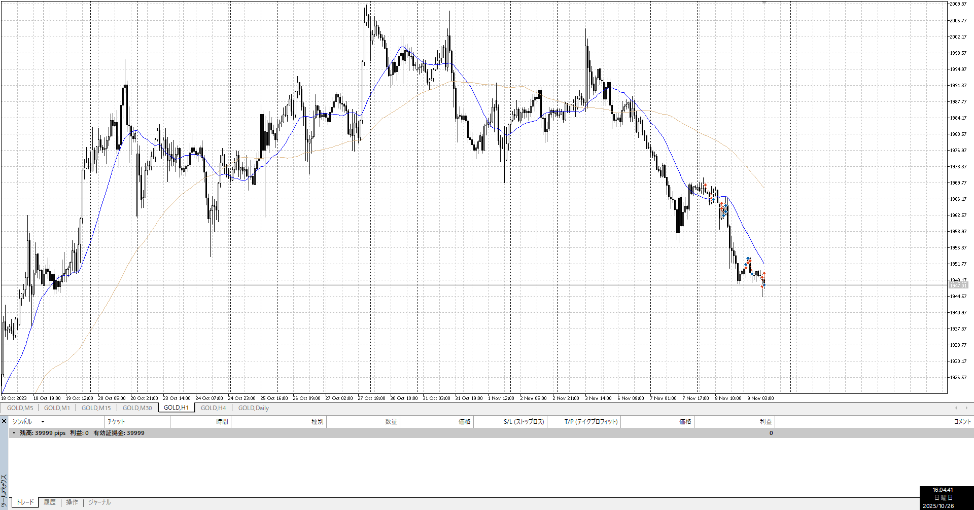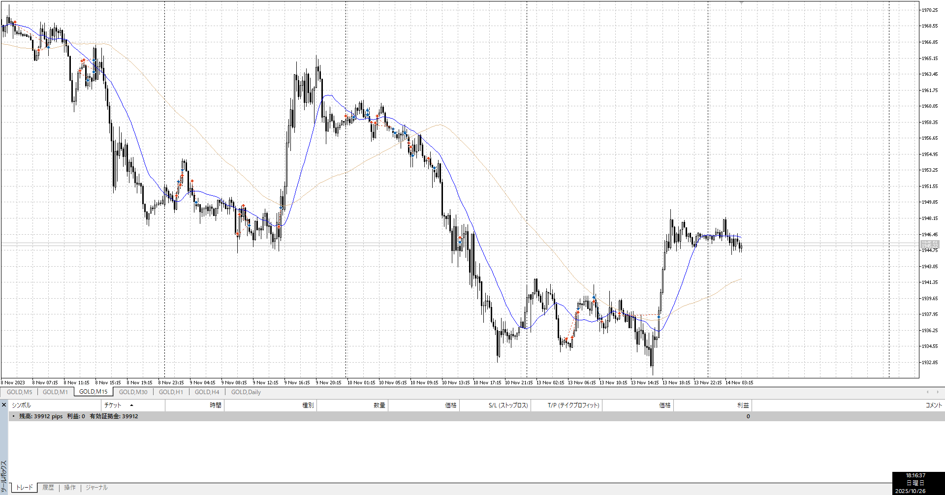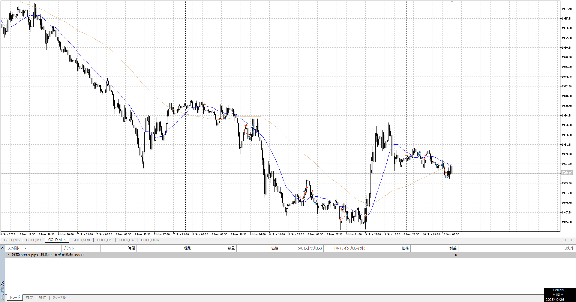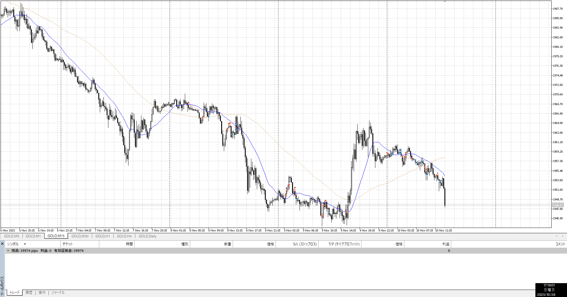 再度かいで入るも下へ。戻りを売りで入るが、そもそも下で止められたなら小さくレンジが成立すると考える。