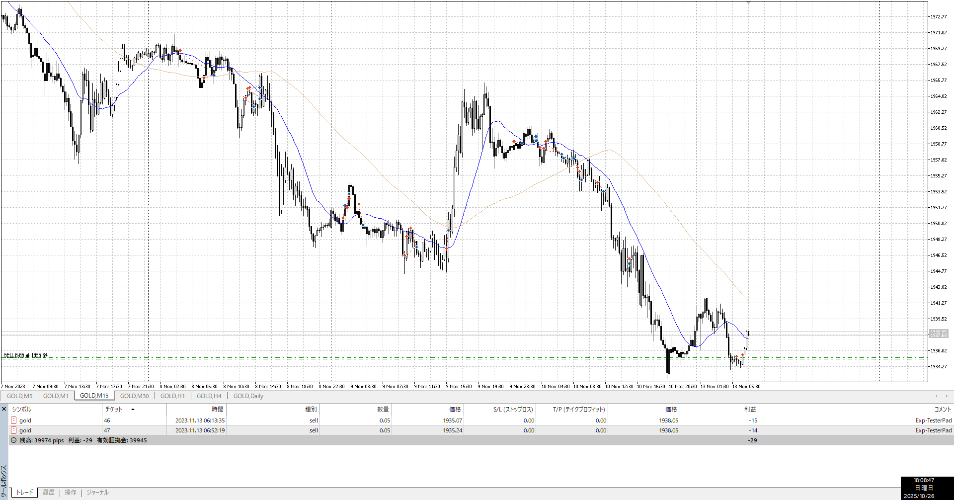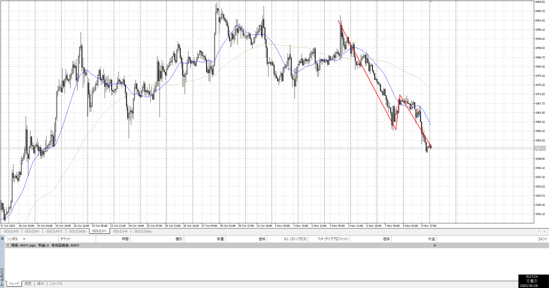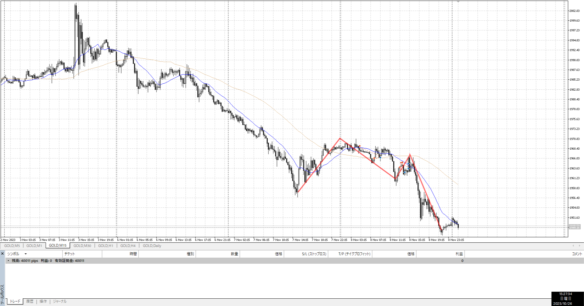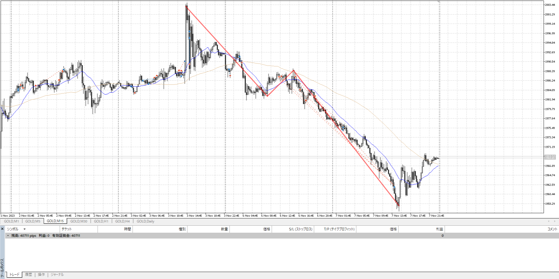 その場所で売れたうえで、15m1hAサポの戻り売りを確信して見てれば完璧だった