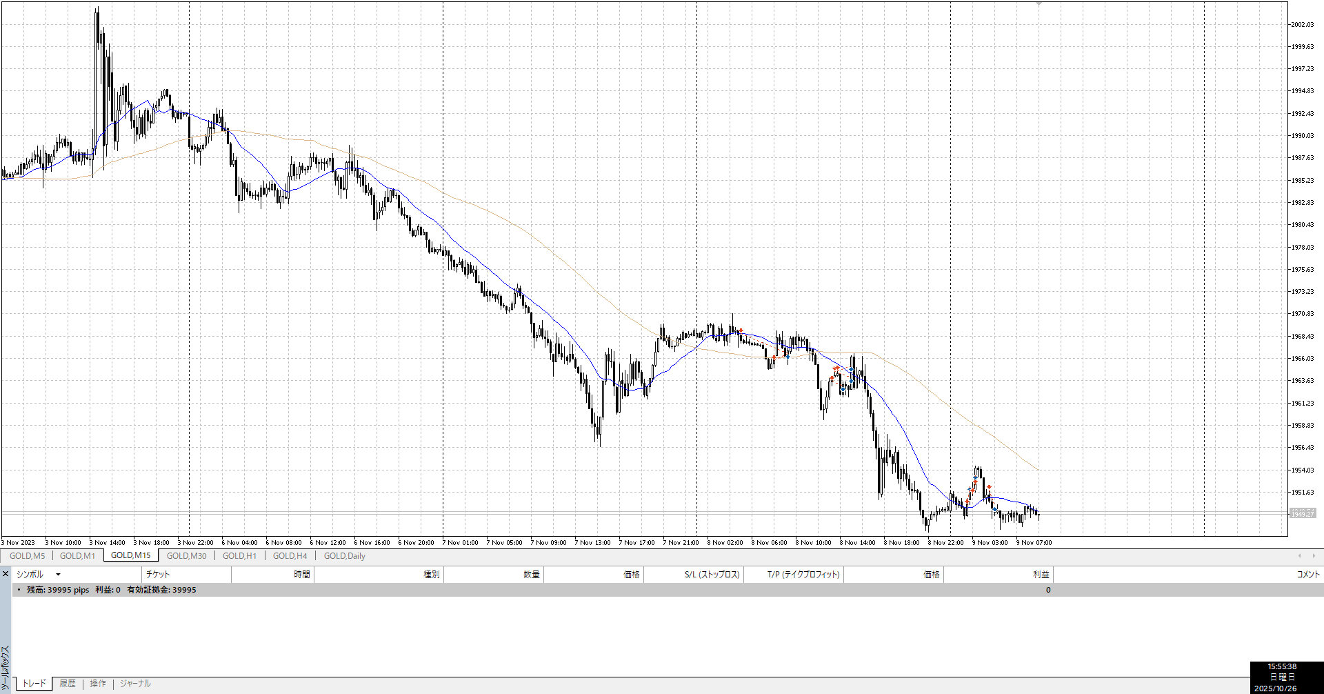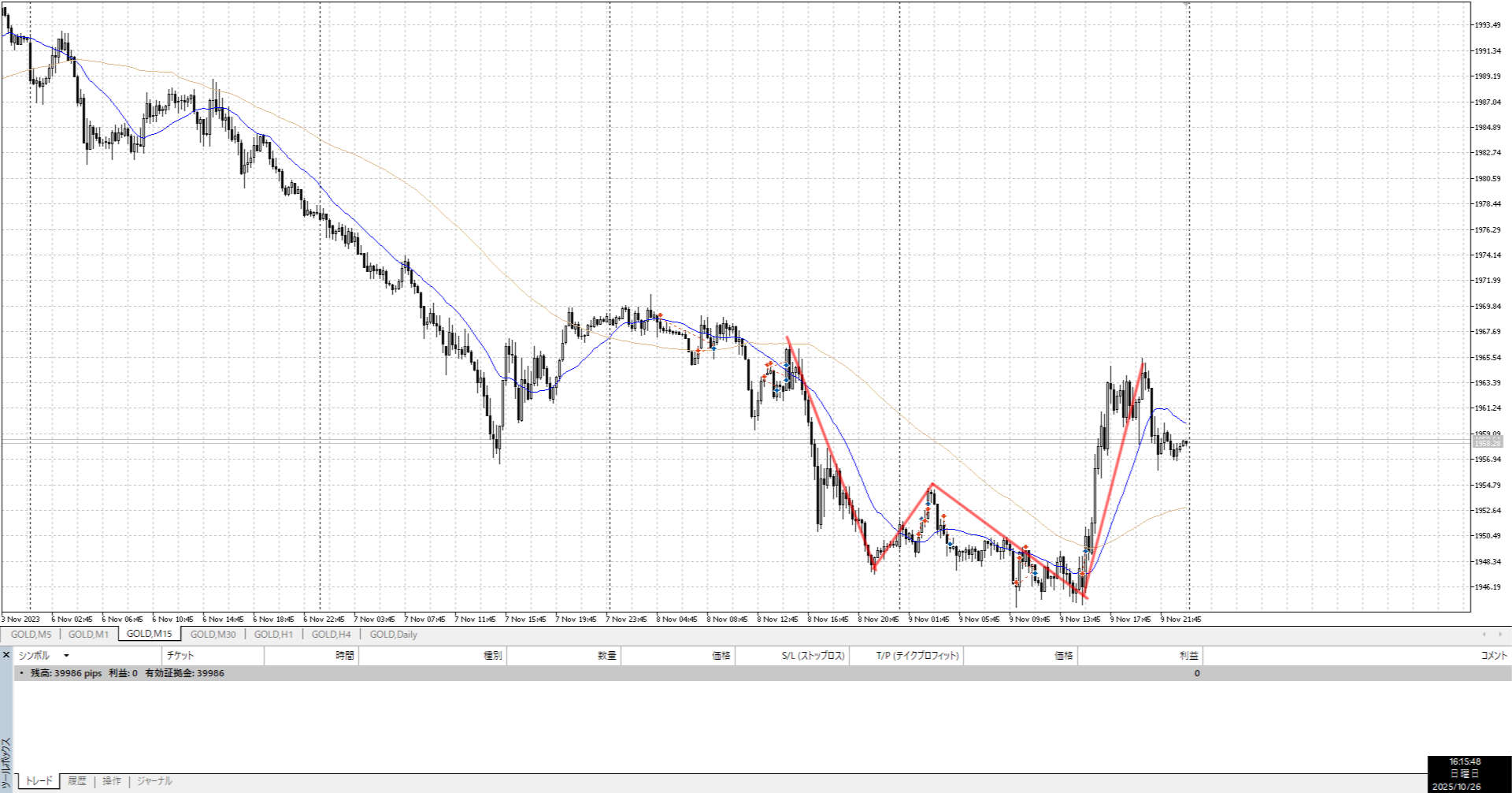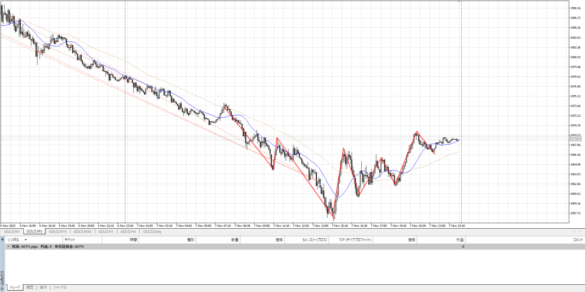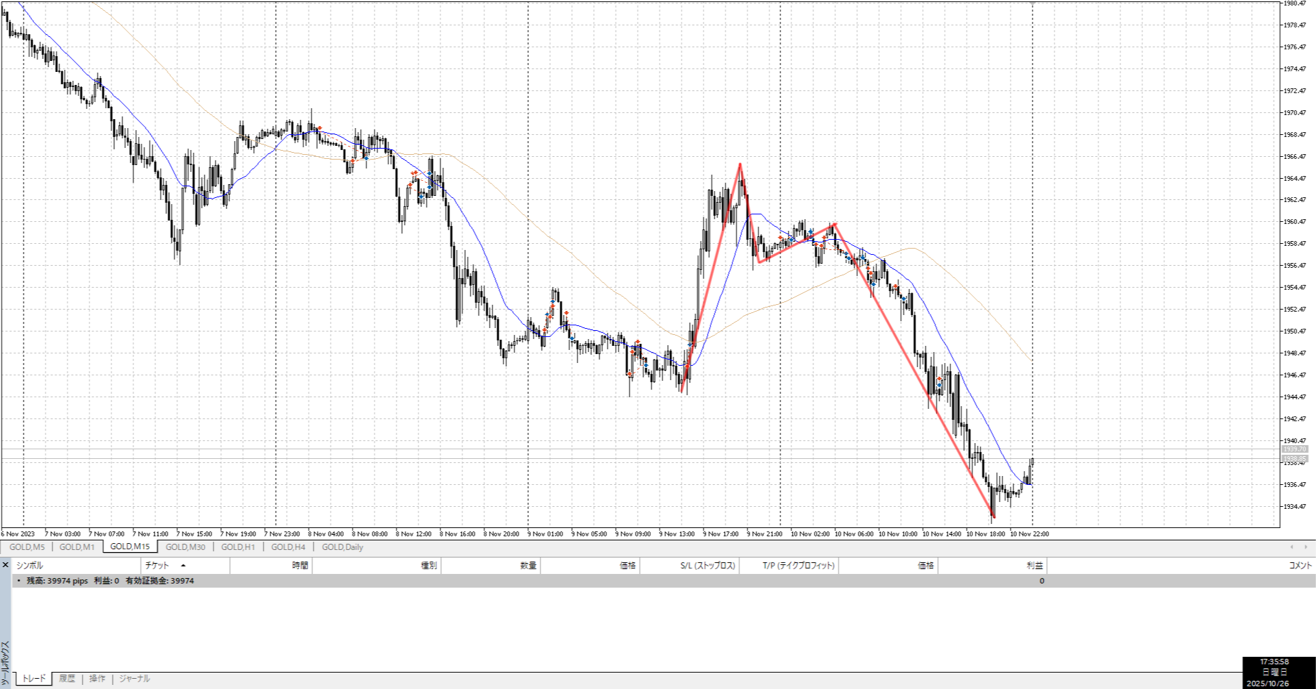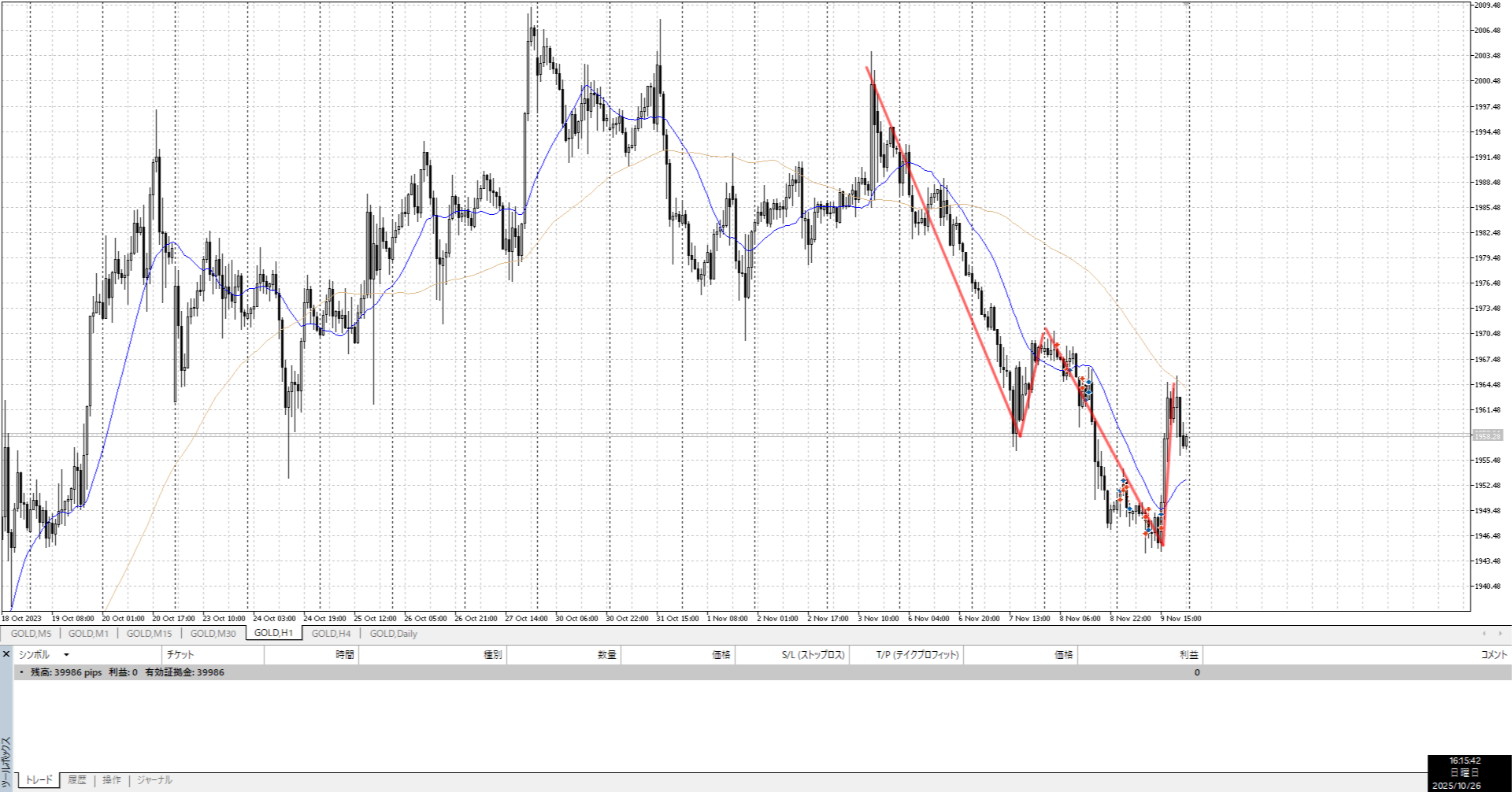その場所で売れたうえで、15m1hAサポの戻り売りを確信して見てれば完璧だった