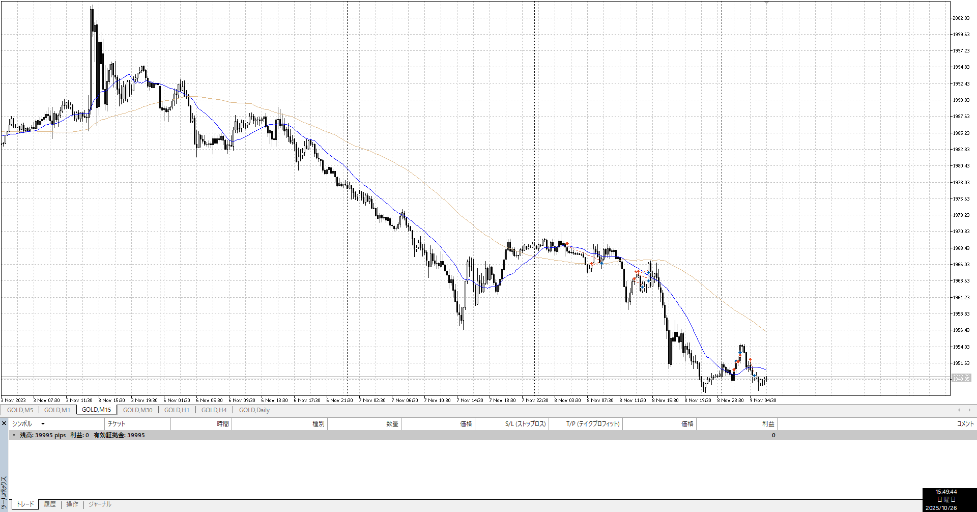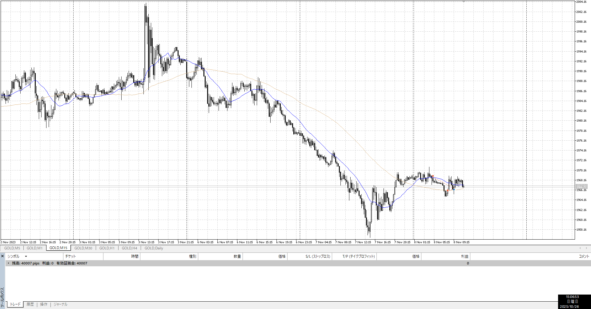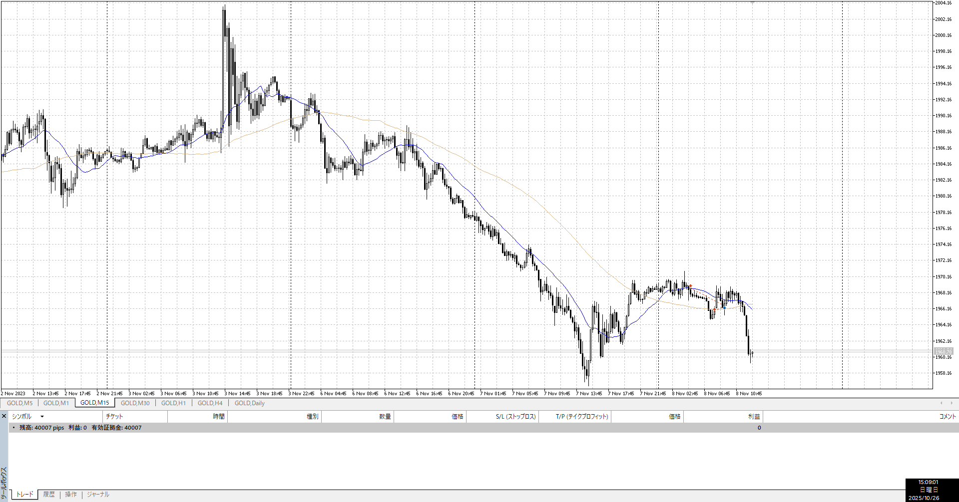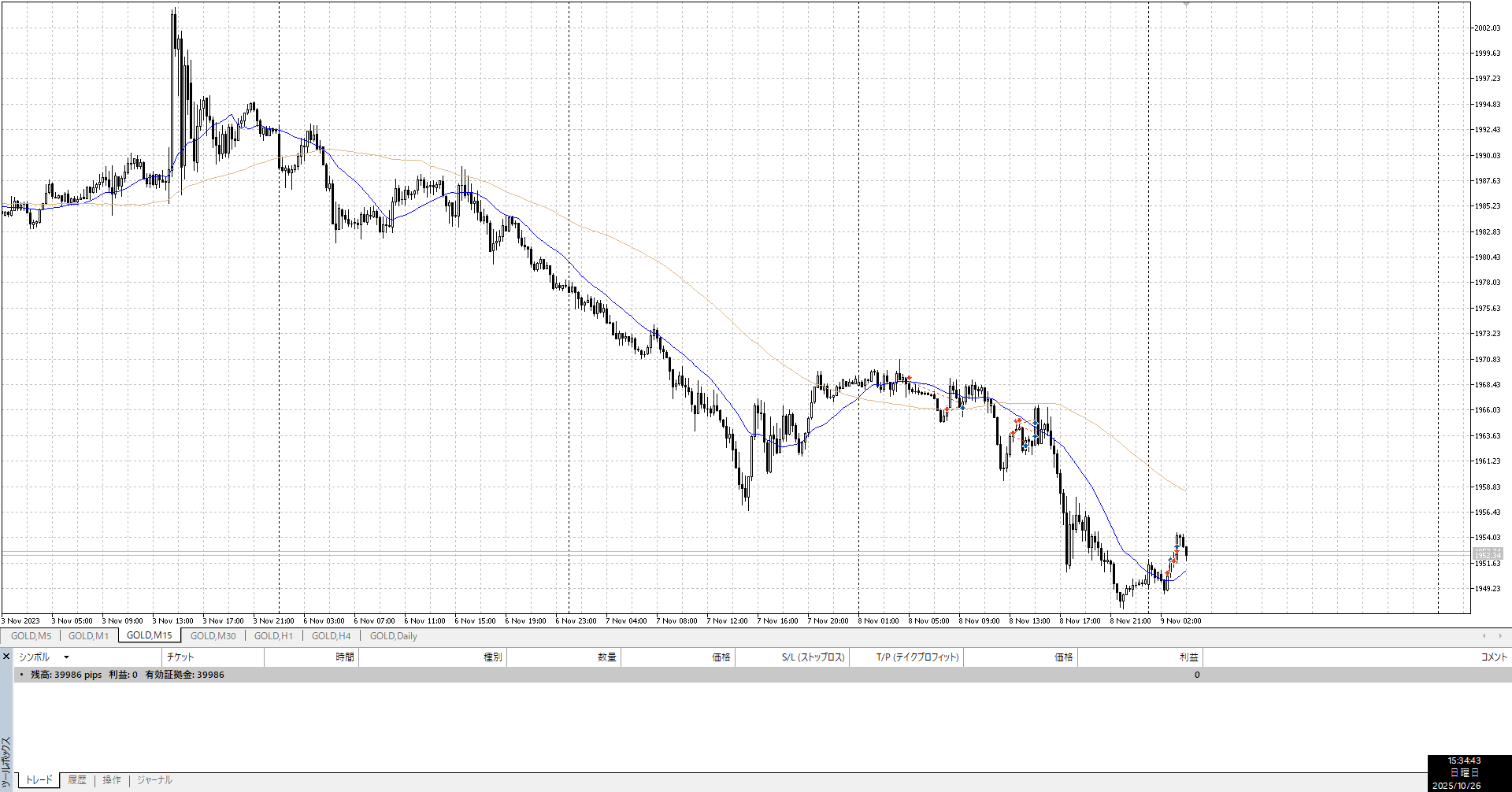 15m下髭が出ている、このままネックを割っていったら一旦上