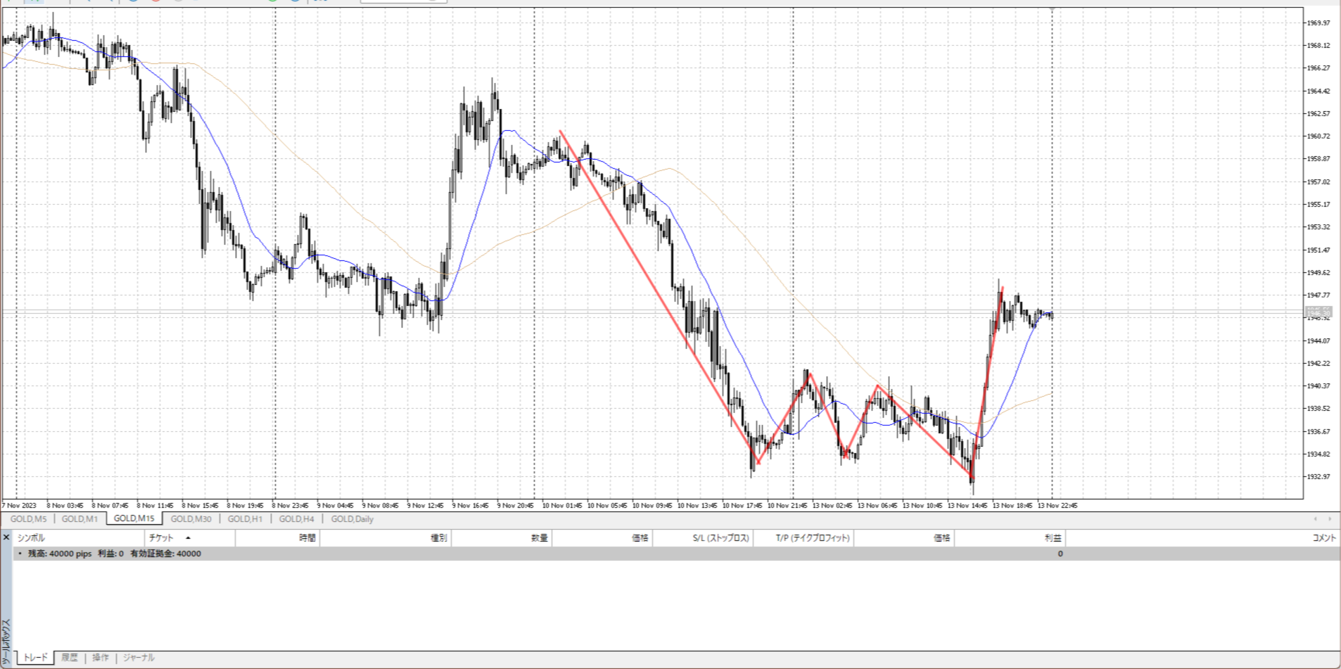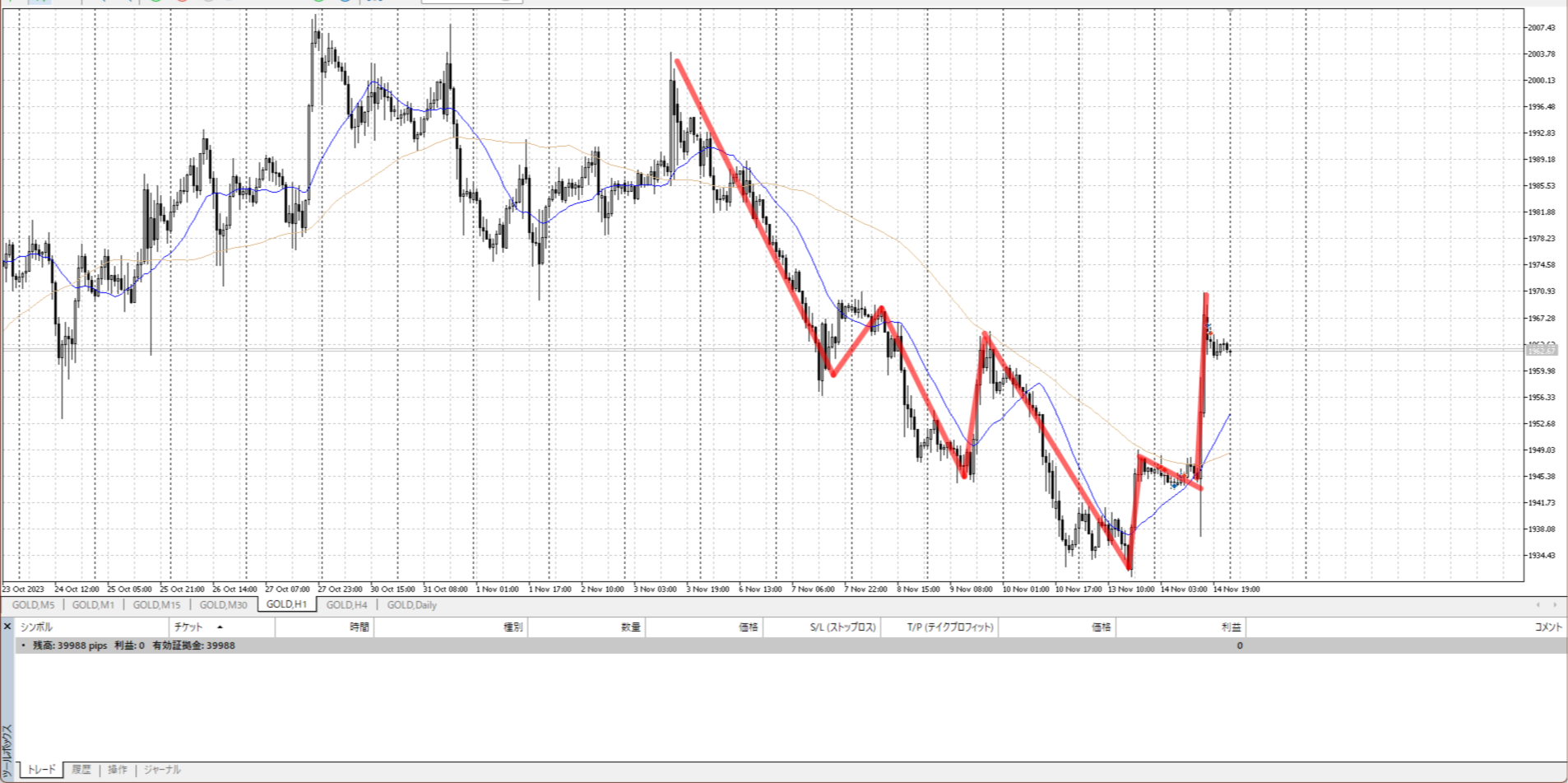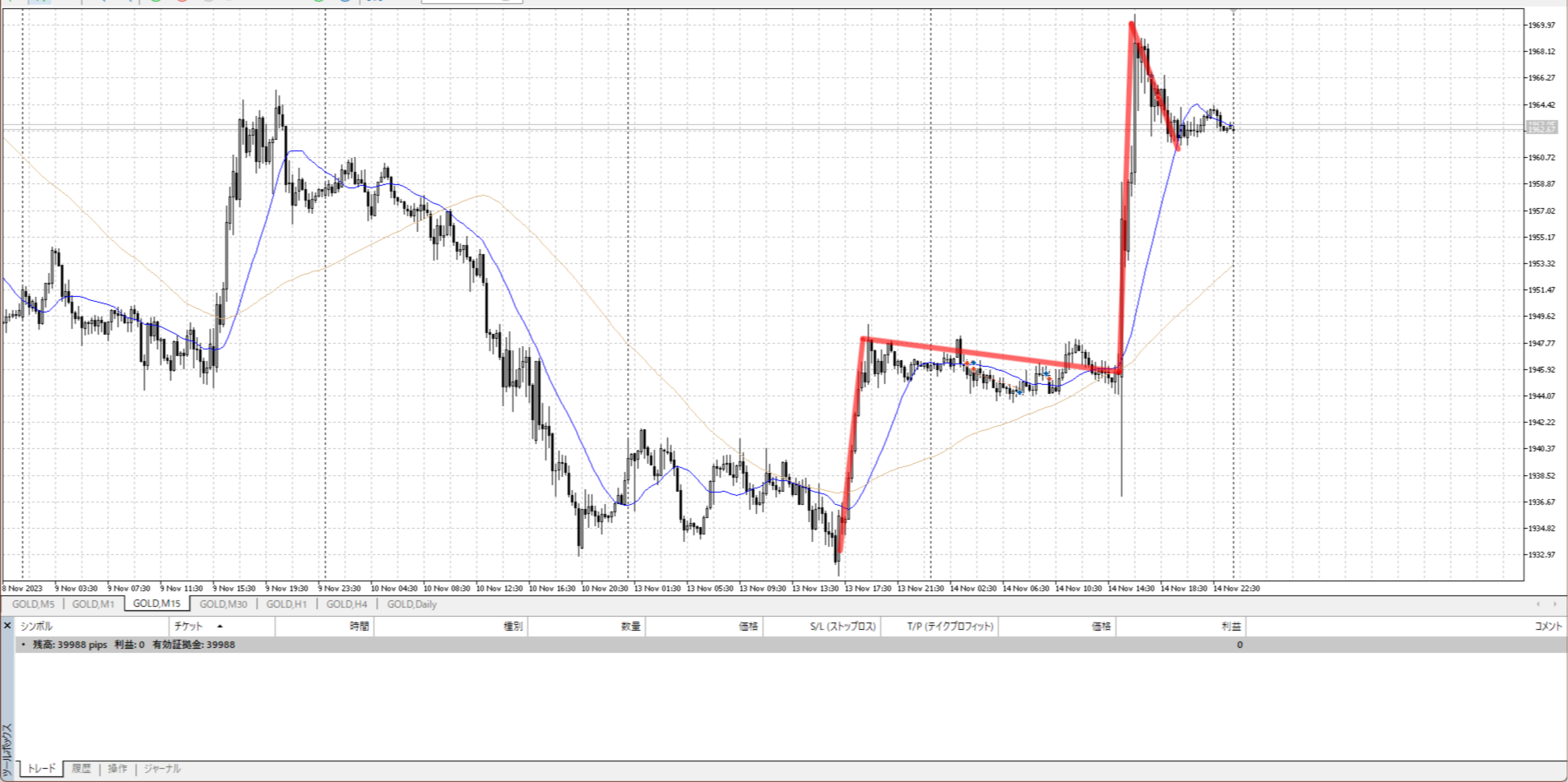 ここで上向きになるような仕草とシグナルがあれば上へ
