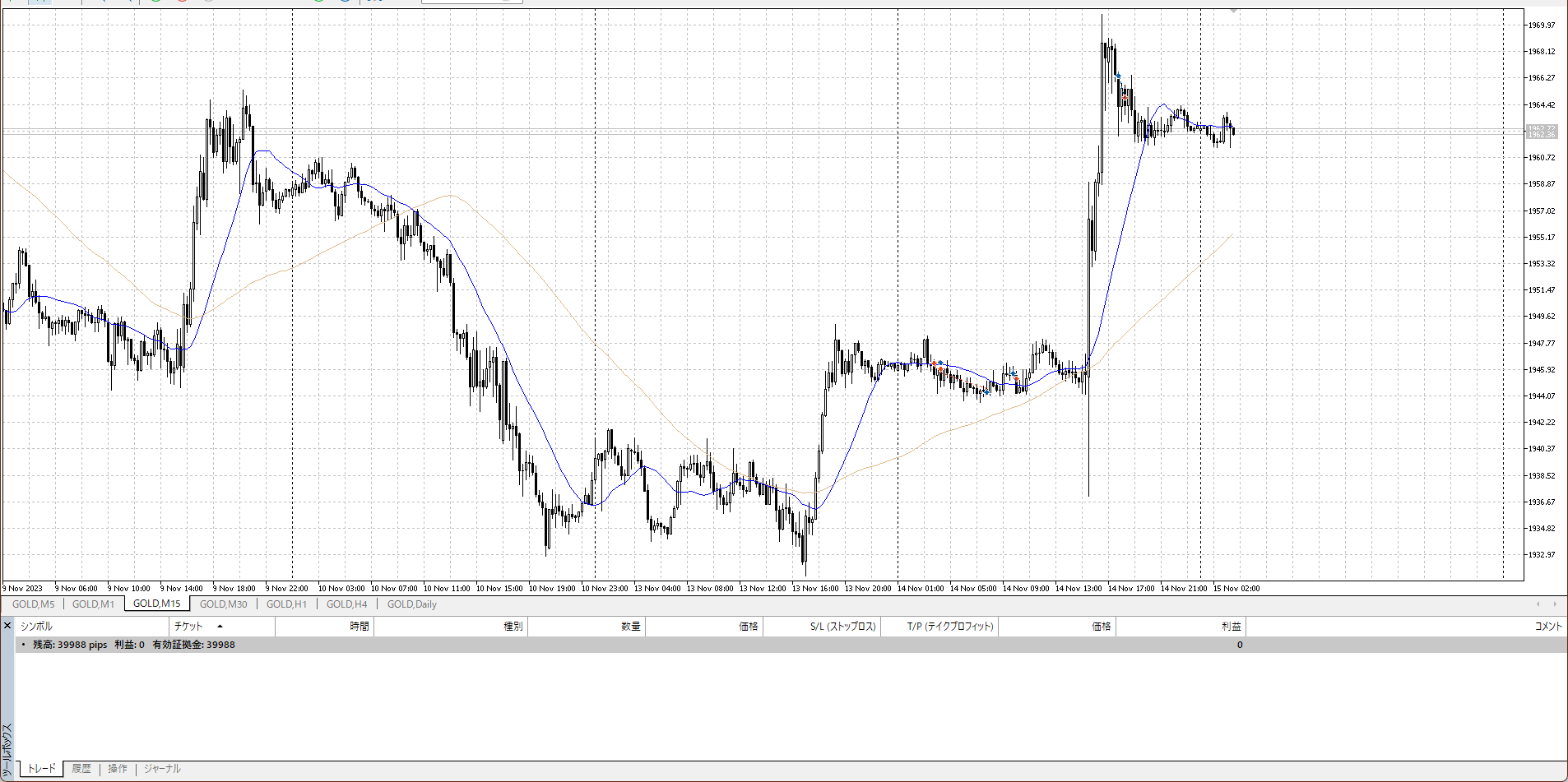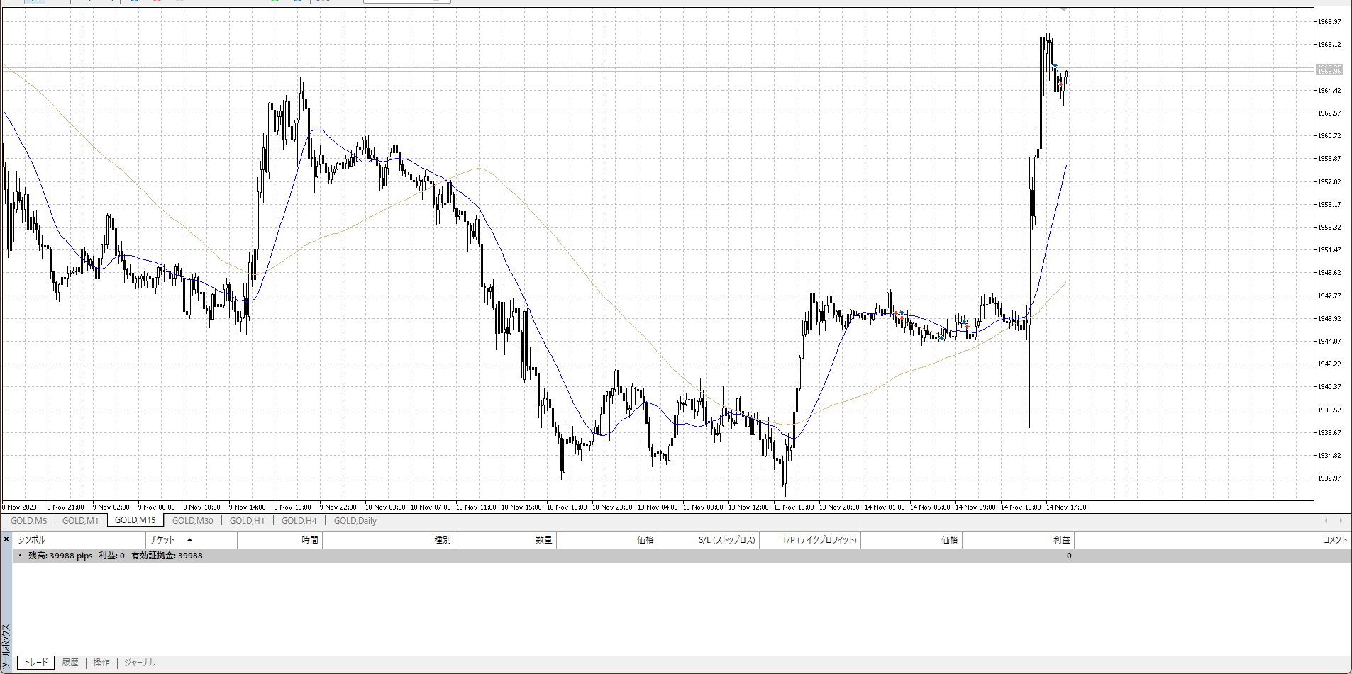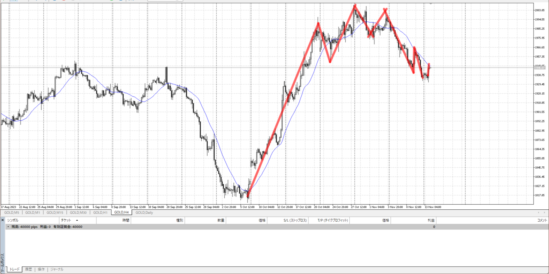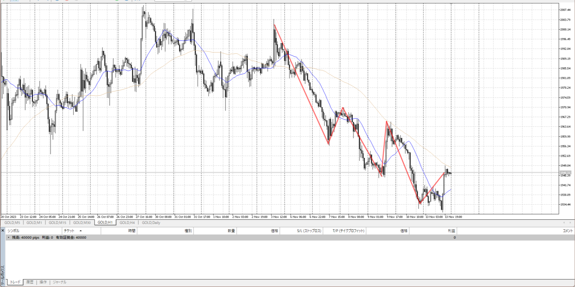ここで上向きになるような仕草とシグナルがあれば上へ