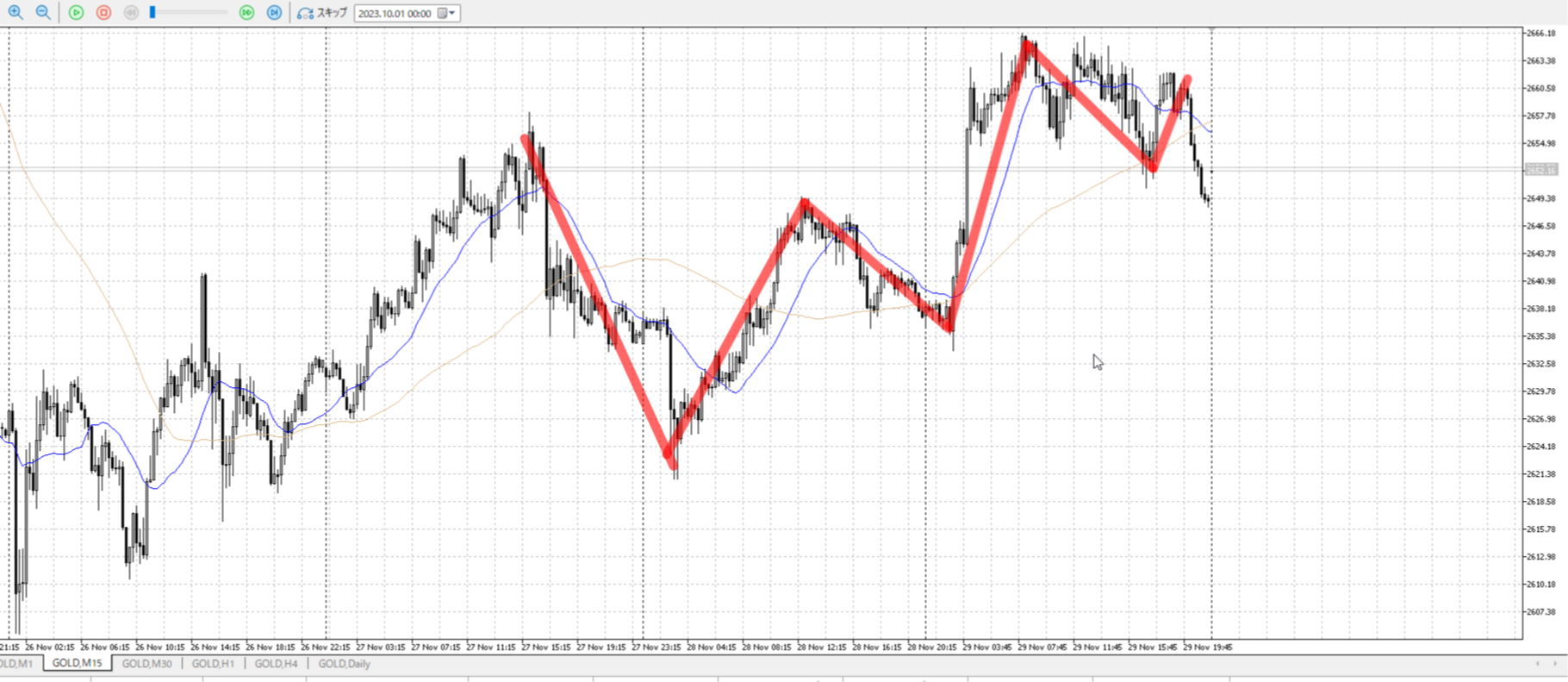 今15mで見てるが、5mでここの下髭まで取る方法はある
