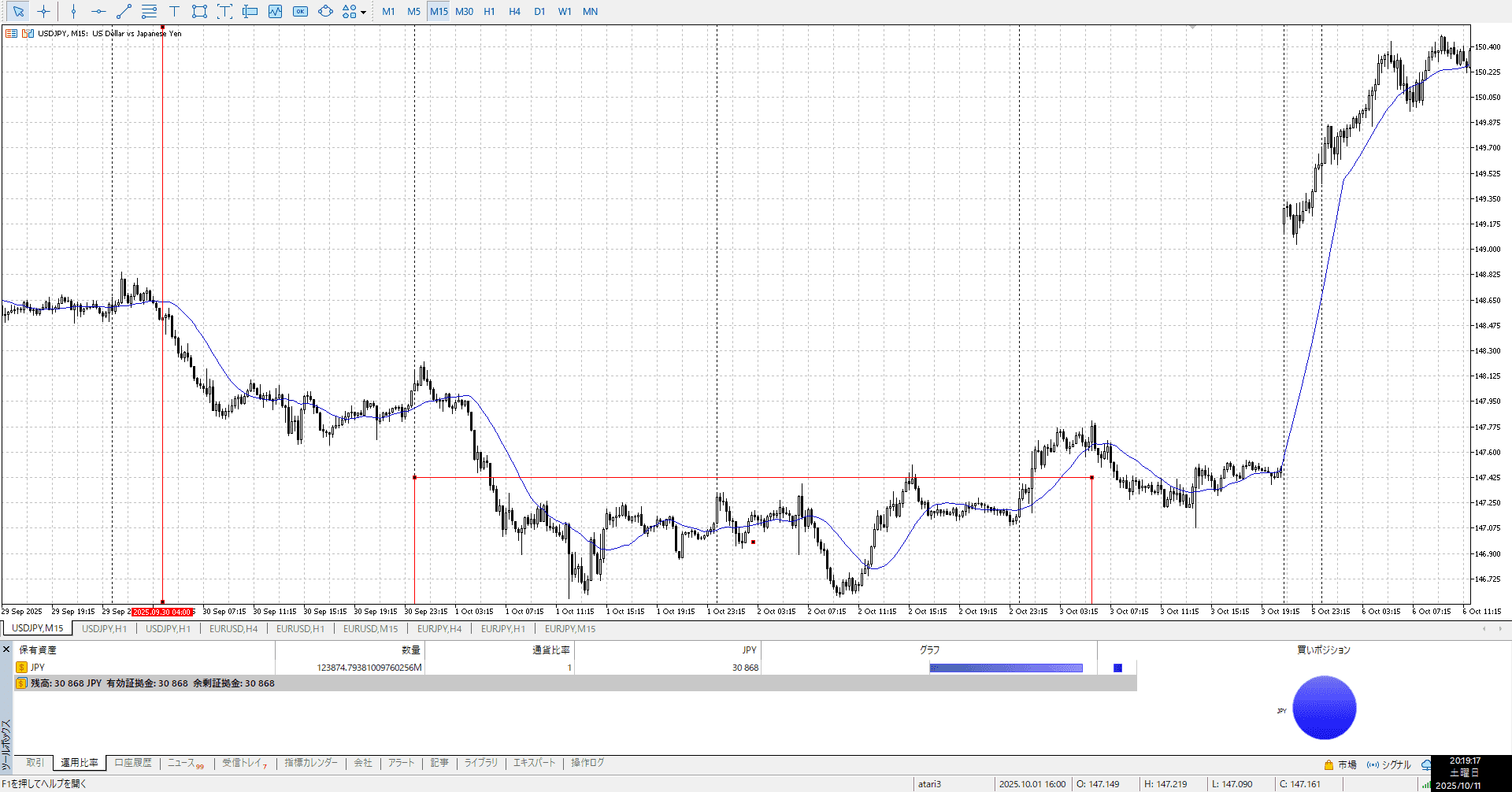 これは買いの力があるという事実になる。ここは4h底が近いので、15mレンジ抜けをきっかけに実際に買える。